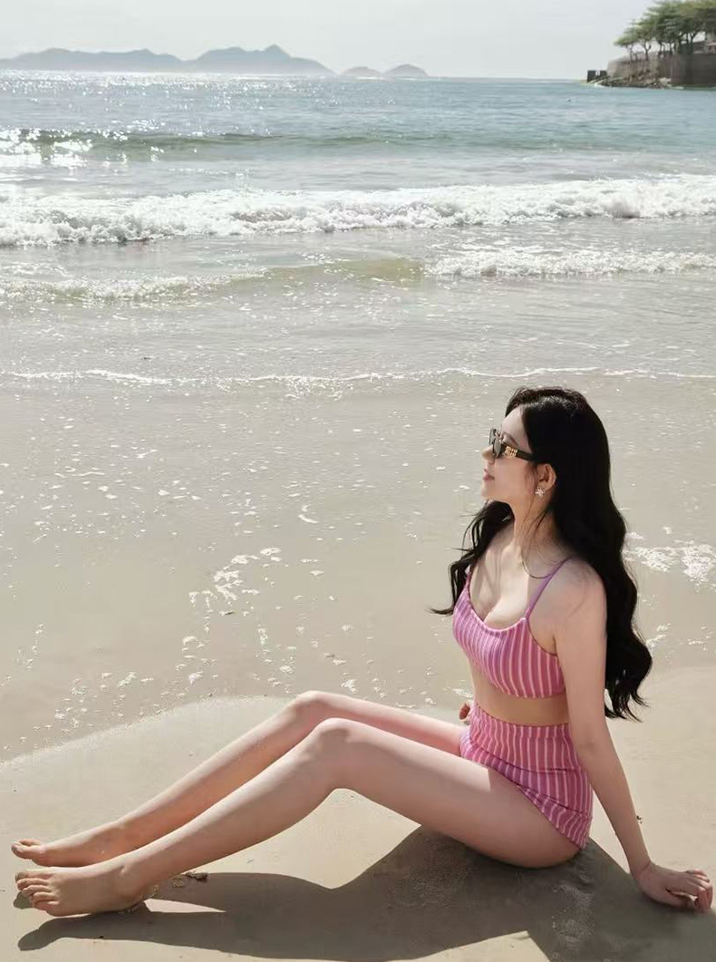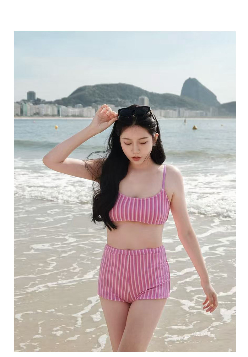 HSPN207100002 2026簡約條紋分體泳衣百搭出片島嶼溫泉韓女氣質高級小眾