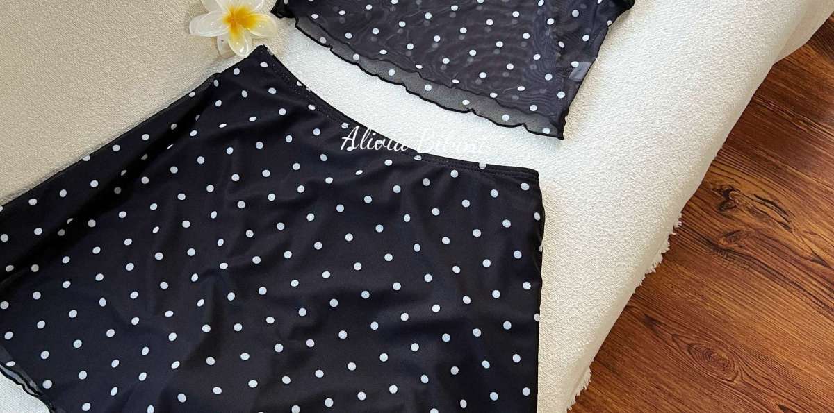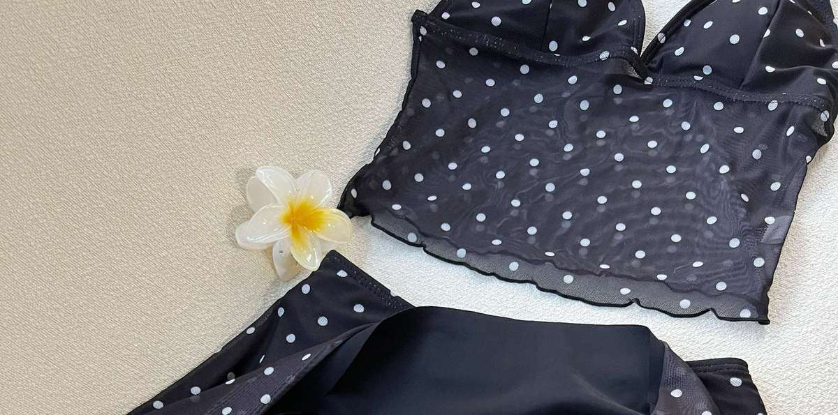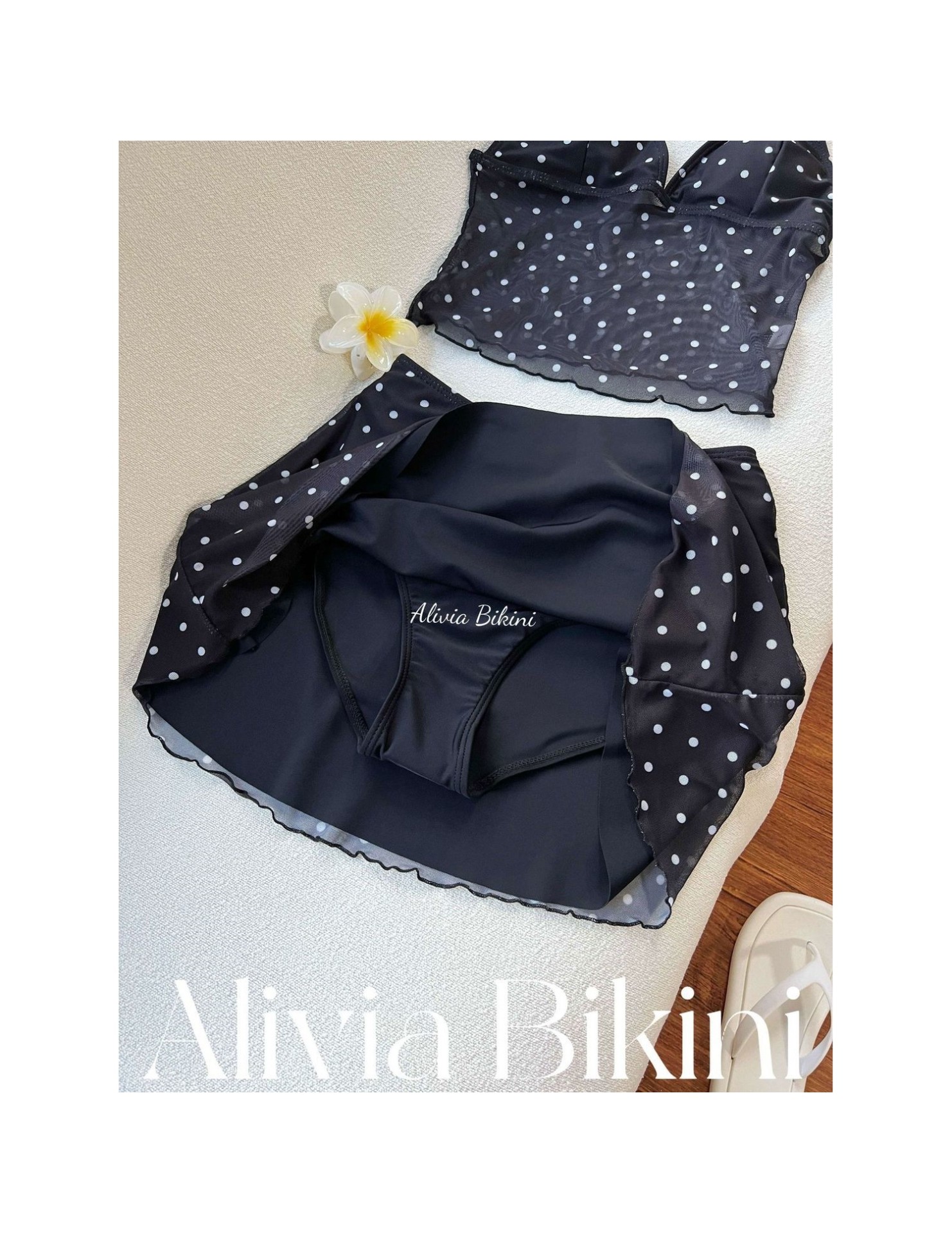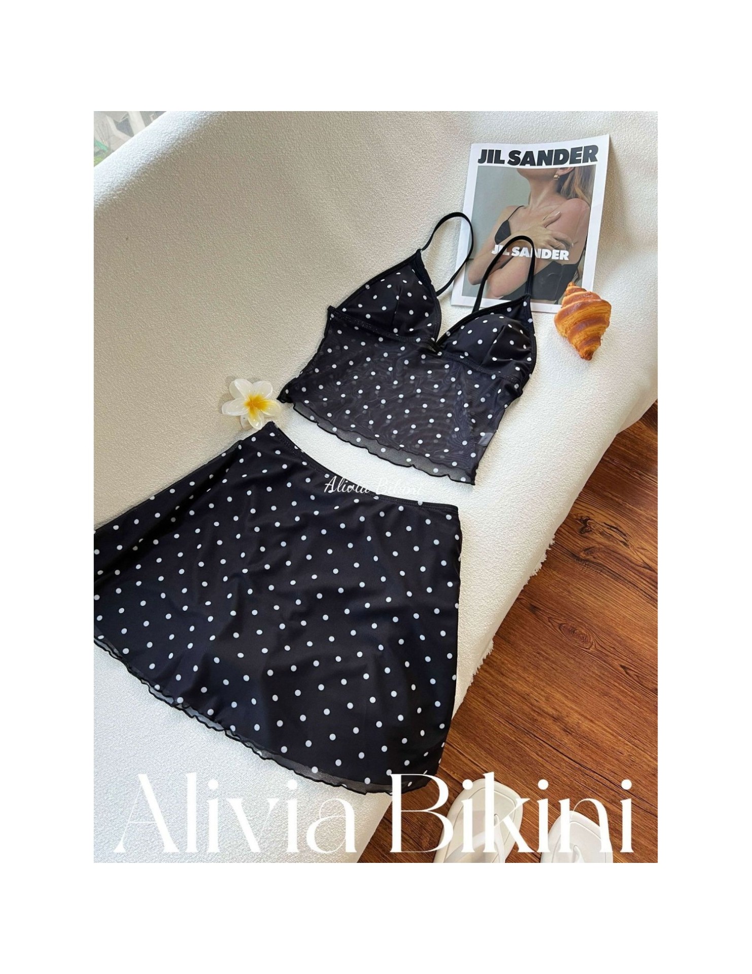 HSPN207A100003 復古波點吊帶木耳邊裙式分體泳衣度假溫泉顯白小眾超出片泳衣