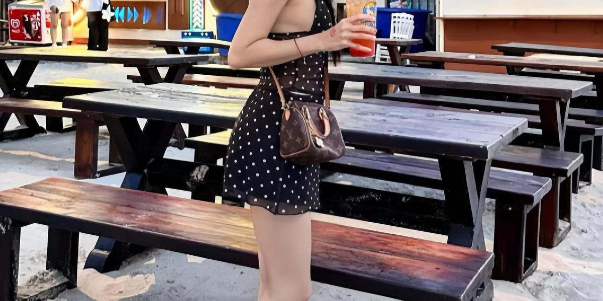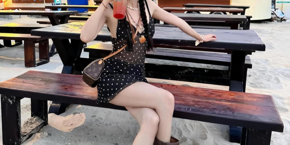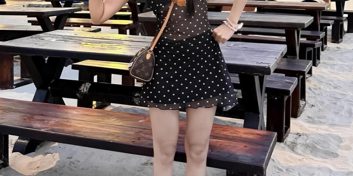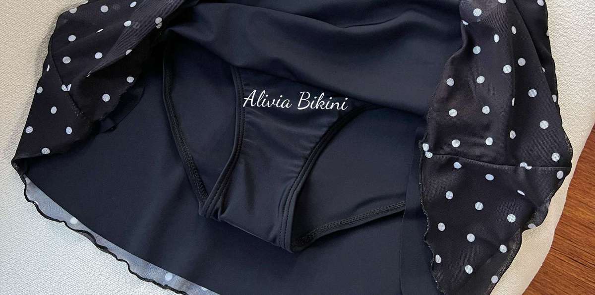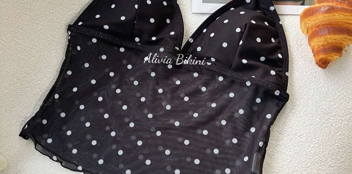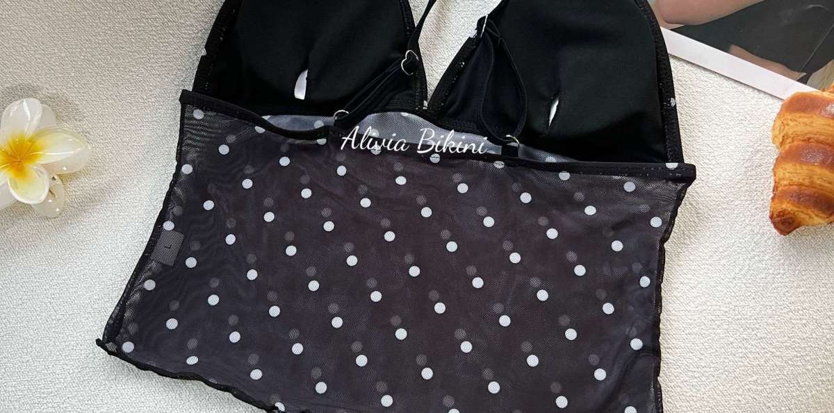 HSPN207A100003 復古波點吊帶木耳邊裙式分體泳衣度假溫泉顯白小眾超出片泳衣