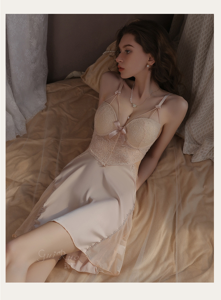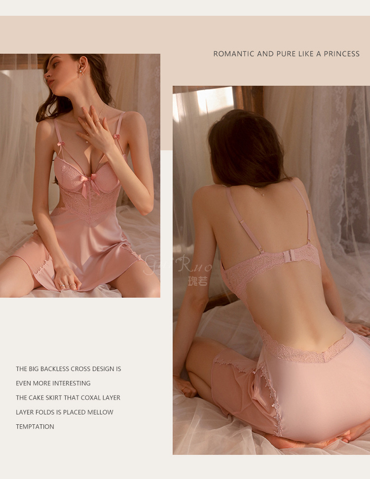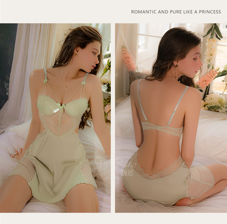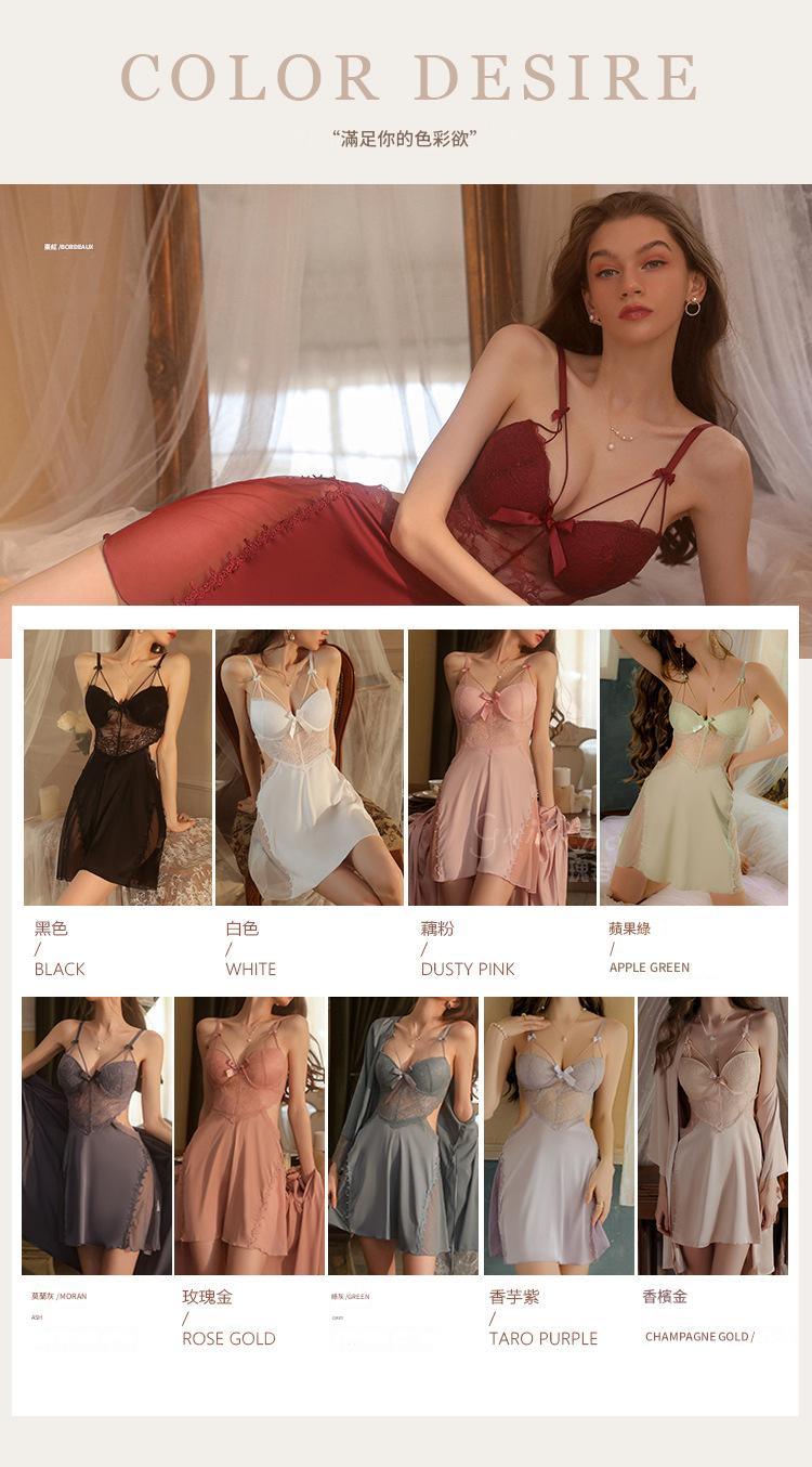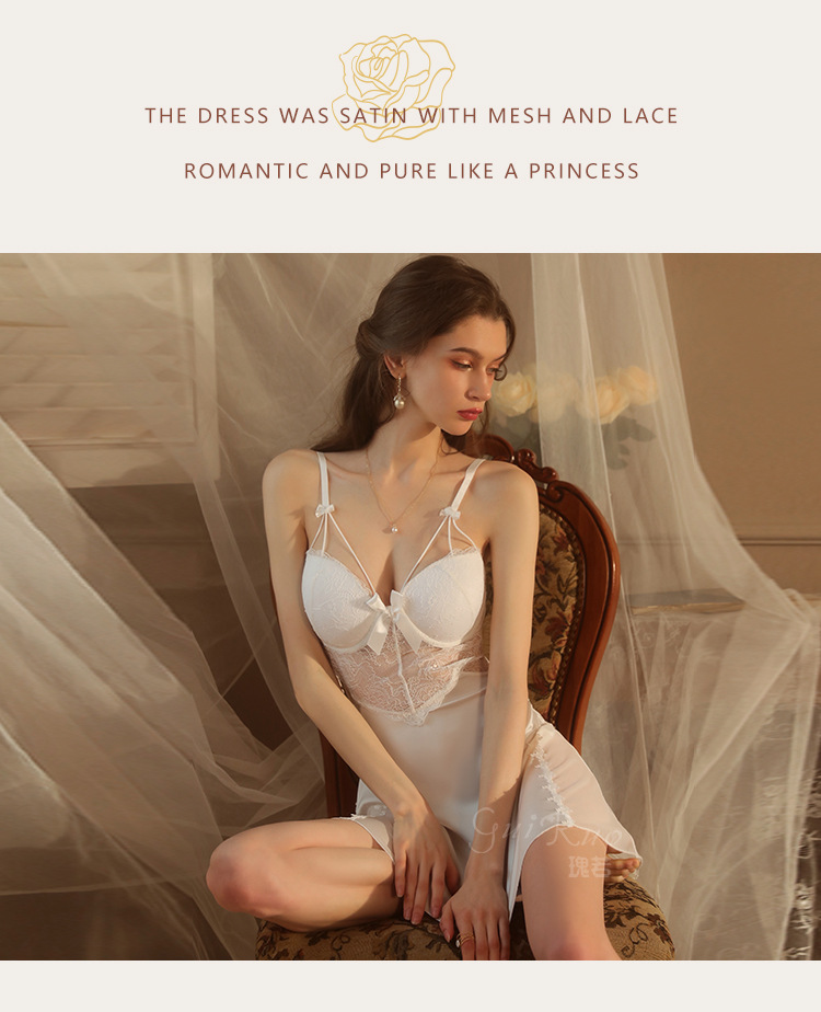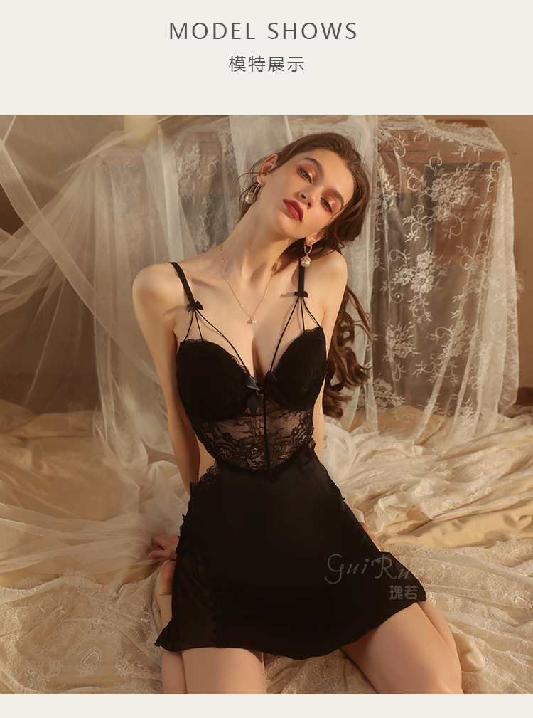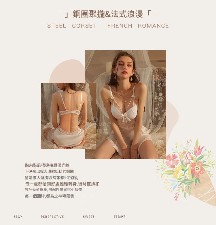 LPLT6319100002 性感蕾絲透視誘惑鋼圈聚攏加胸墊大碼吊帶裙女家居服套裝