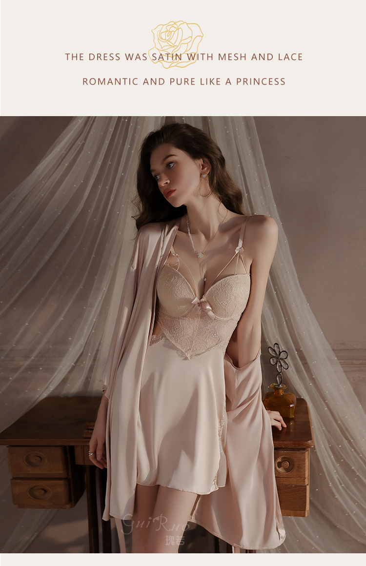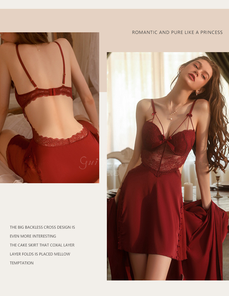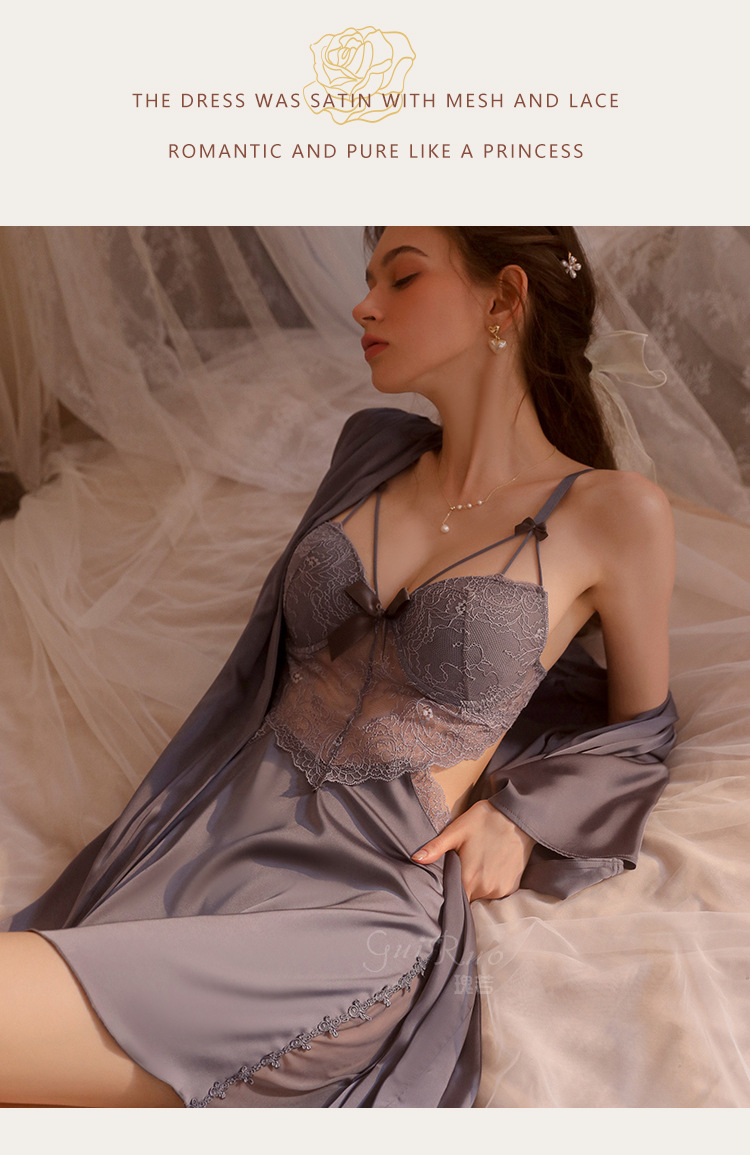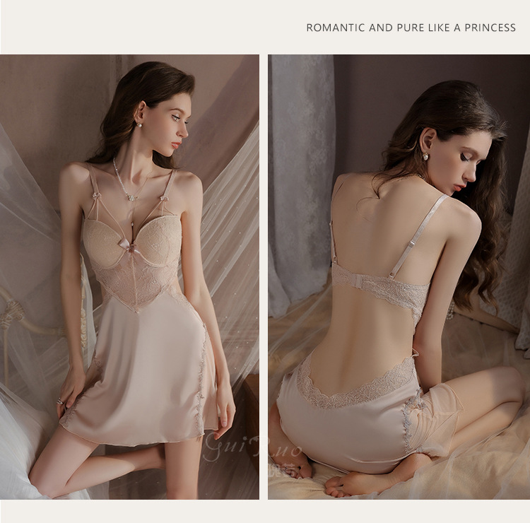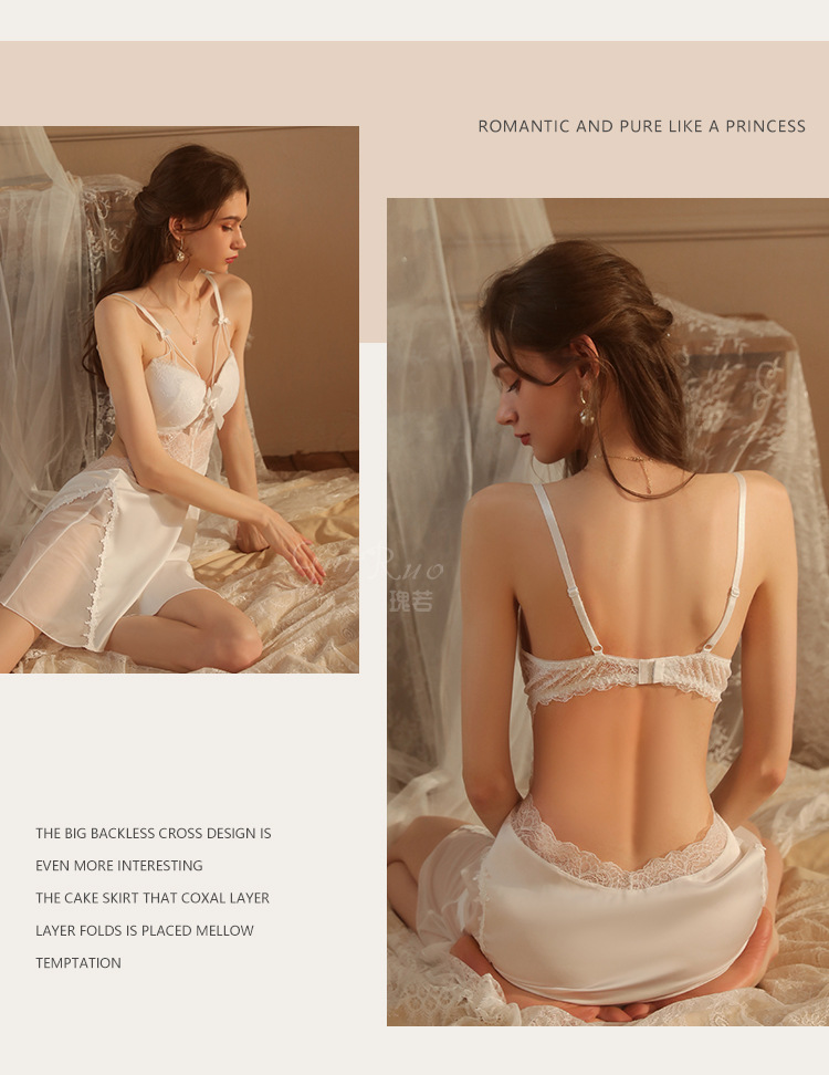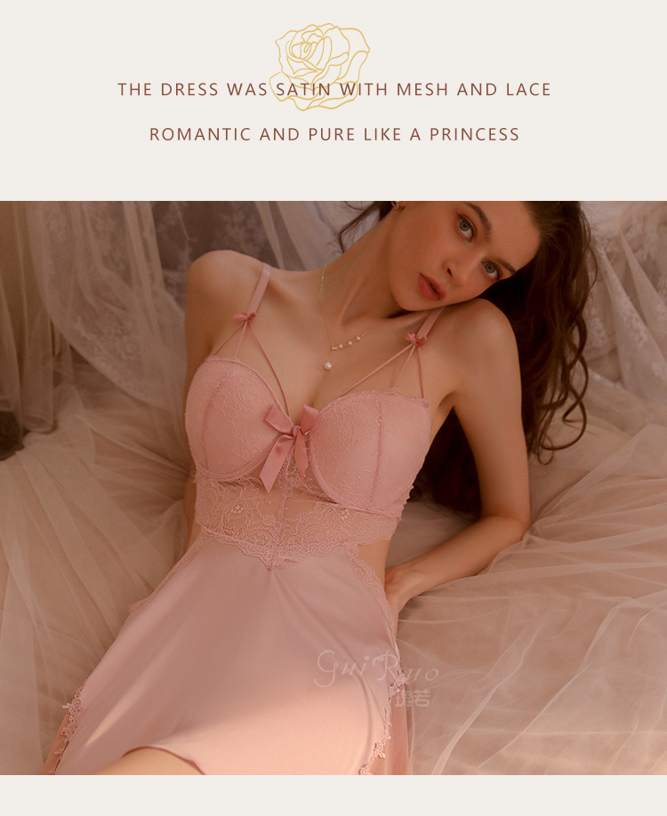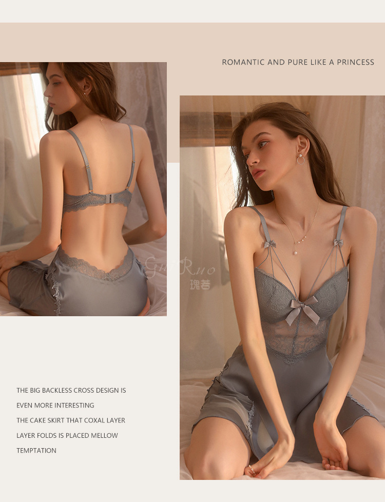 LPLT6319100002 性感蕾絲透視誘惑鋼圈聚攏加胸墊大碼吊帶裙女家居服套裝