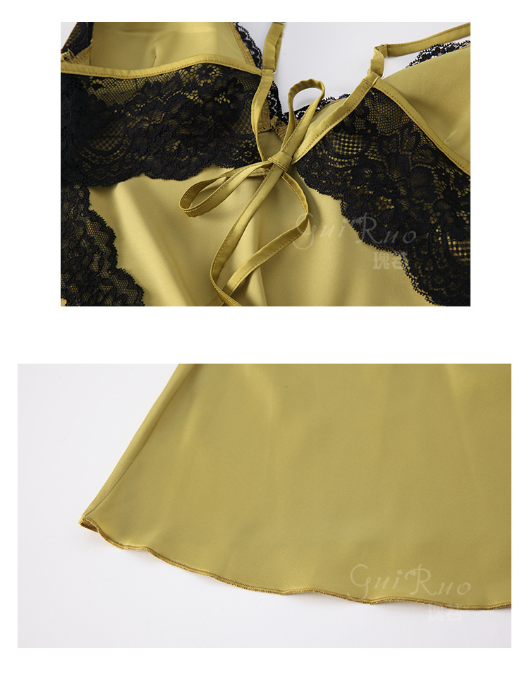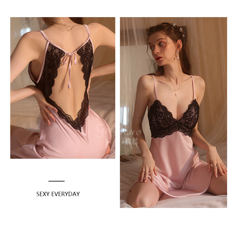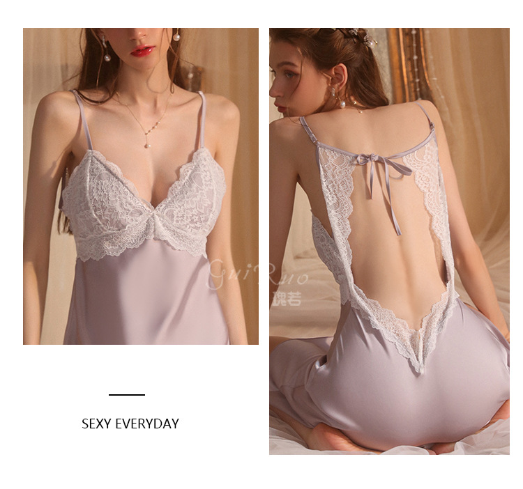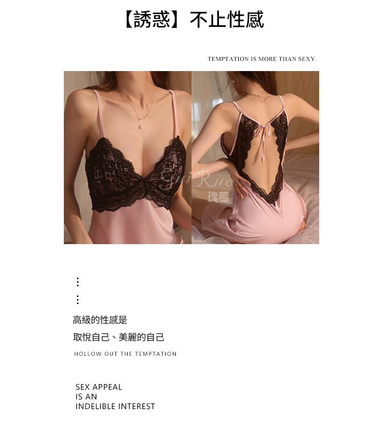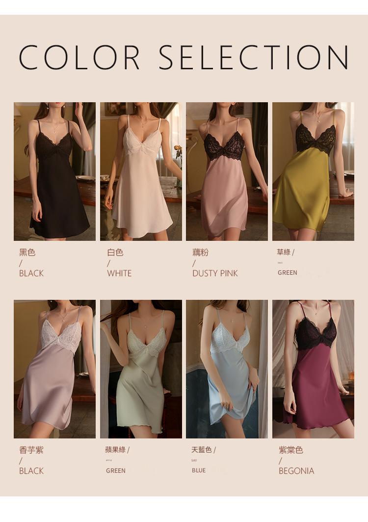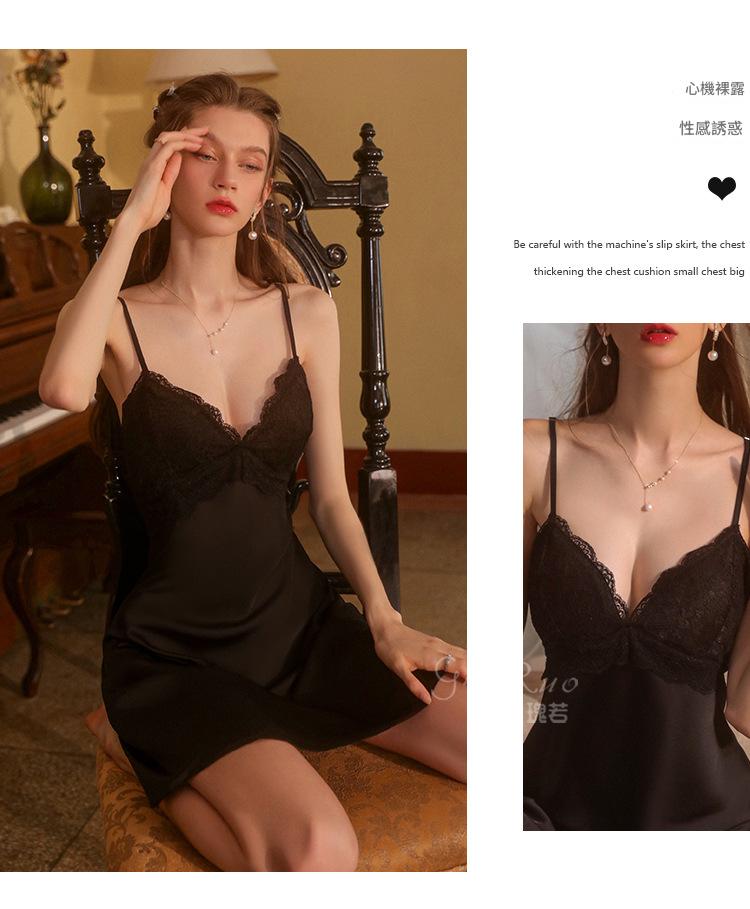 LPLT6319100014 大碼性感純色睡衣休閑舒適吊帶睡裙帶胸墊絲滑家居服套裝