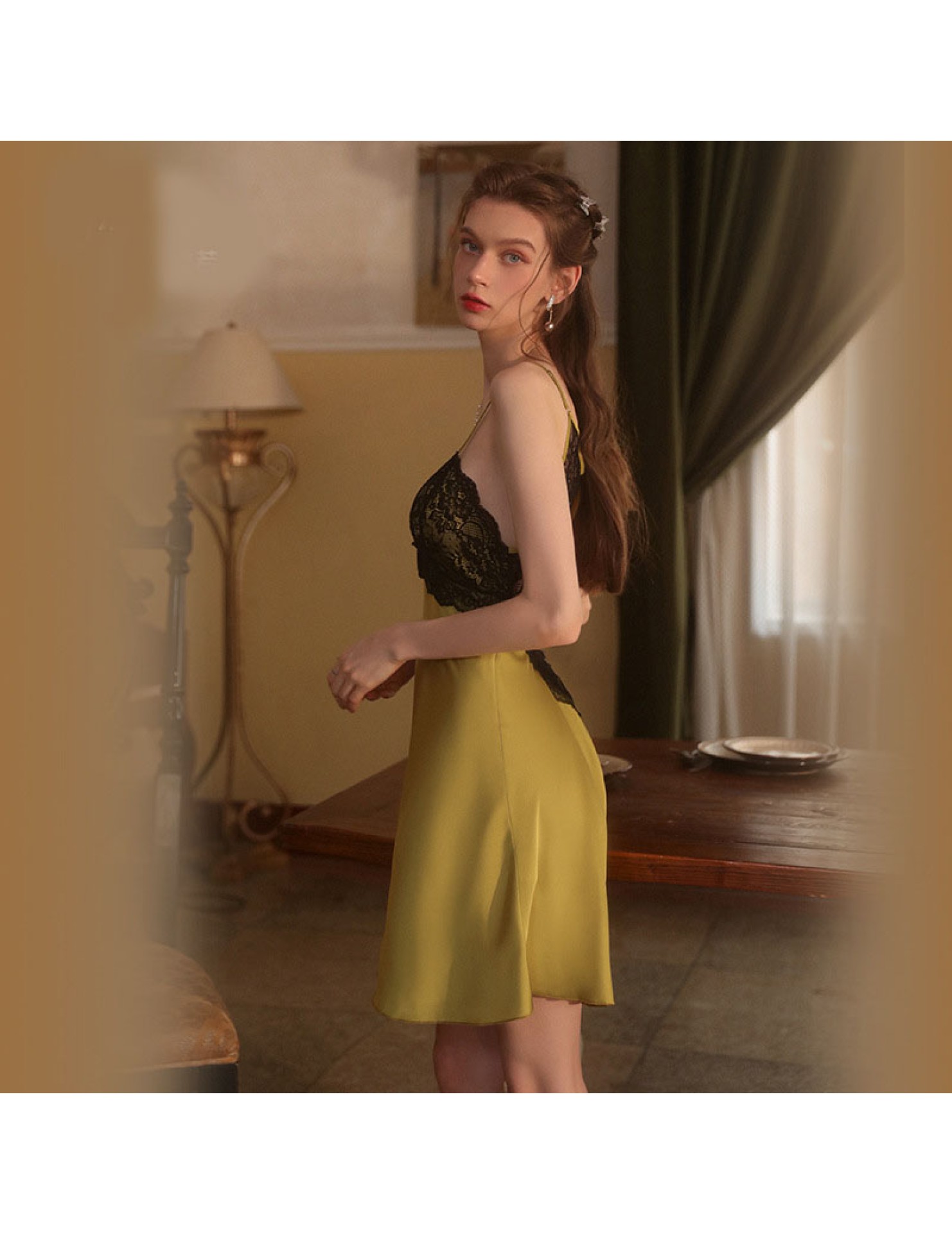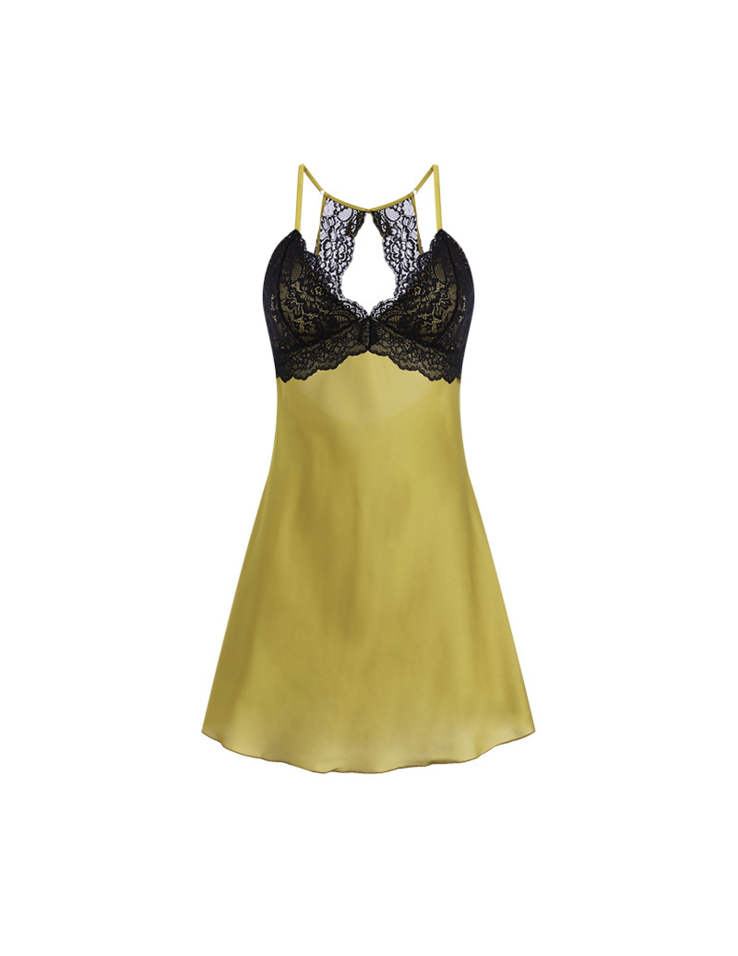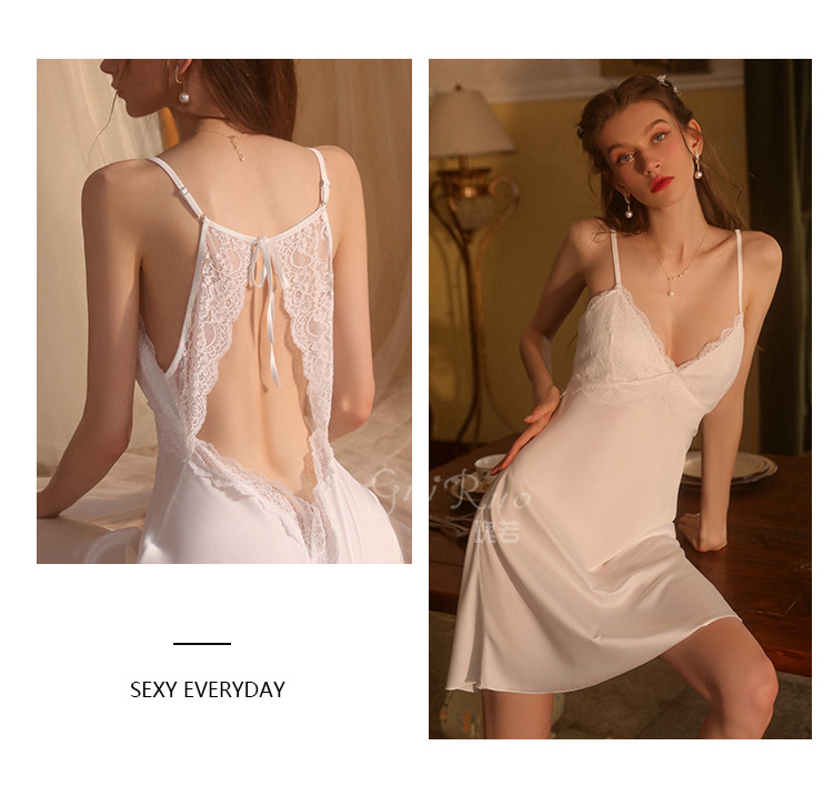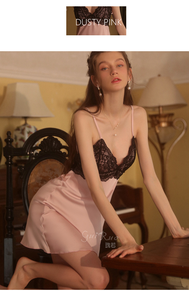 LPLT6319100014 大碼性感純色睡衣休閑舒適吊帶睡裙帶胸墊絲滑家居服套裝