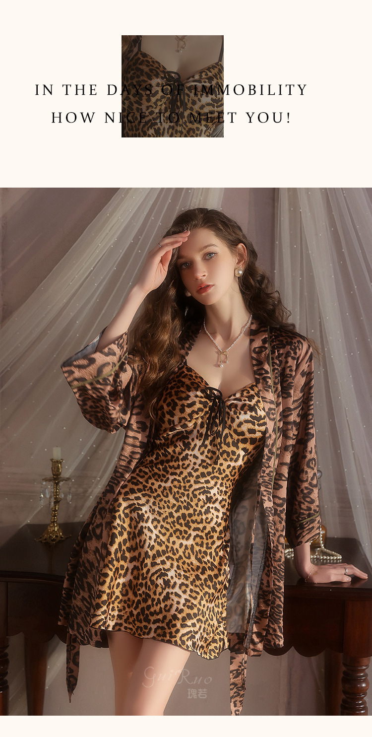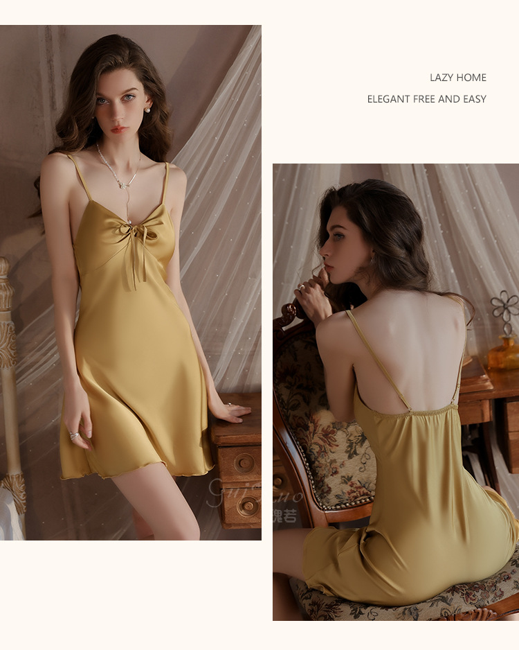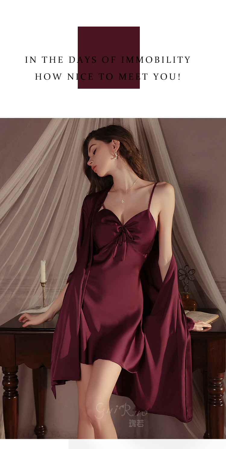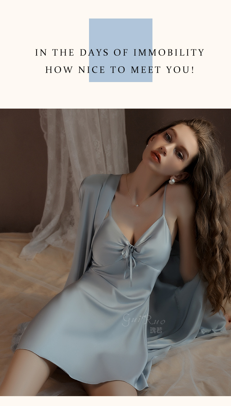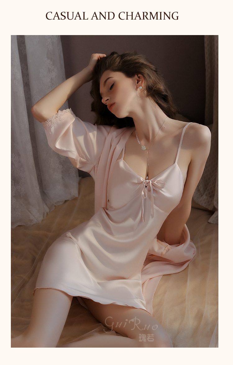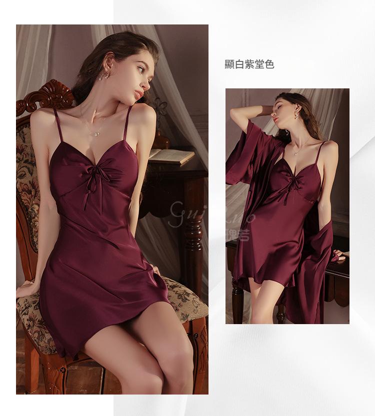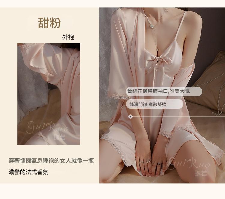 LPLT6319100018 內衣甜美緞面性感露背女吊帶睡裙開襟絲滑外袍家居服套裝