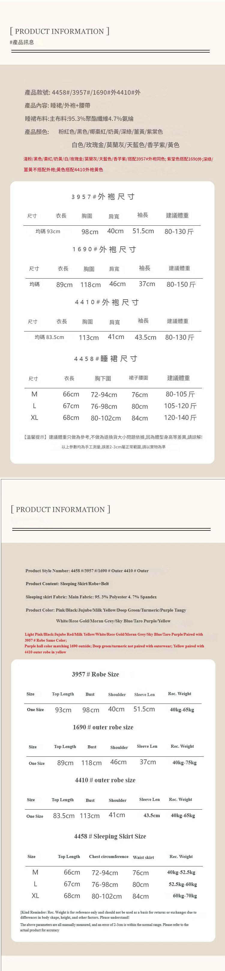 4458奶黃色(睡裙)