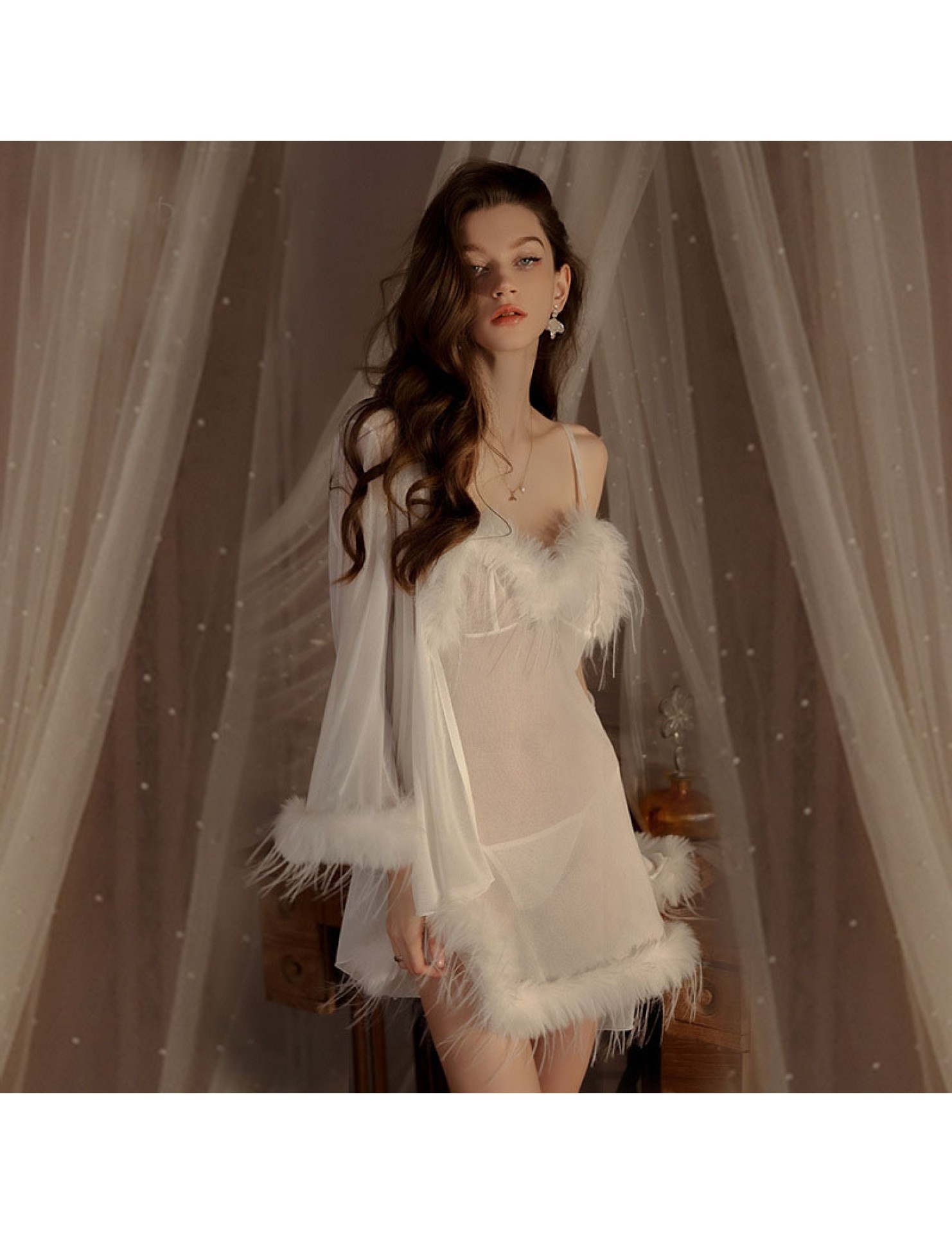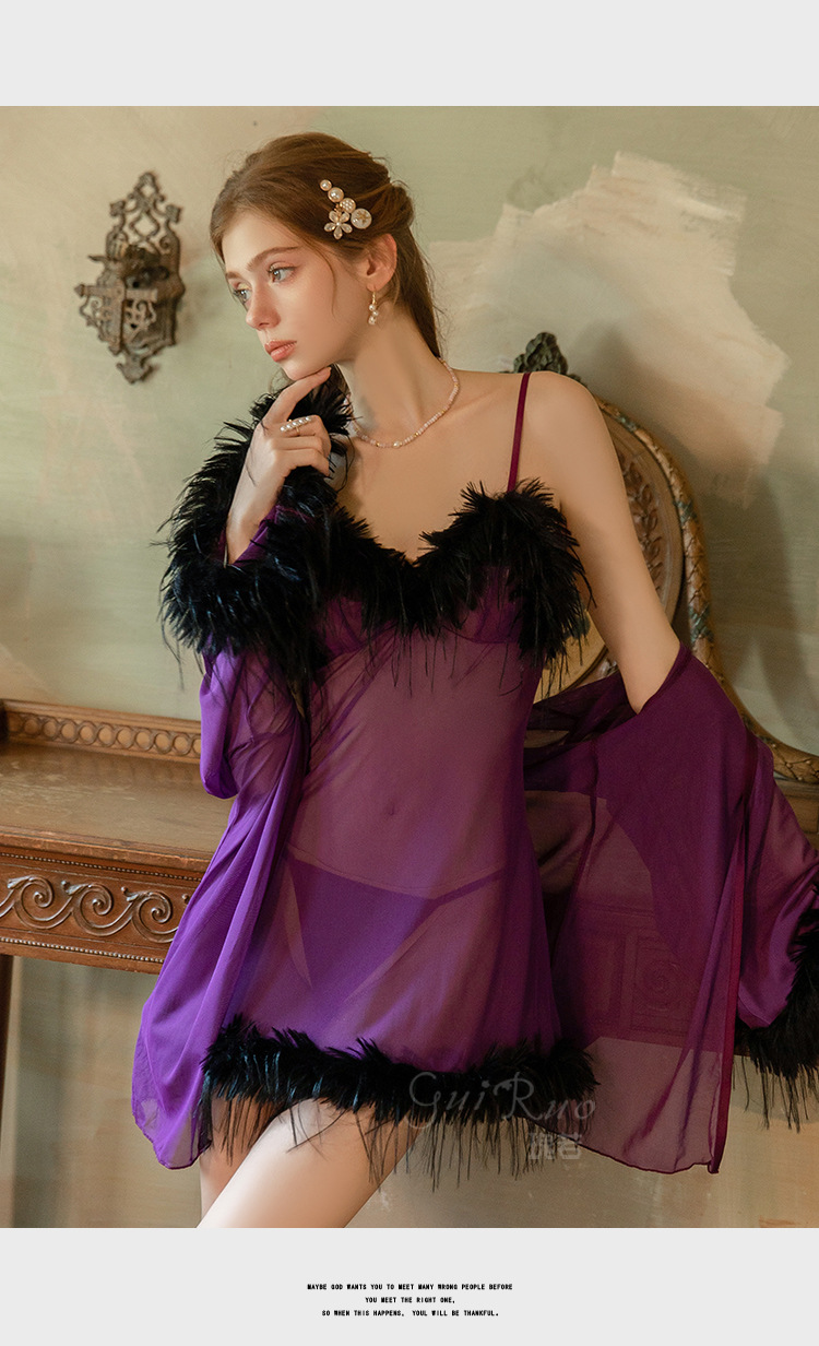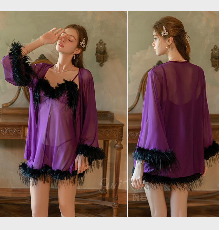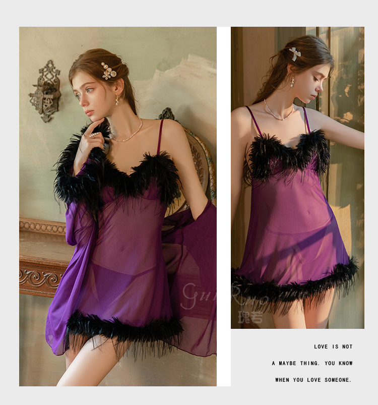 LPLT6319100019 夏款女士情趣內衣純欲透視輕紗誘惑吊帶睡裙外袍制服套裝