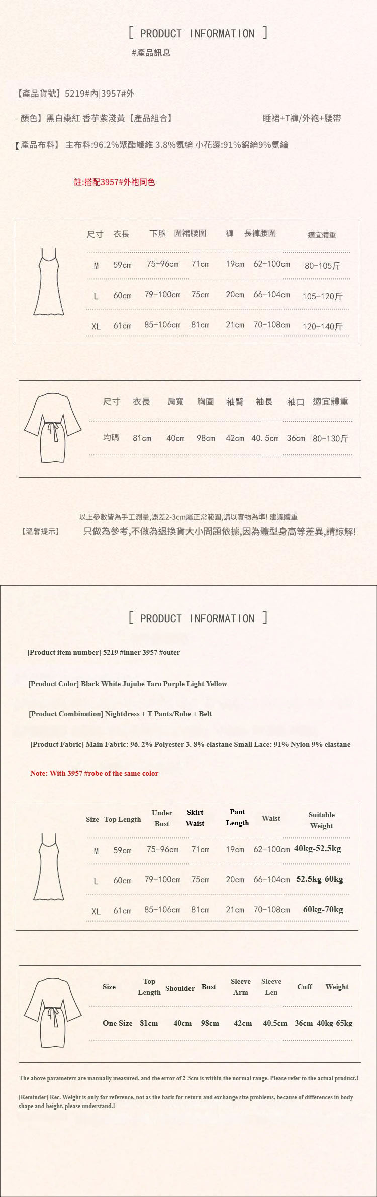 5219棗紅(睡裙+T褲)