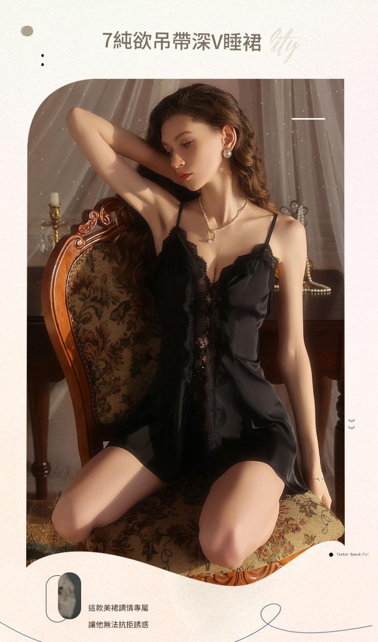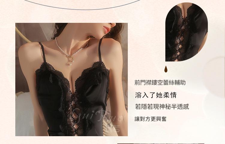 LPLT6319100023 性感火辣低胸睡衣純欲蕾絲舒適順滑緞面吊帶裙外袍套裝
