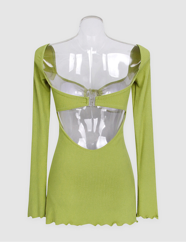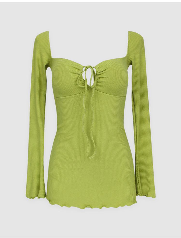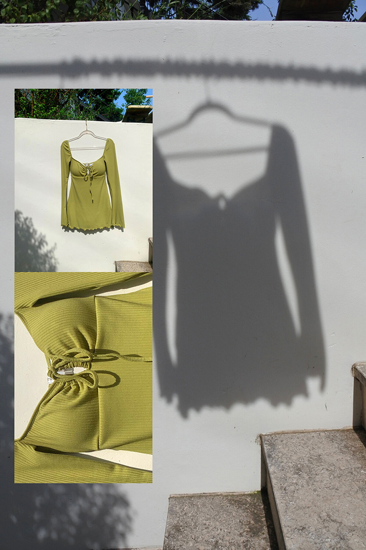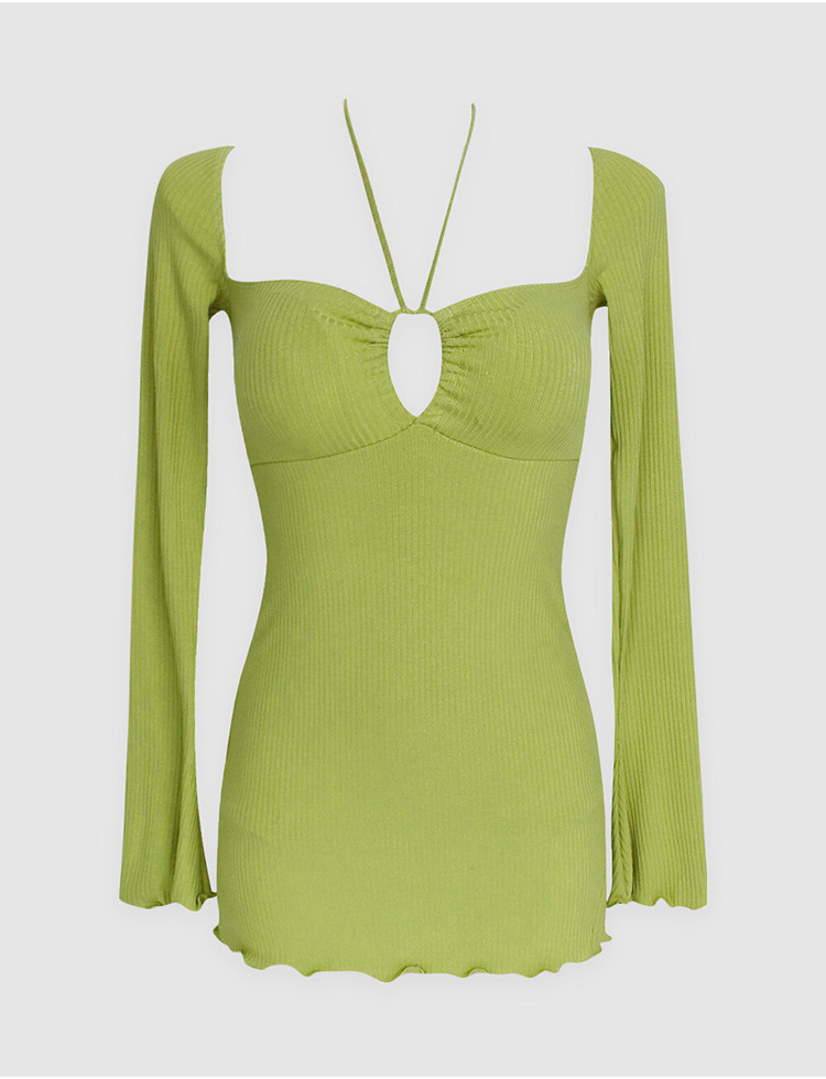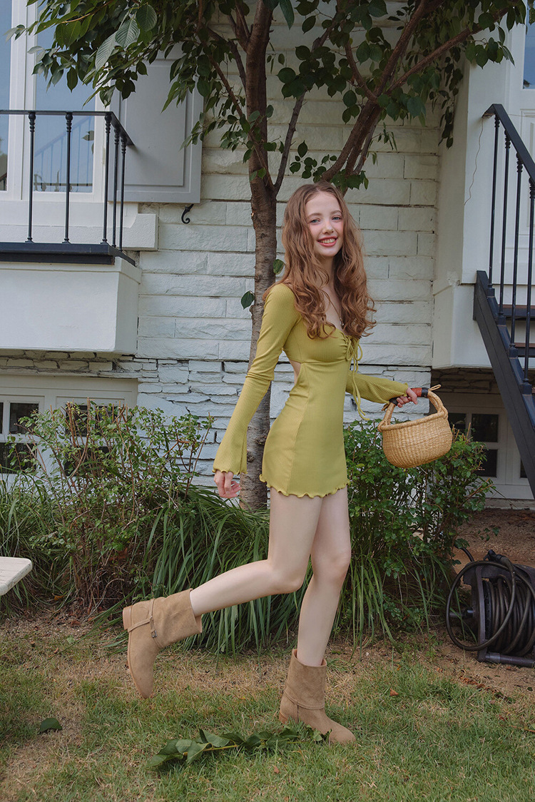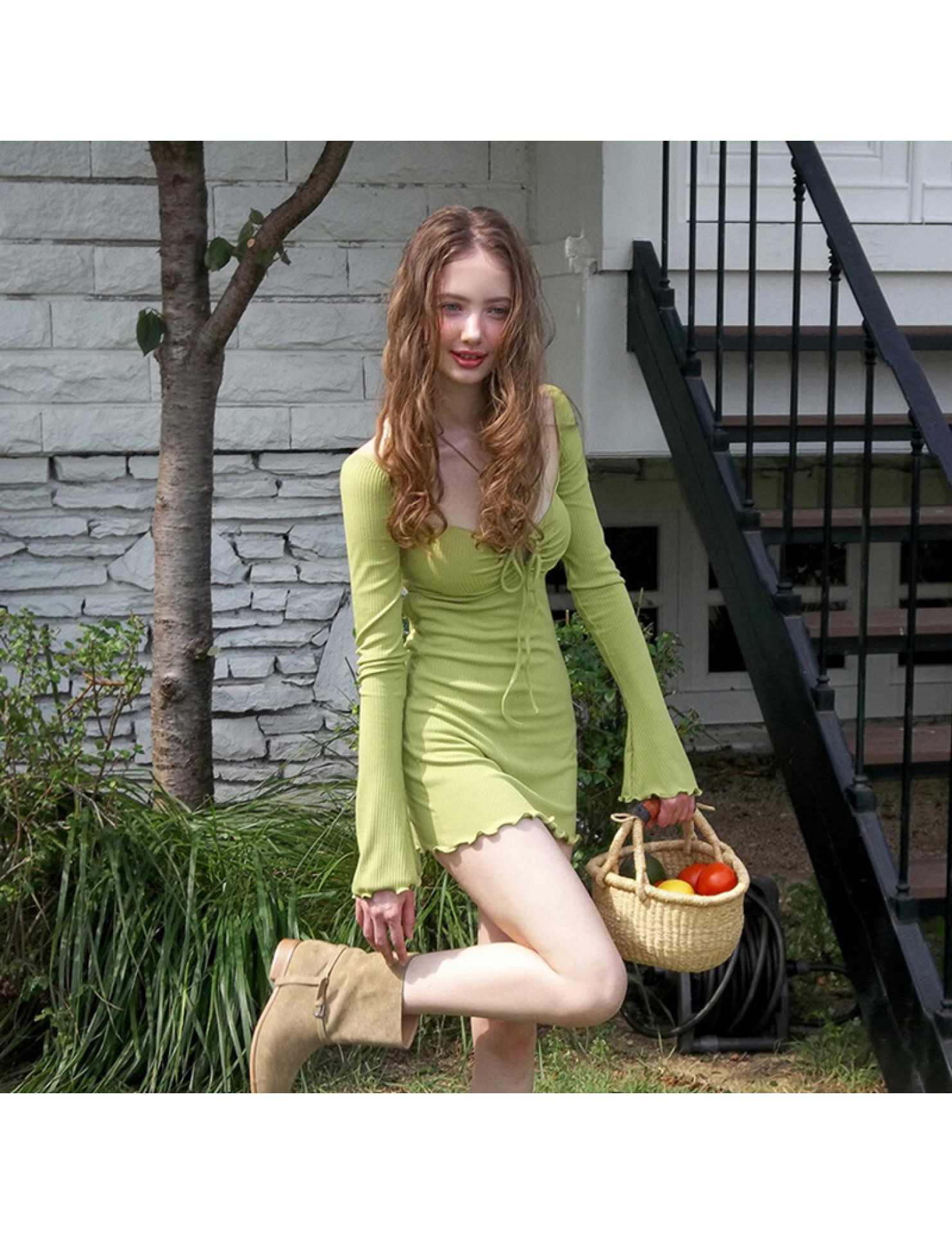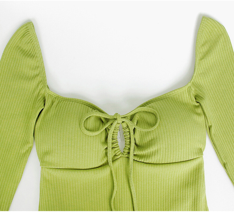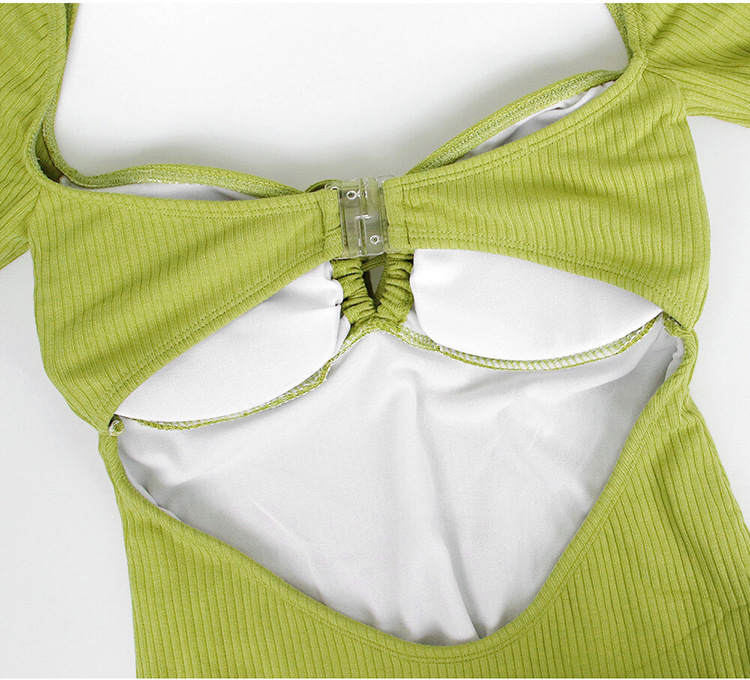 HSPN6321100002 牛油果野綠ins法式復古長裙方領度假溫泉泳衣顯白顯瘦泳衣