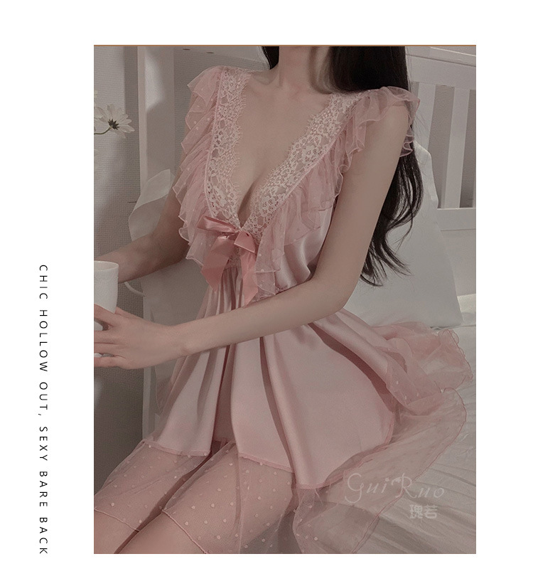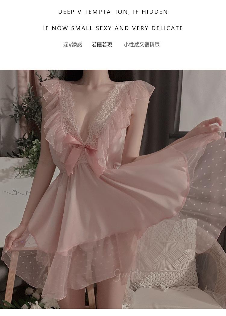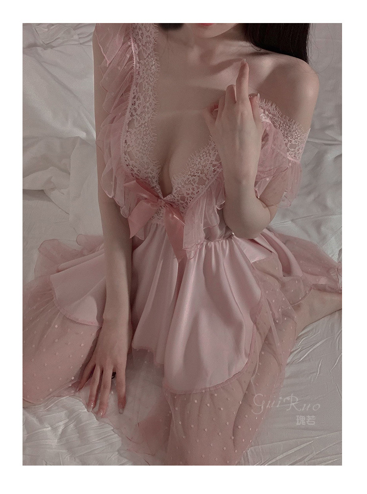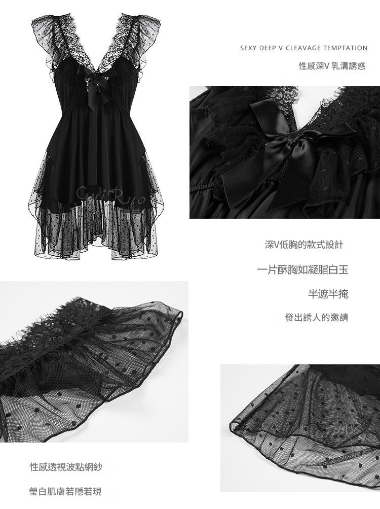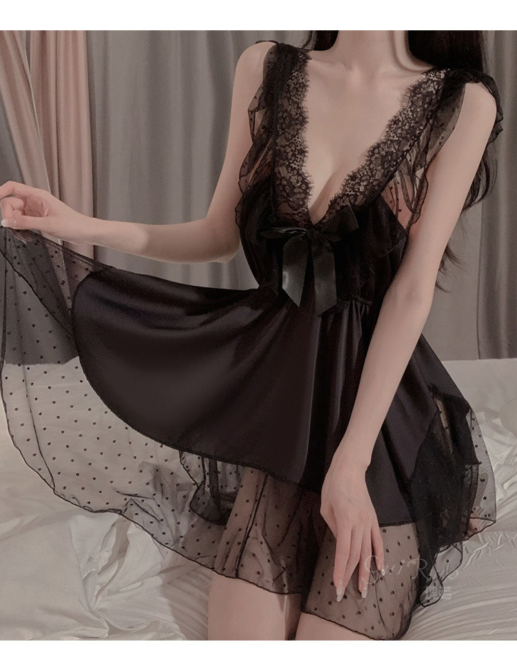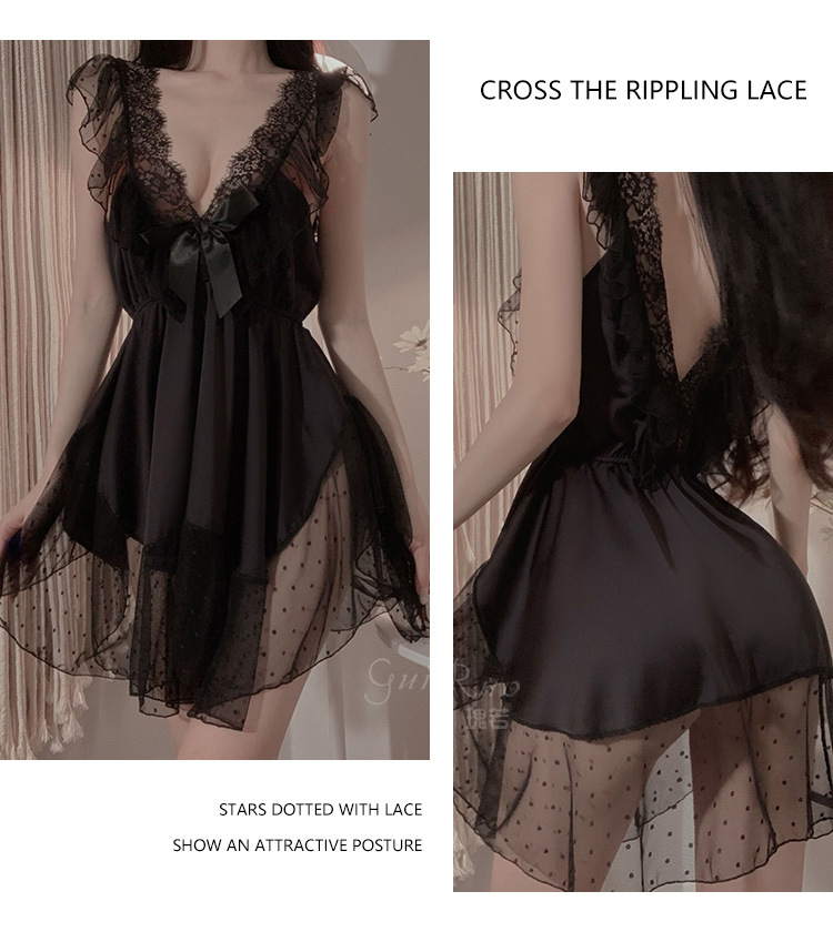 LPLT6319100031 甜美大碼睡衣露背誘惑波點網紗吊帶睡裙女可愛家居服套裝