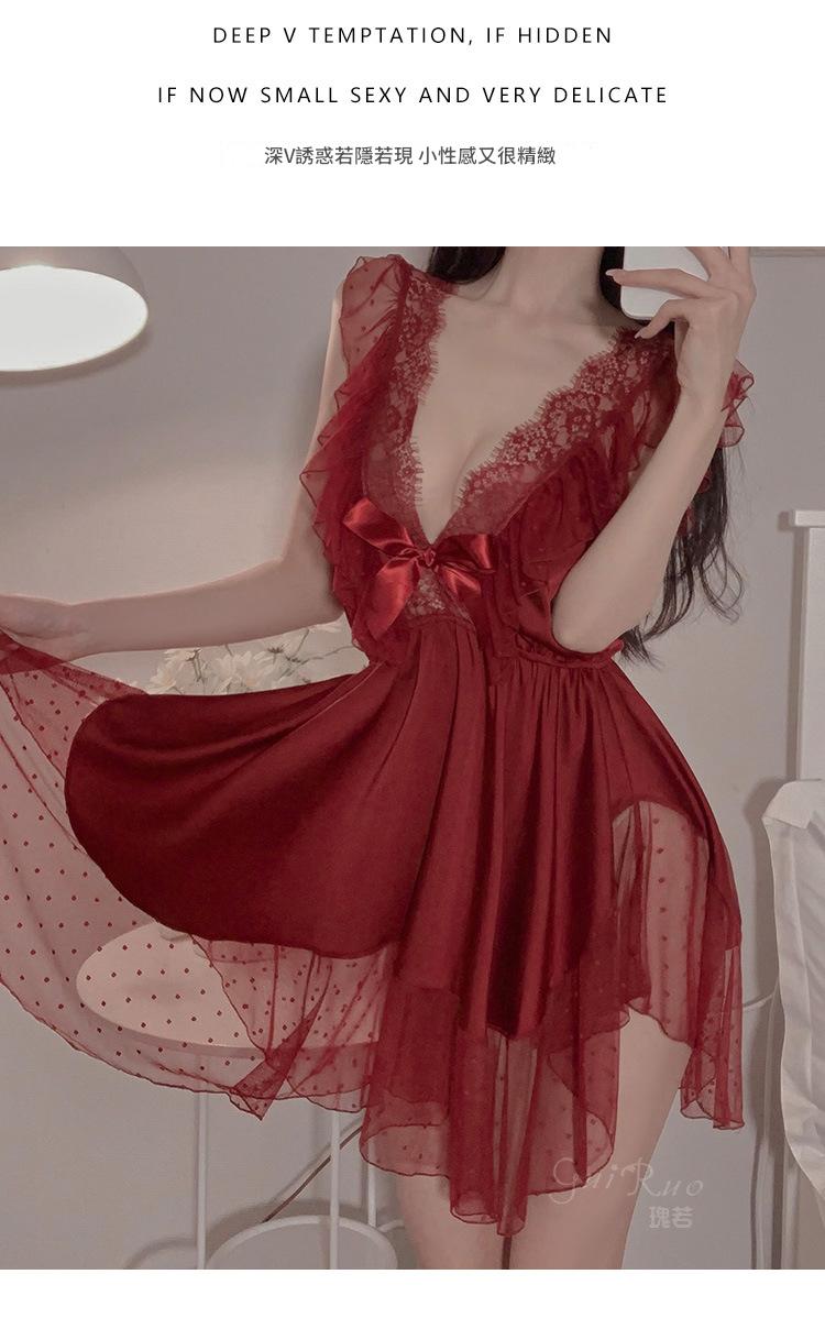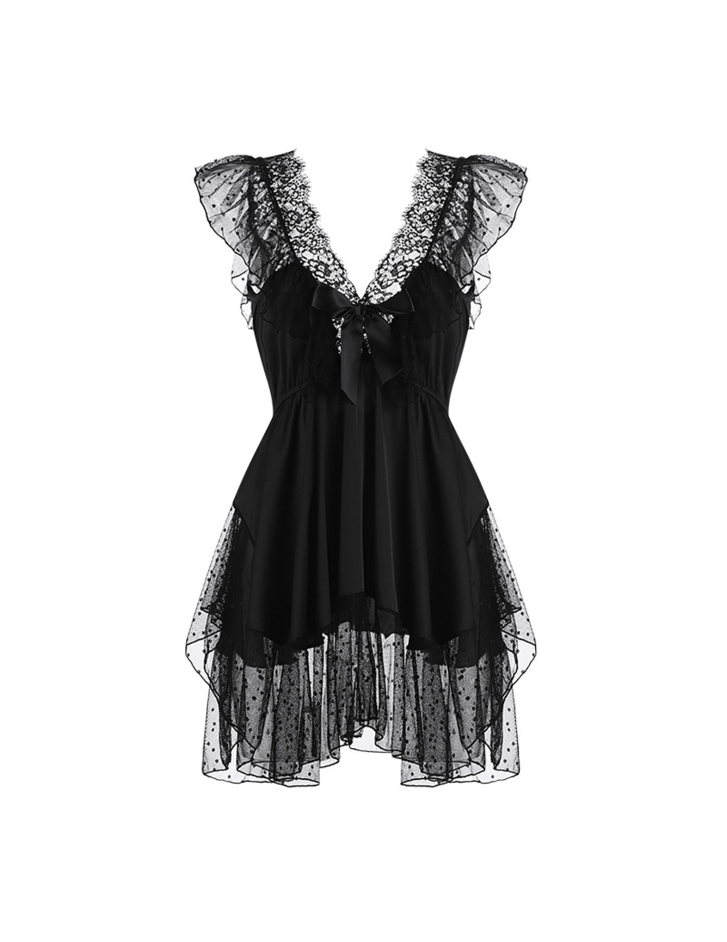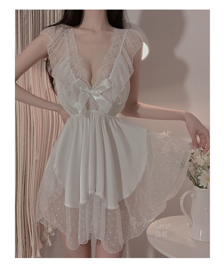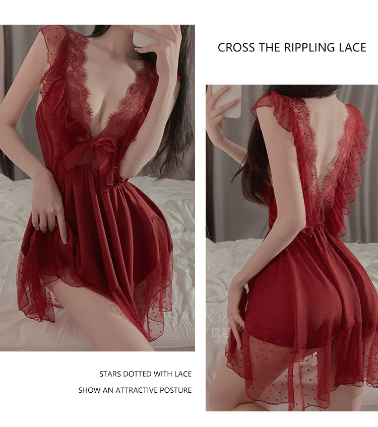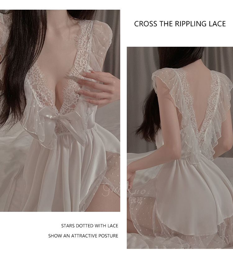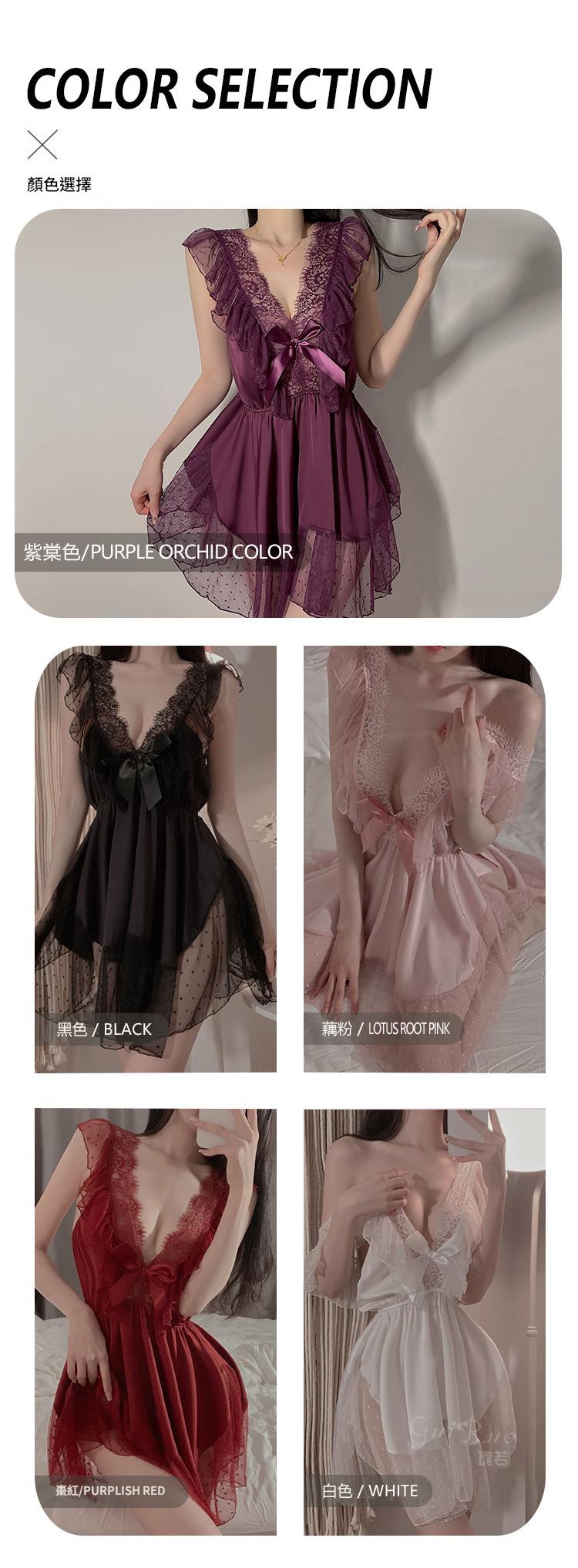 LPLT6319100031 甜美大碼睡衣露背誘惑波點網紗吊帶睡裙女可愛家居服套裝
