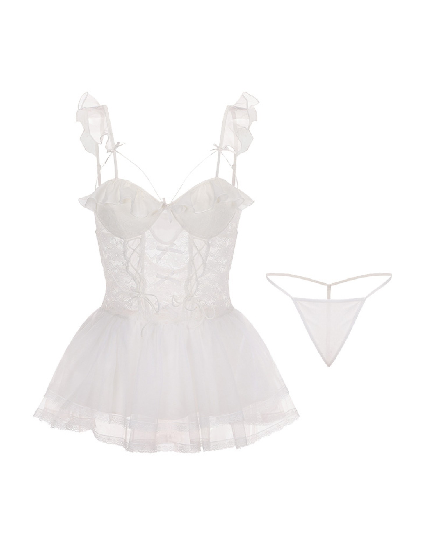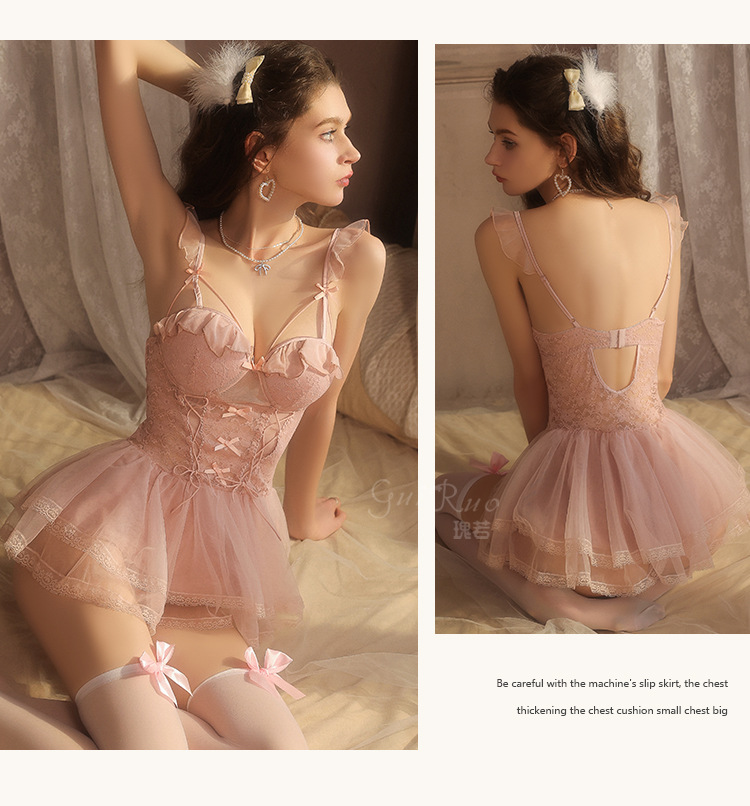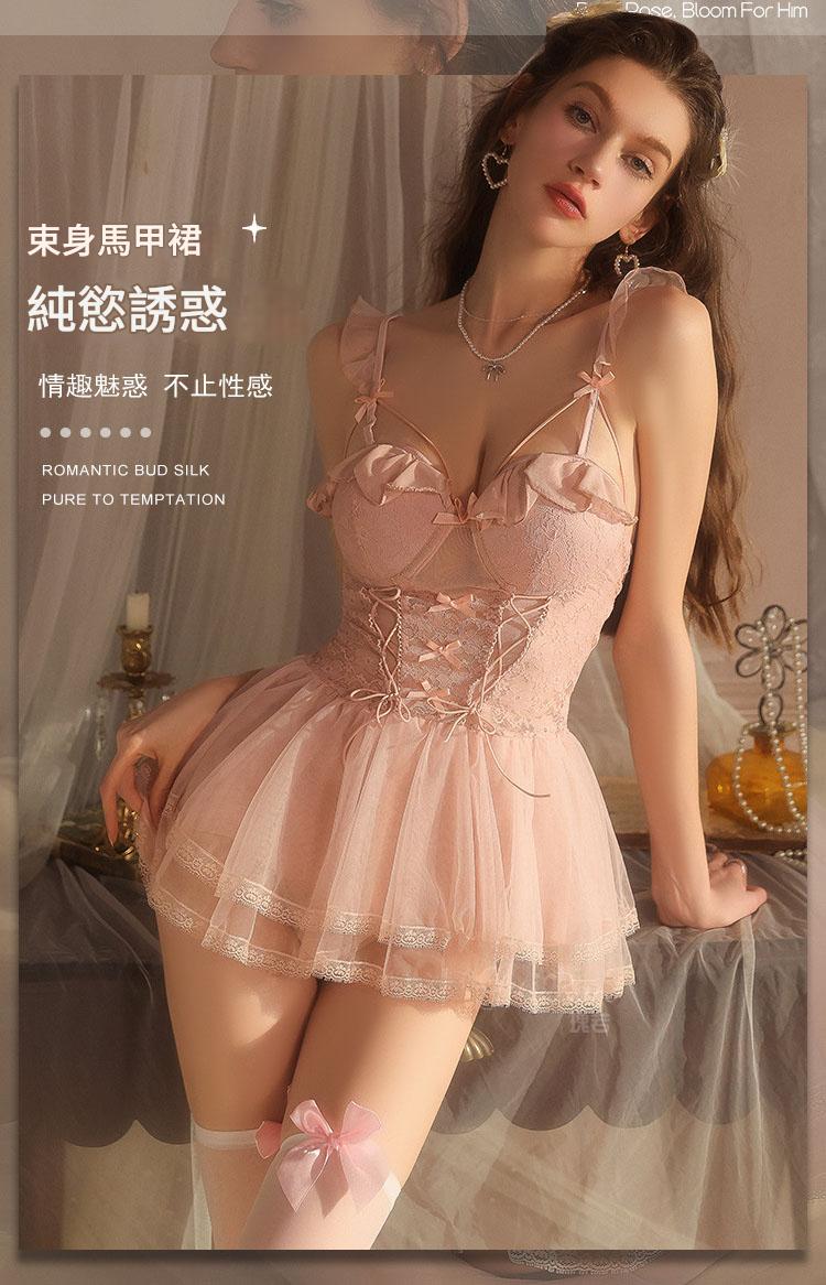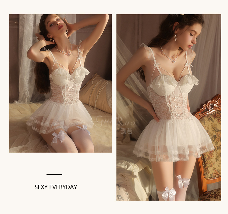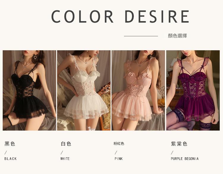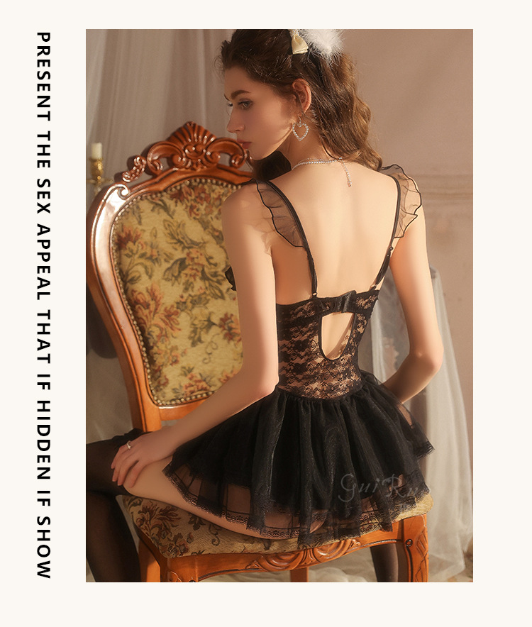 LPLT6319100037 情趣內衣大碼輕奢透視網紗蕾絲性感加胸墊吊帶裙制服套裝