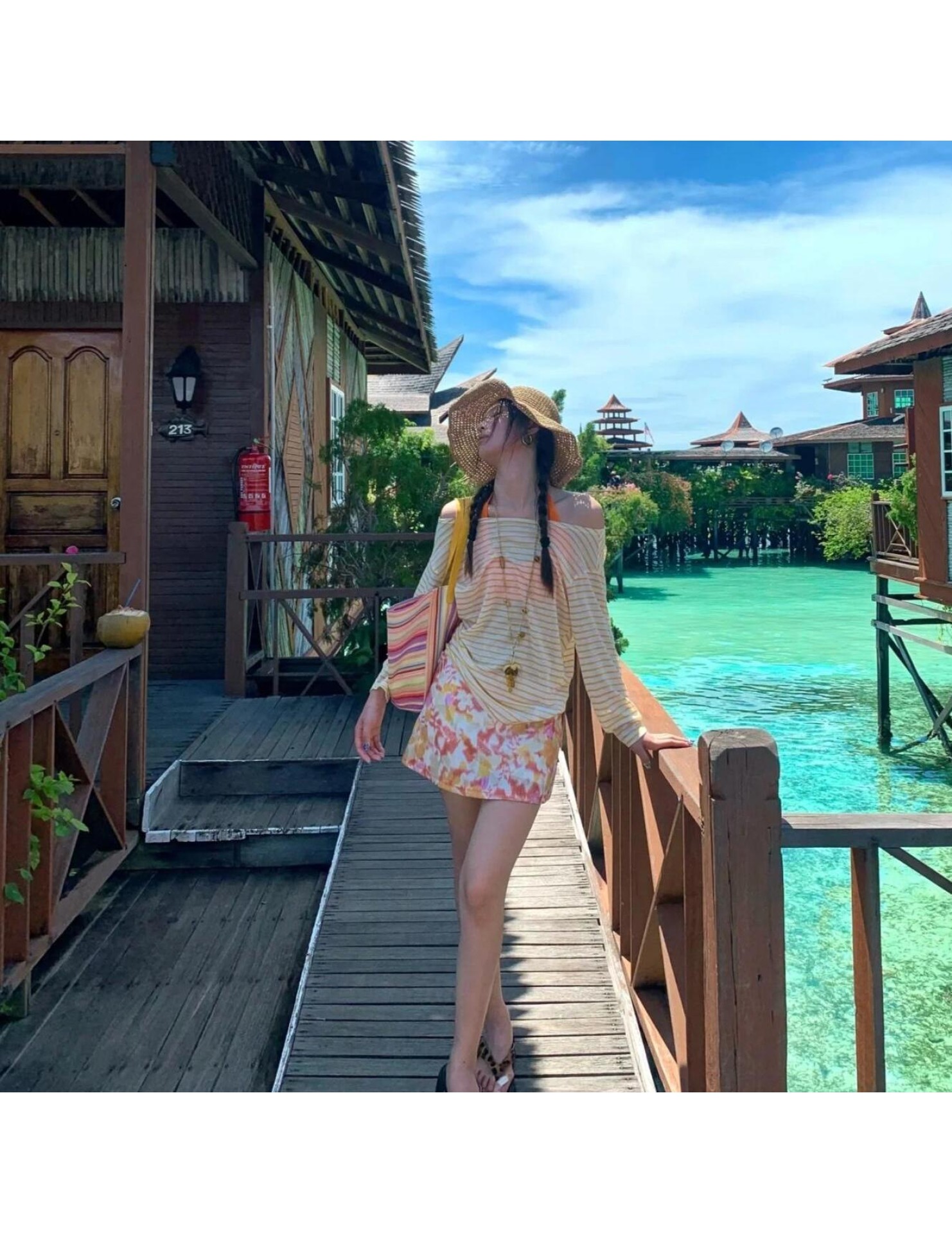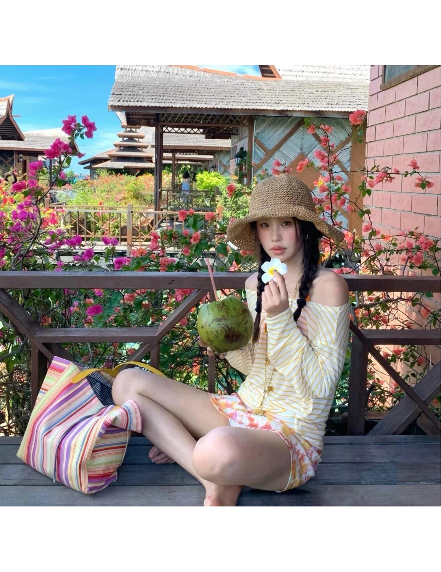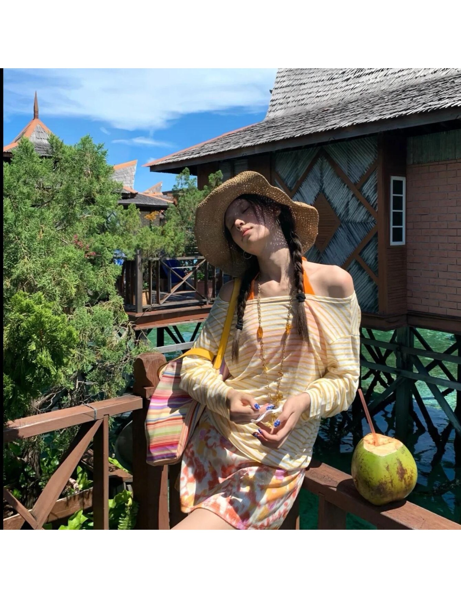 HSPN6325100001 橘夏條紋橙色條紋顯瘦性感比基尼四件套海島出片