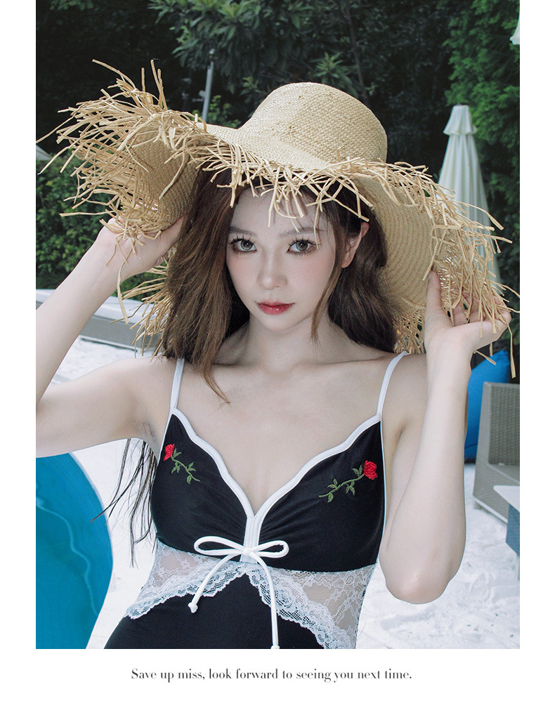 HSPN6325100007 格子玫瑰蕾絲收腰吊帶連體泳衣顯白顯瘦高顏值