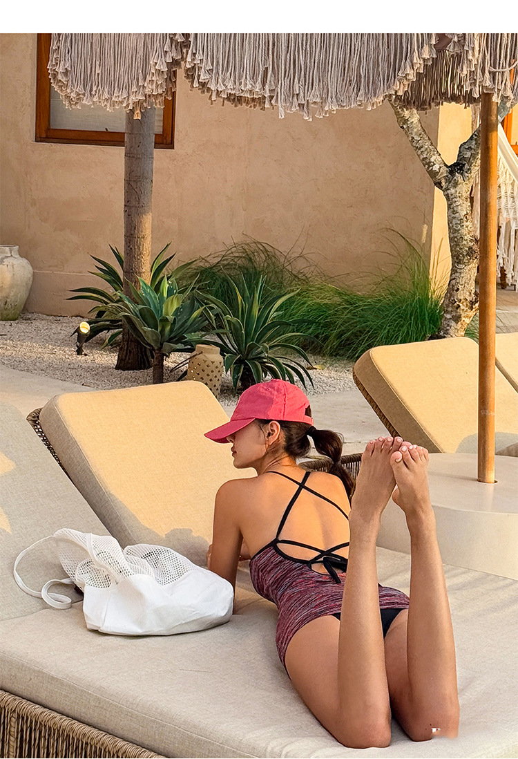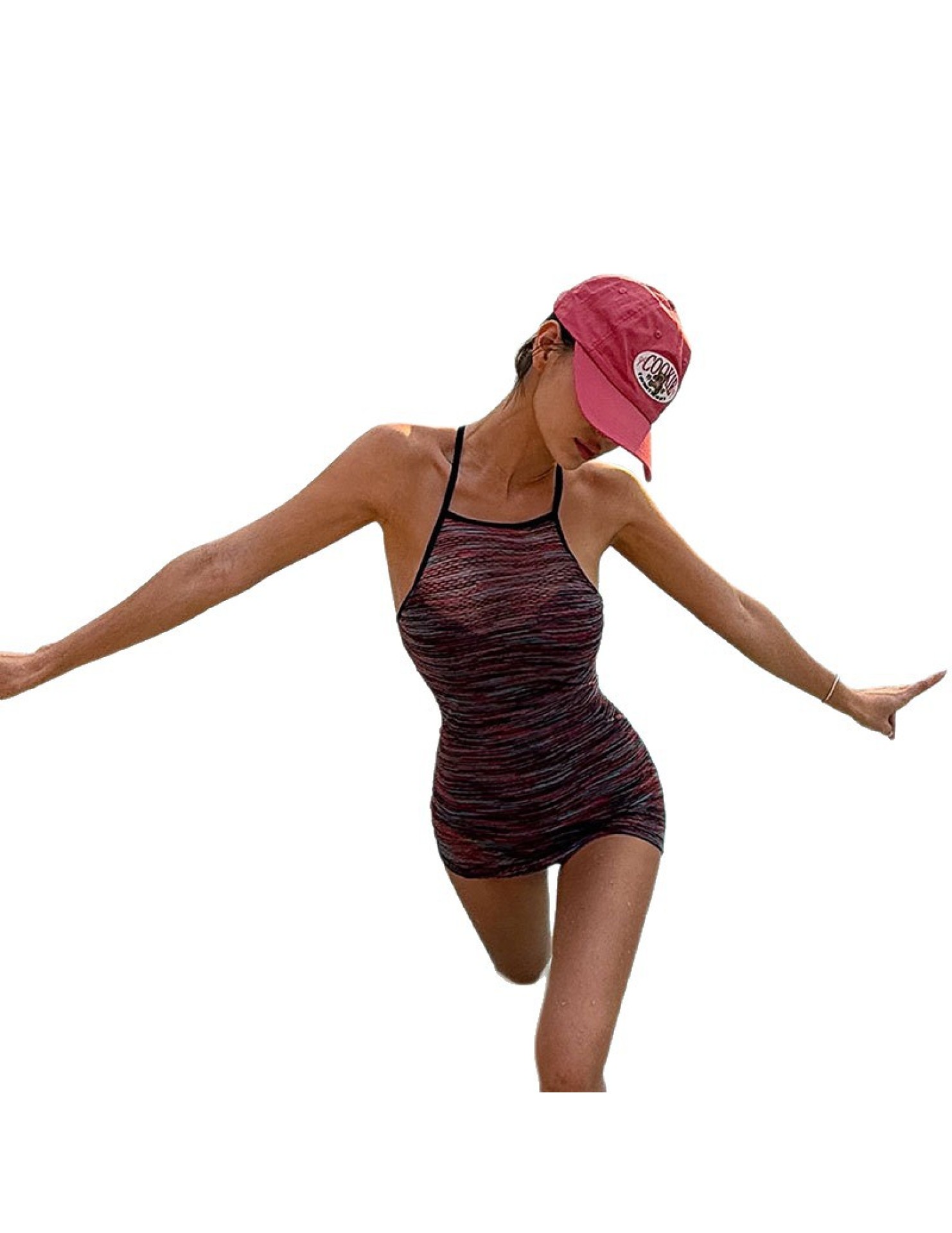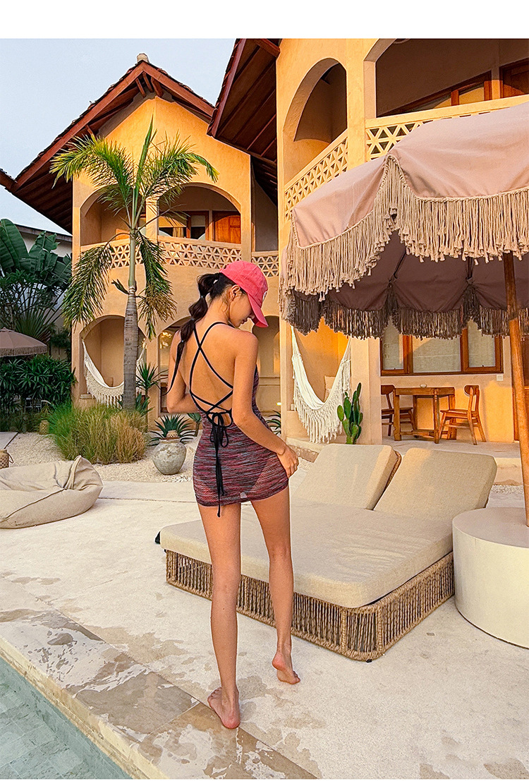 HSPN6325100011 新款ins條紋復古露背綁帶分體裙式海邊度假泳衣女泳裝