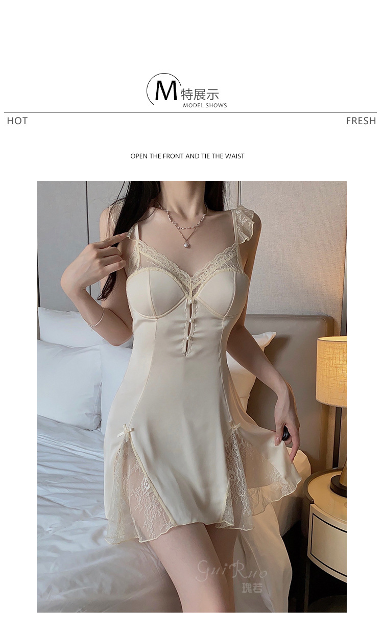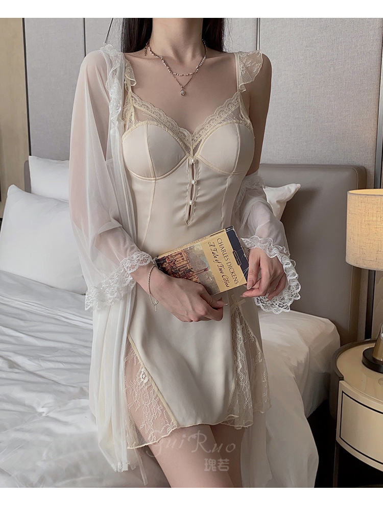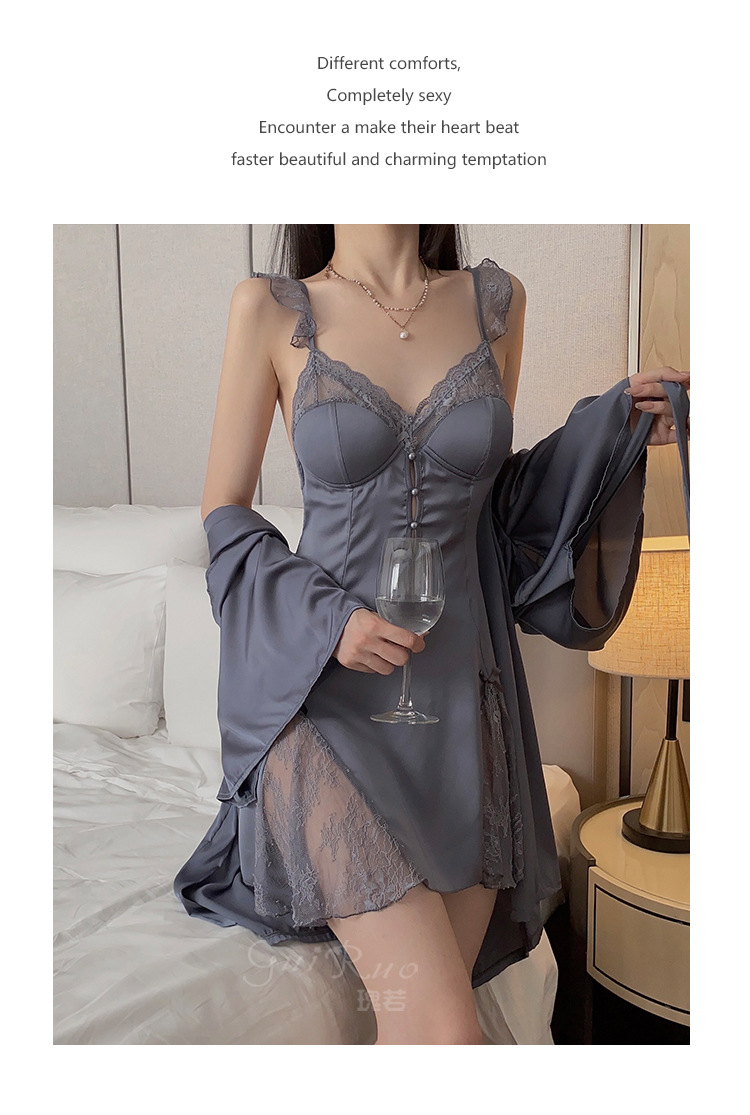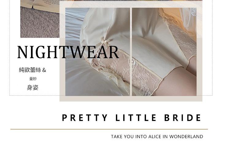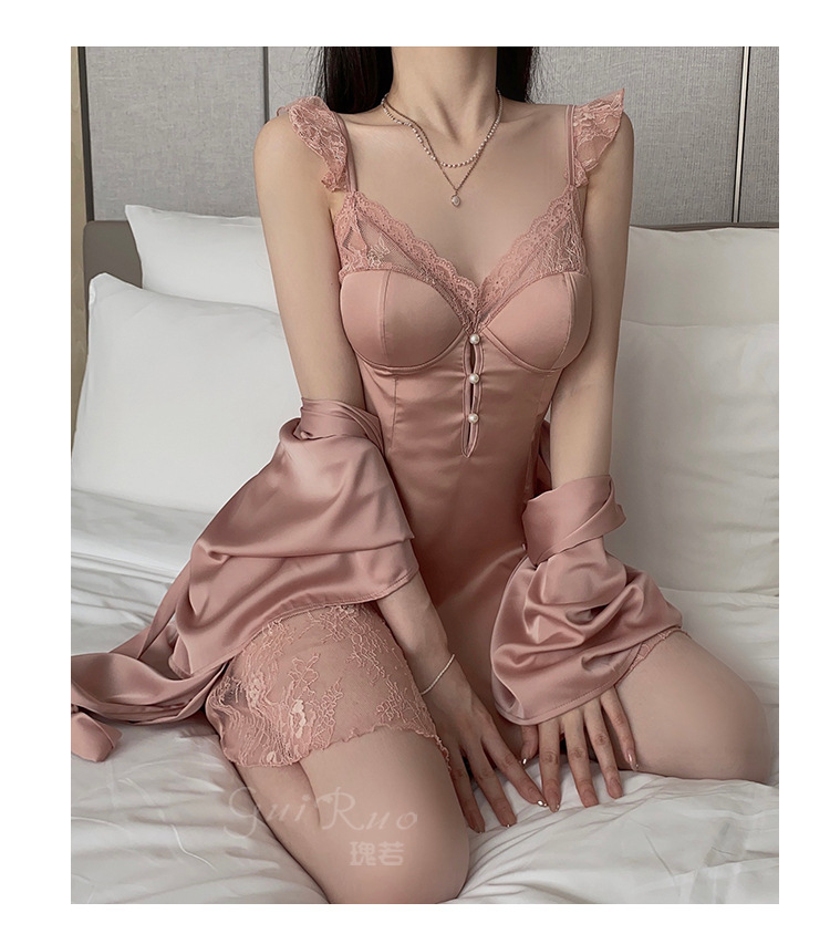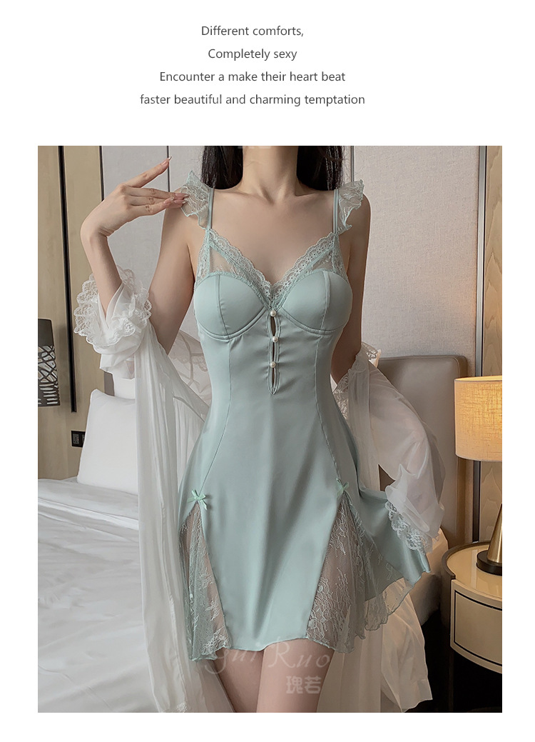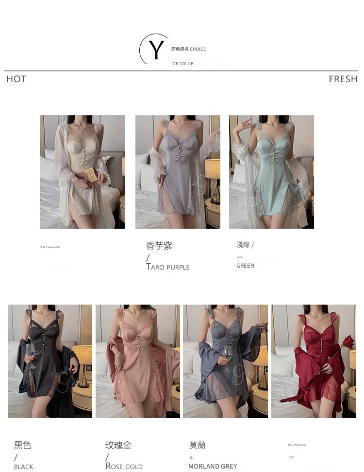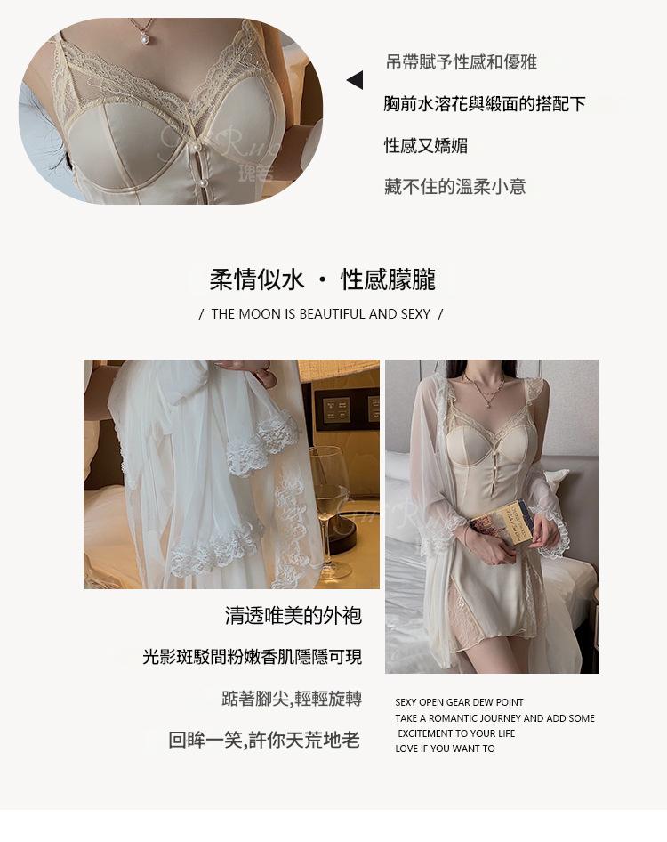 LPLT6319100045 甜美順滑緞面內衣性感大碼深V加胸墊睡裙外袍家居套裝