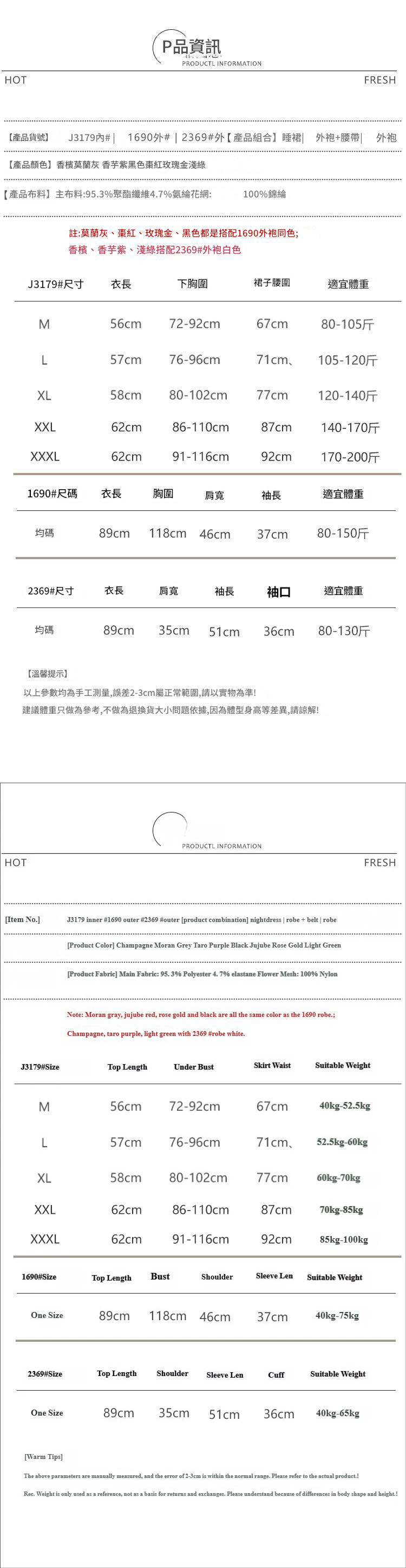 J3179香檳色(睡裙)