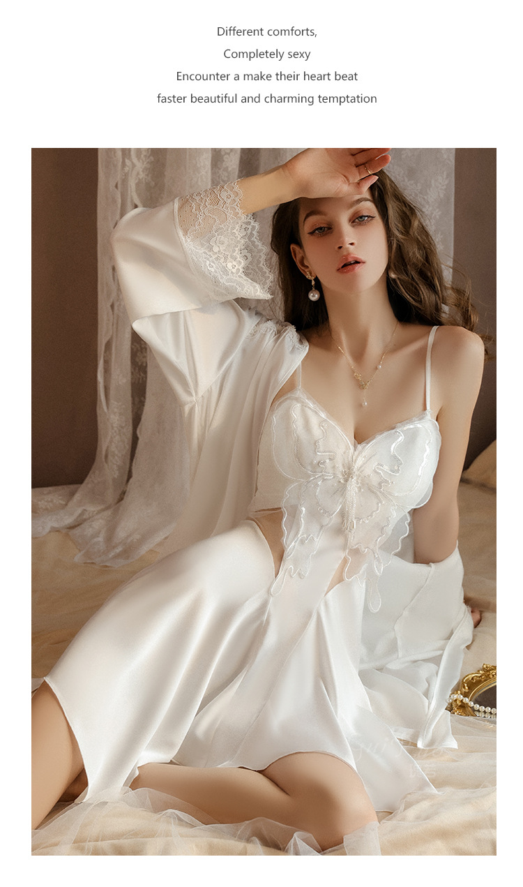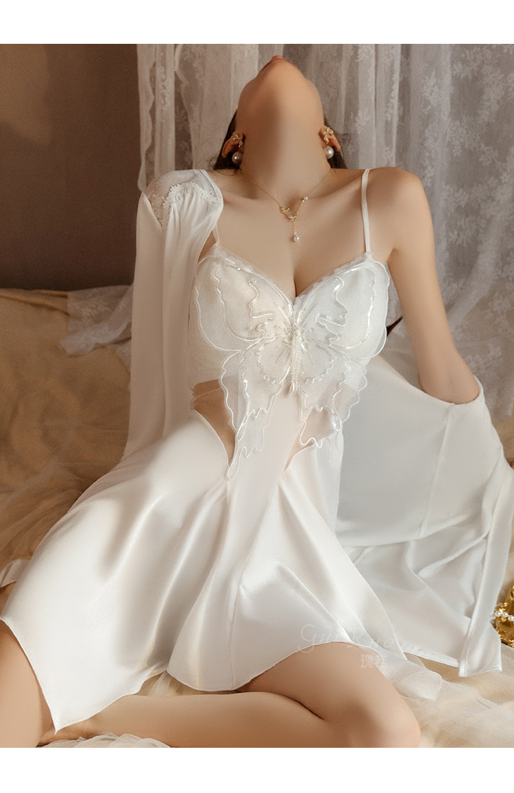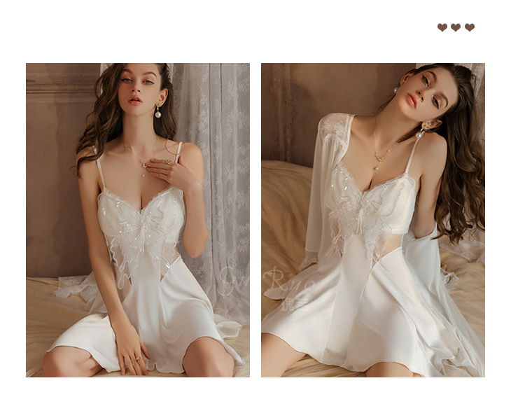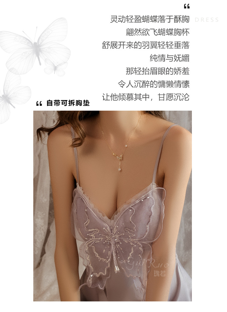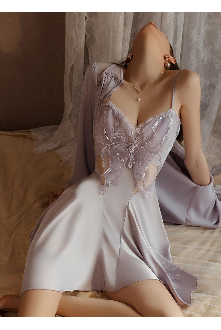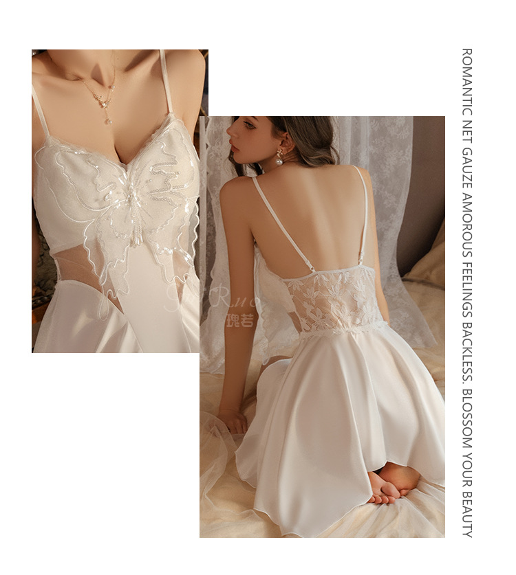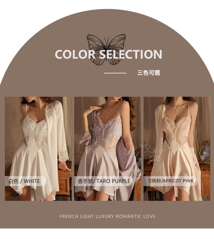 LPLT6319100050 性感低胸聚攏加胸墊網紗透視露背大碼睡裙外袍家居服套裝