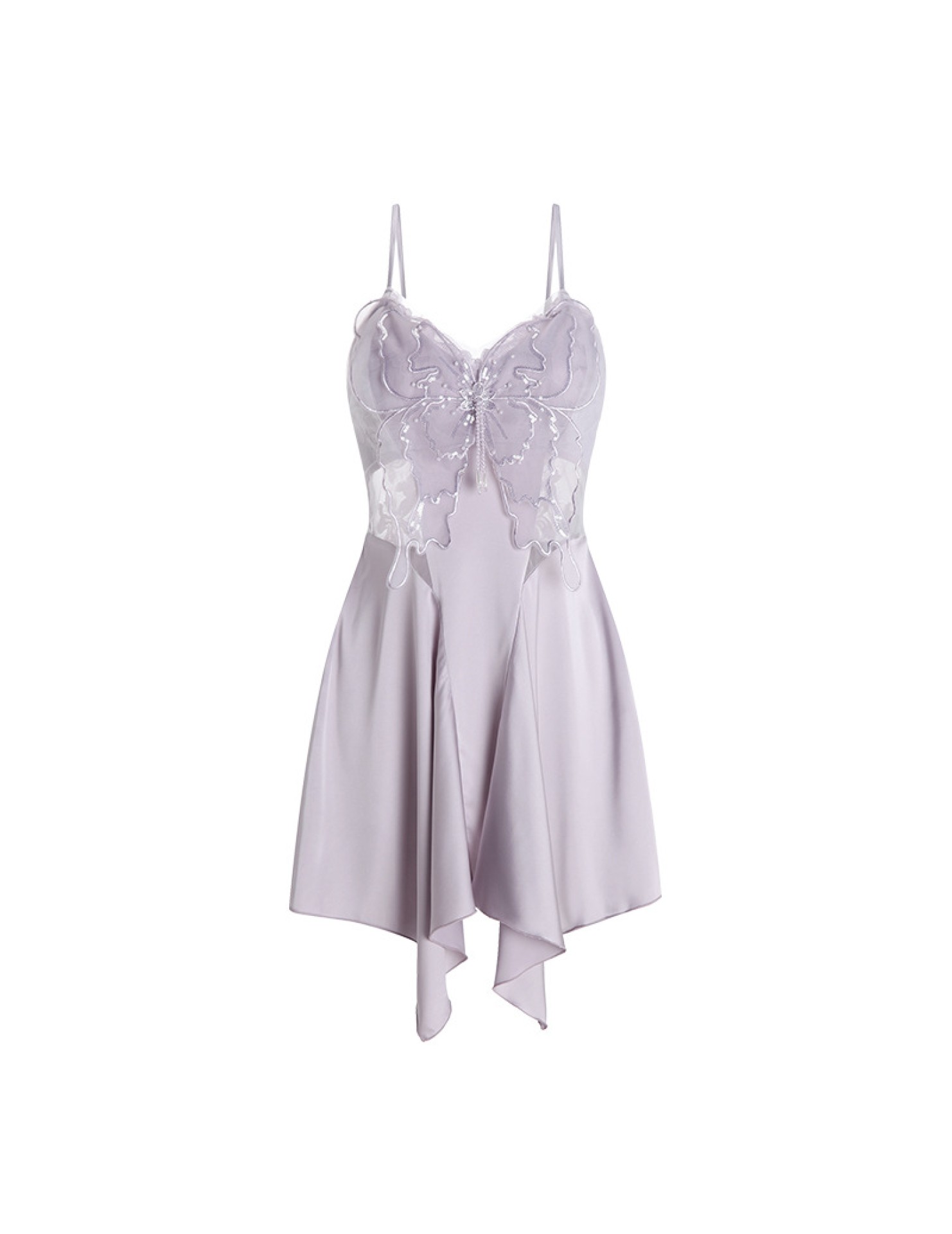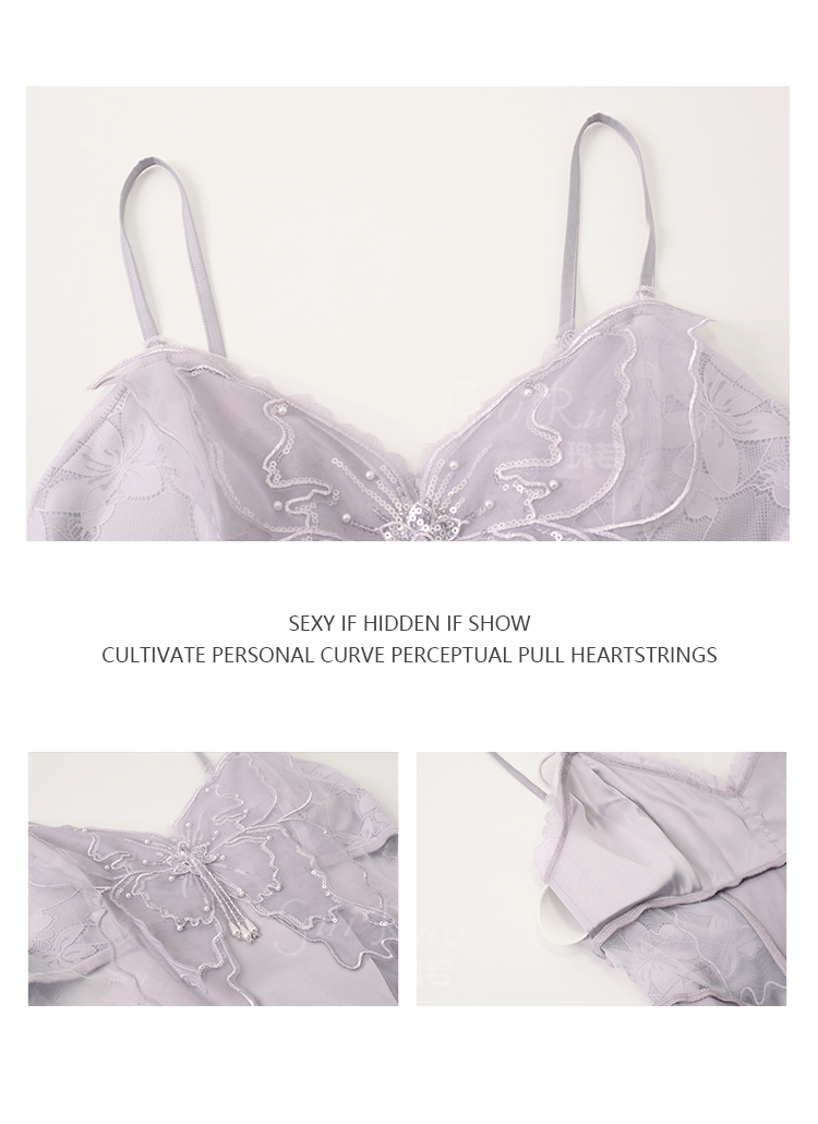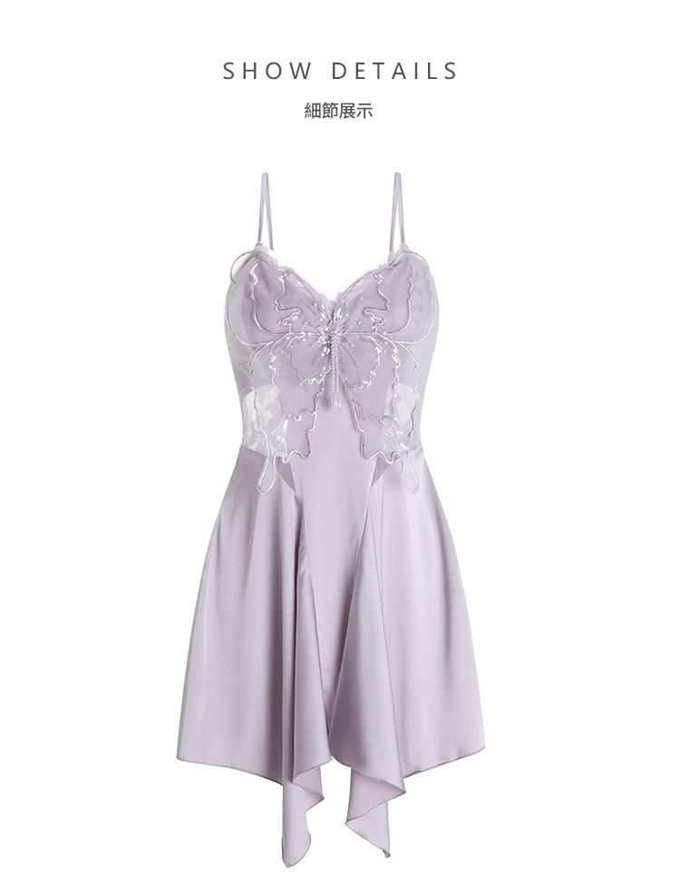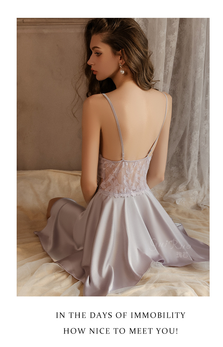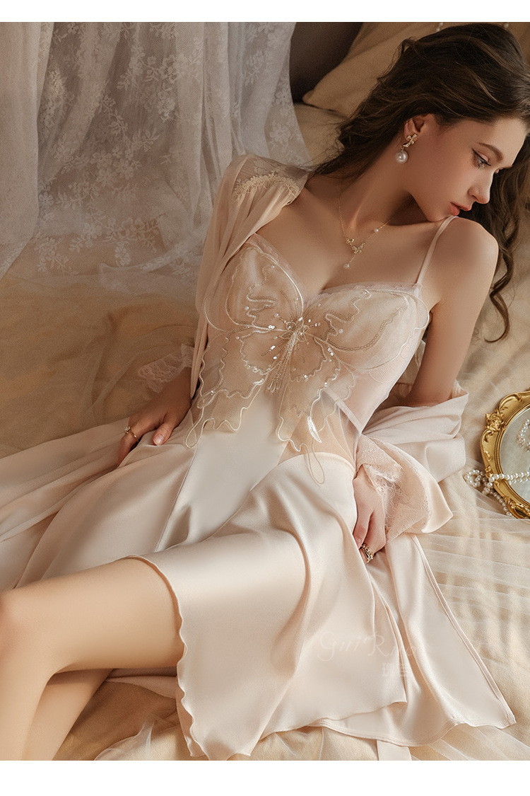 LPLT6319100050 性感低胸聚攏加胸墊網紗透視露背大碼睡裙外袍家居服套裝
