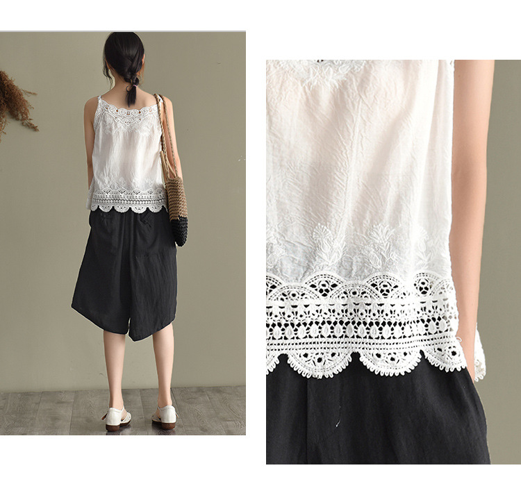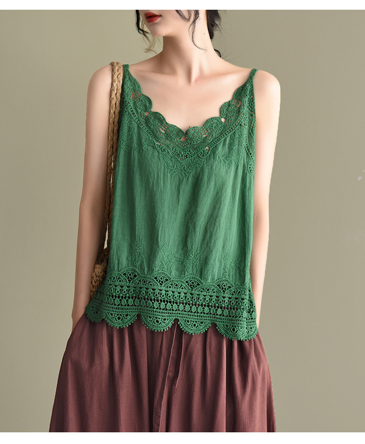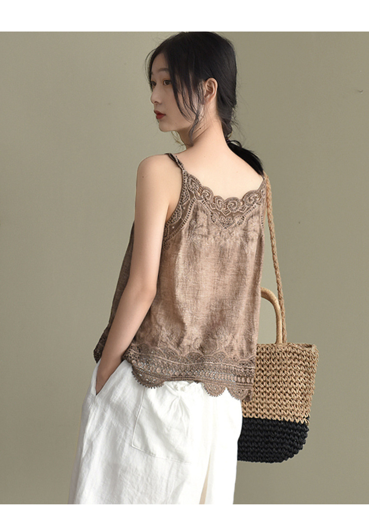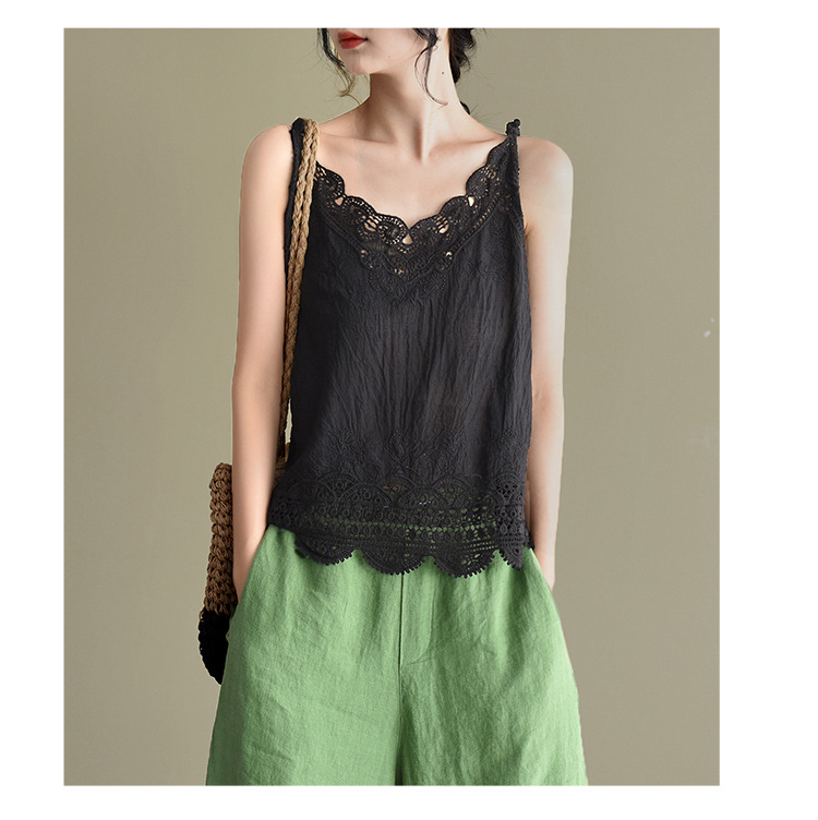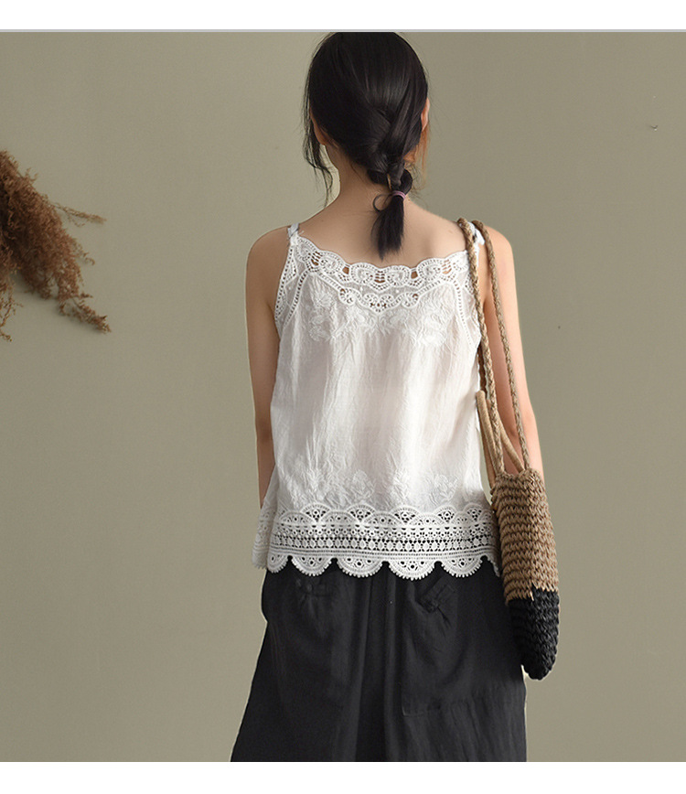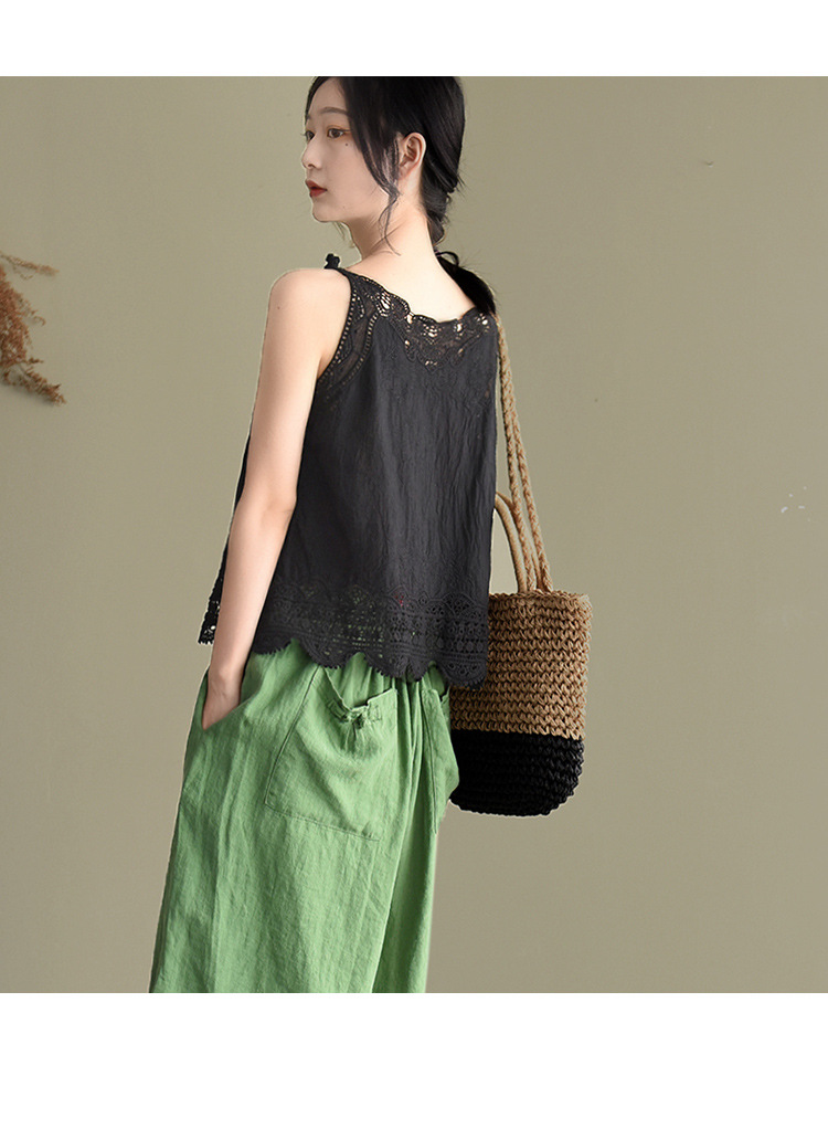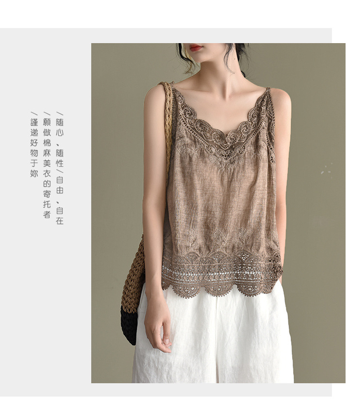 LWBC6326100001 夏季棉麻小背心純棉內搭打底鏤空刺繡蕾絲吊帶寬松亞麻無袖上衣女