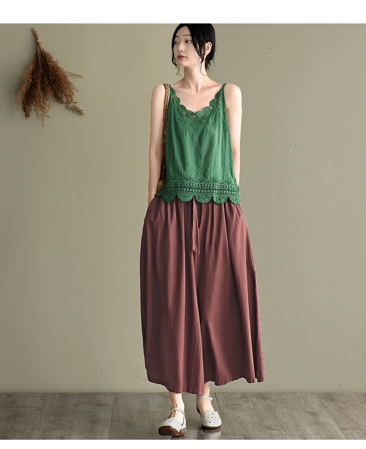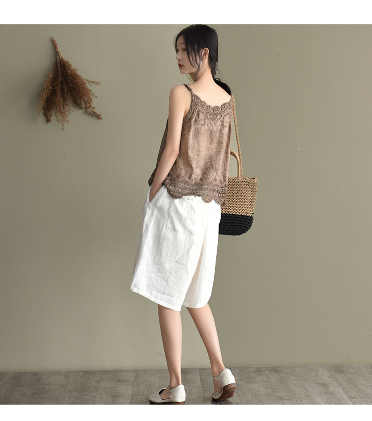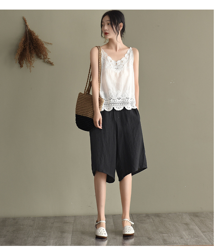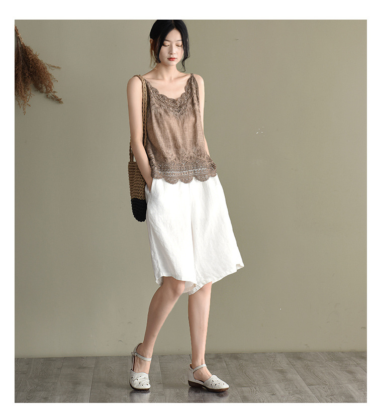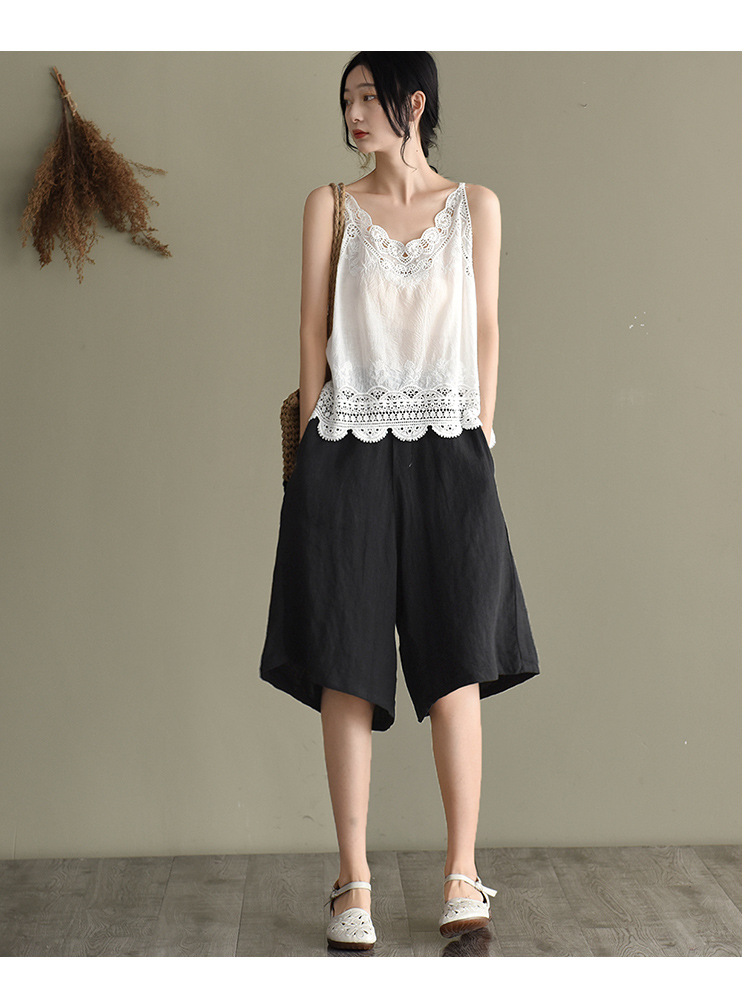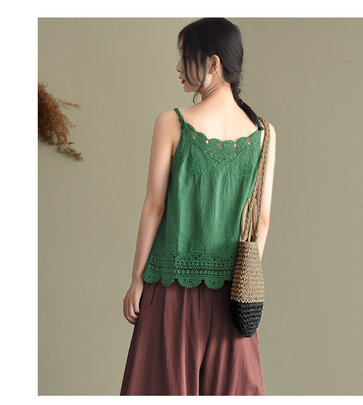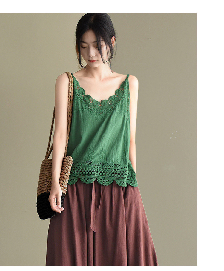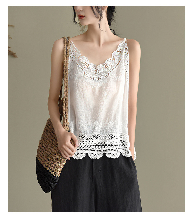 LWBC6326100001 夏季棉麻小背心純棉內搭打底鏤空刺繡蕾絲吊帶寬松亞麻無袖上衣女