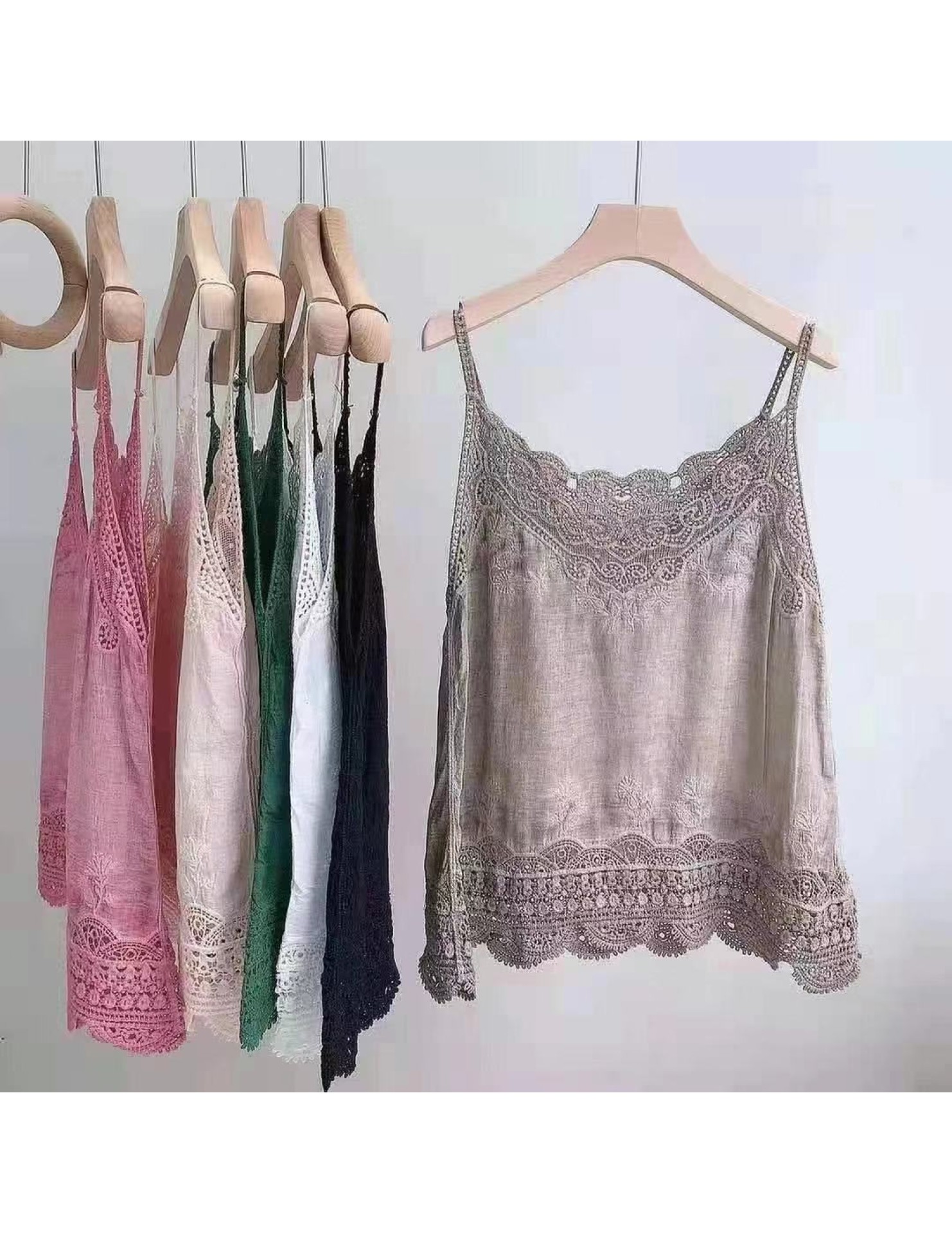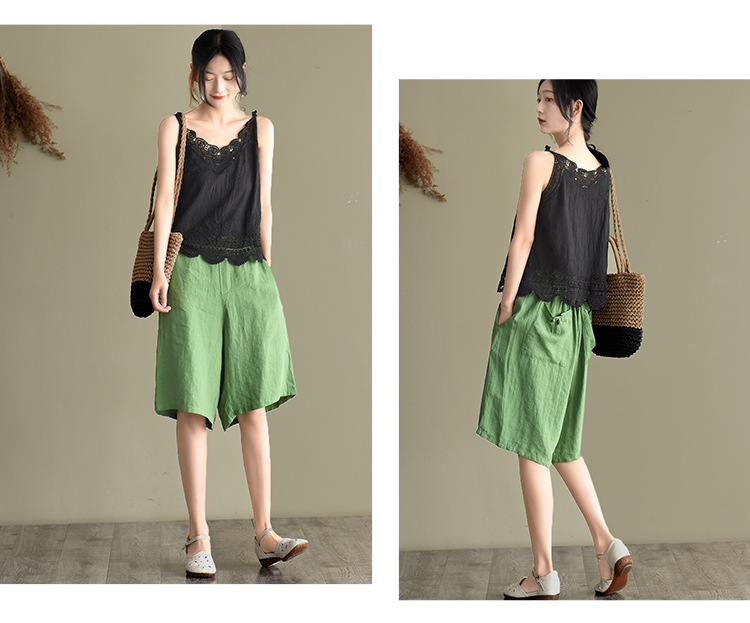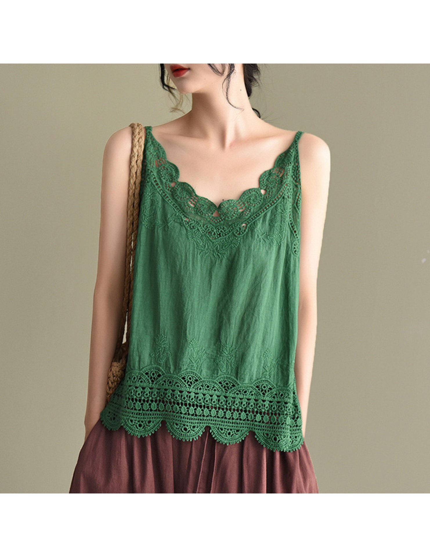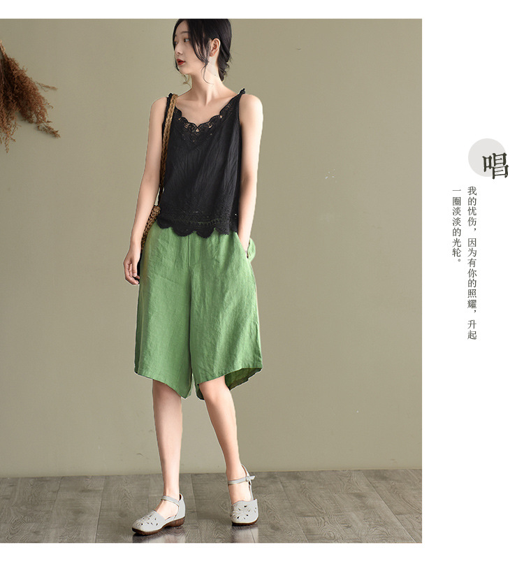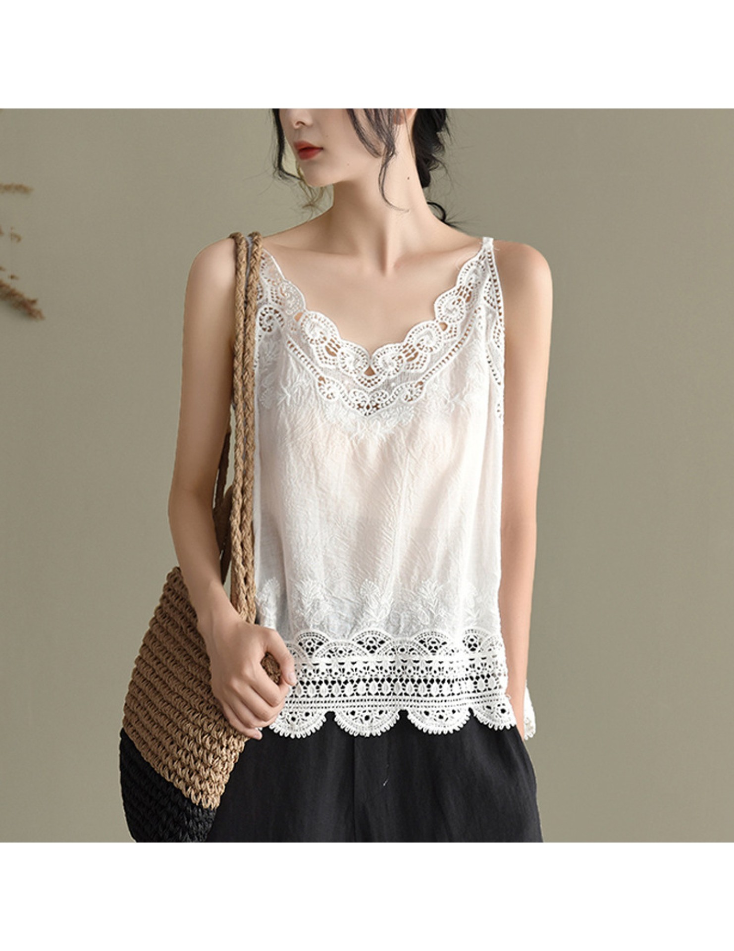LWBC6326100001 夏季棉麻小背心純棉內搭打底鏤空刺繡蕾絲吊帶寬松亞麻無袖上衣女