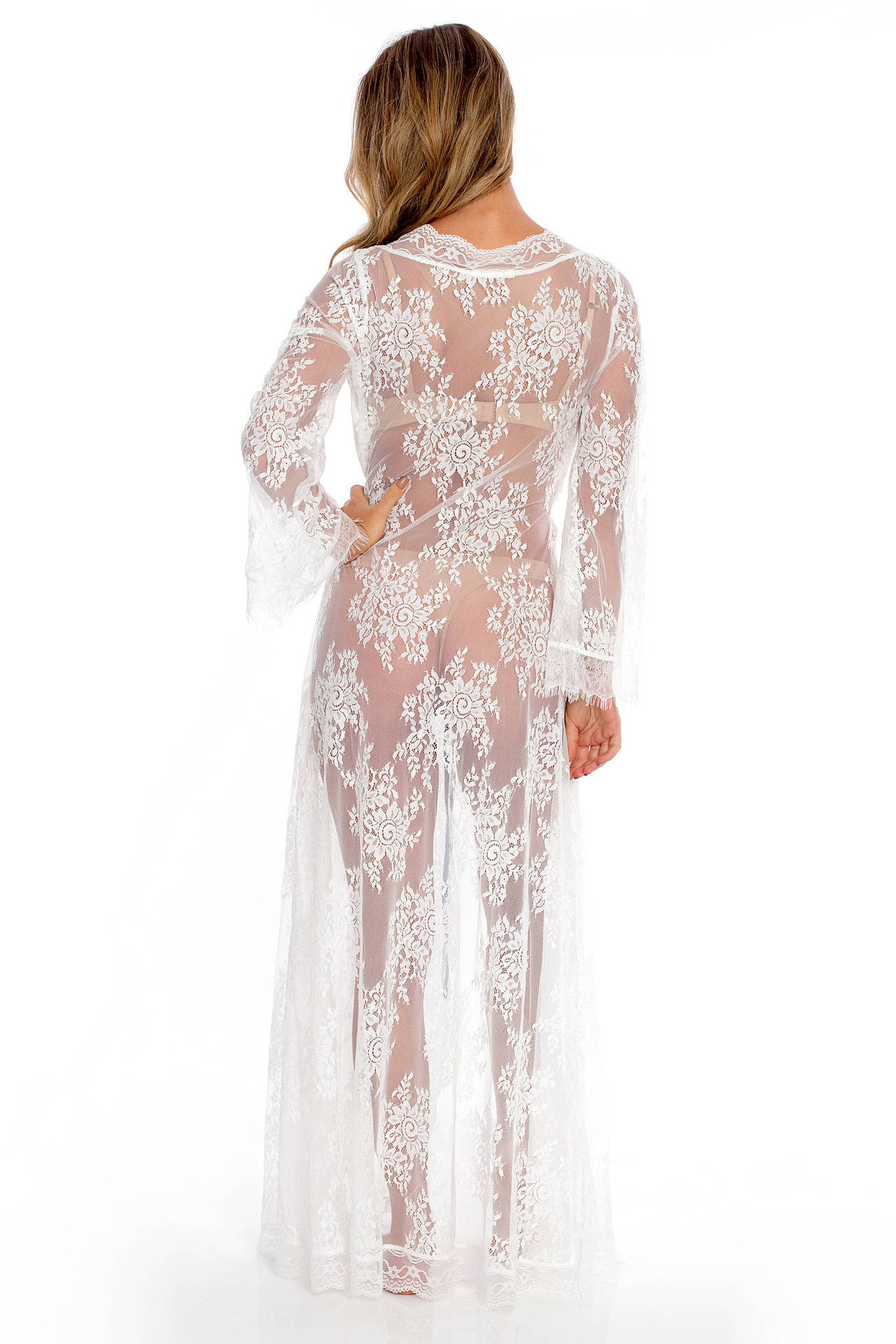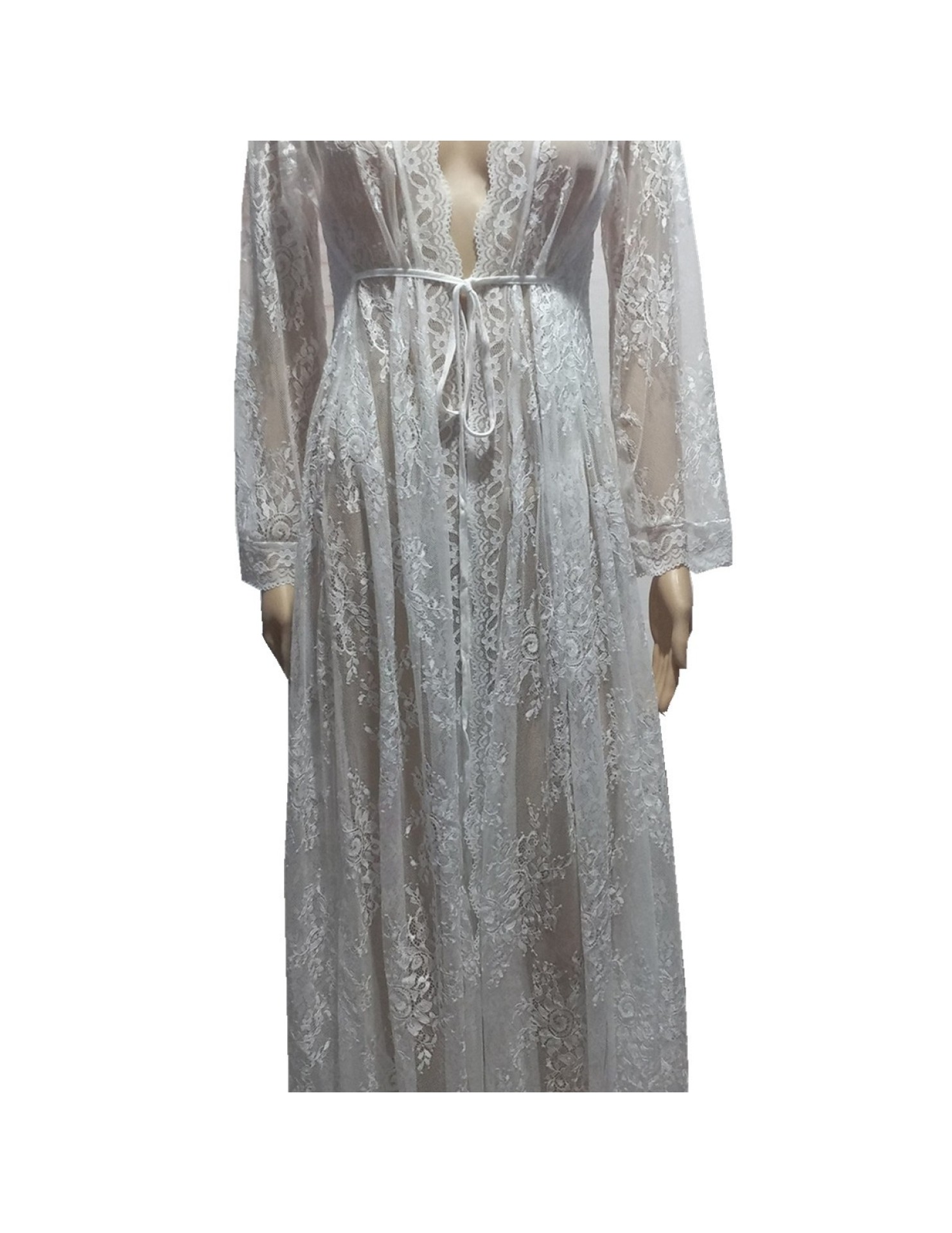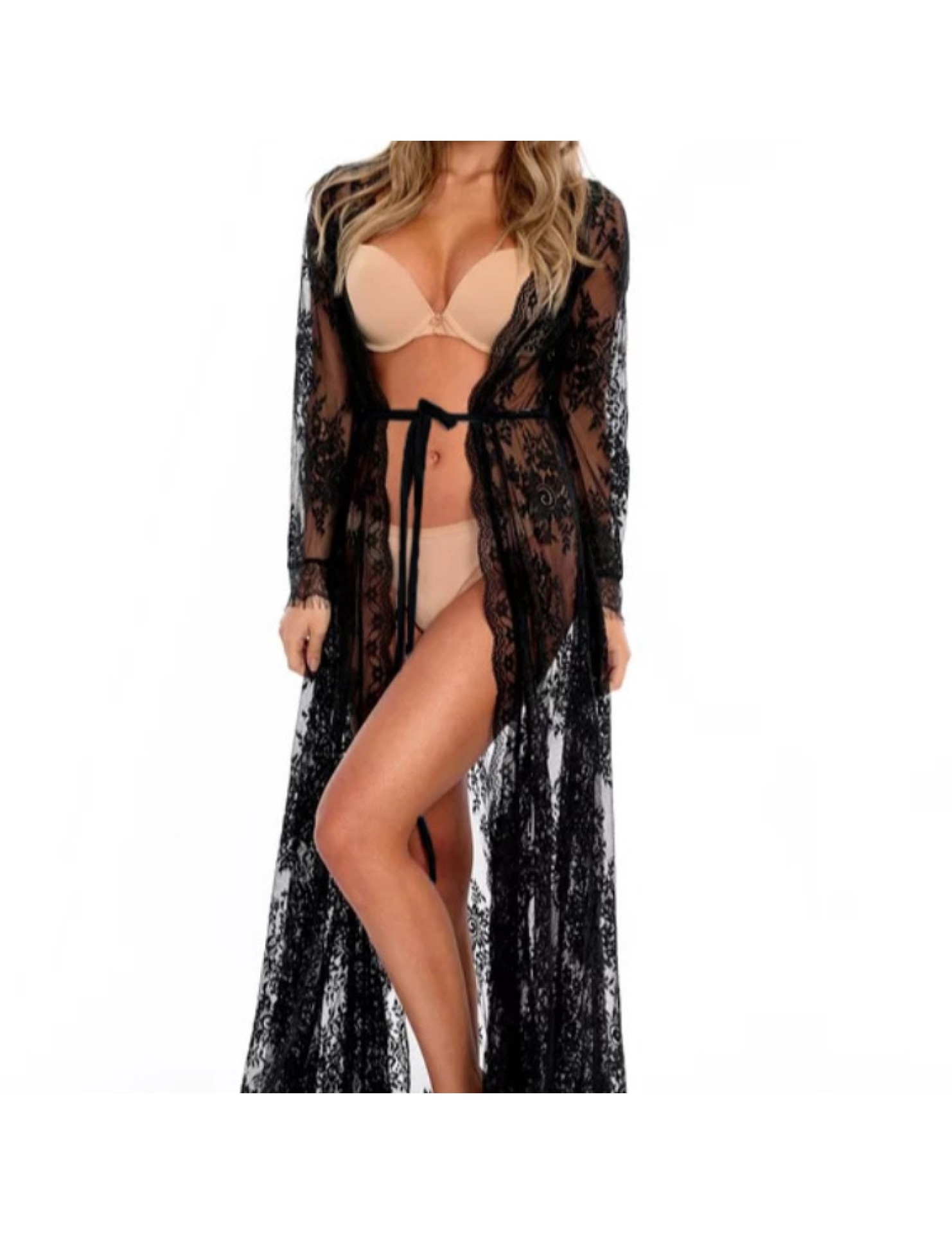 LWBC6326100003 新款波浪花邊蕾絲寬松防曬沙灘開衫長裙度假裝泳衣外搭罩衫女