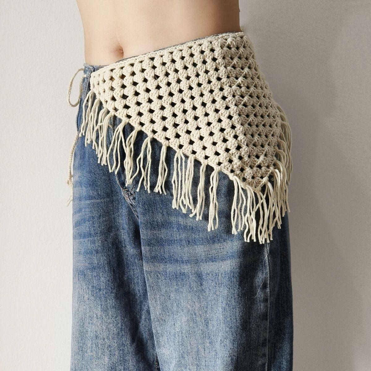 LWBC6326100007 新款三角腰封鏤空綁帶辣妹時尚搭配圍巾腰巾屁簾頭巾手工編織