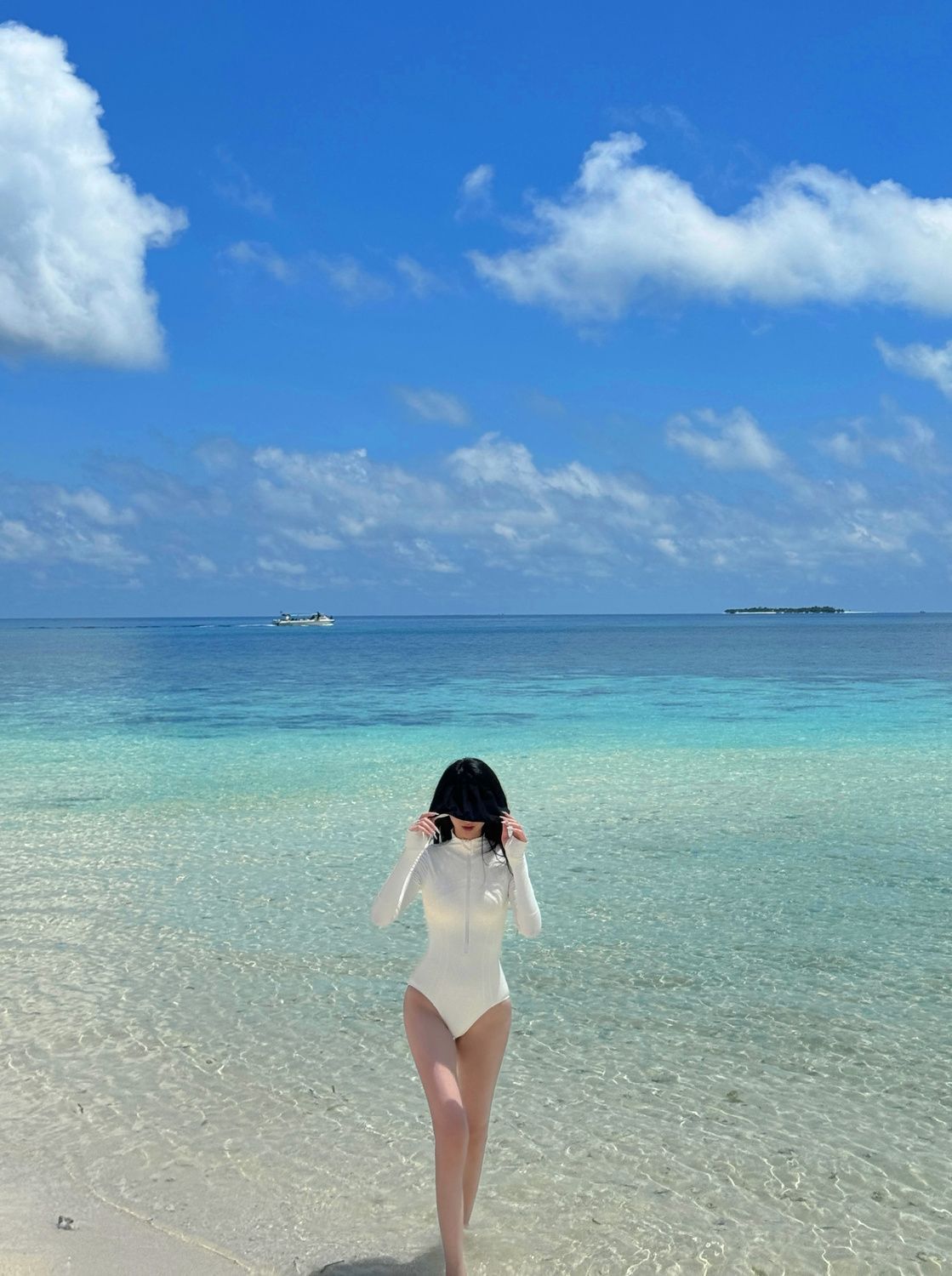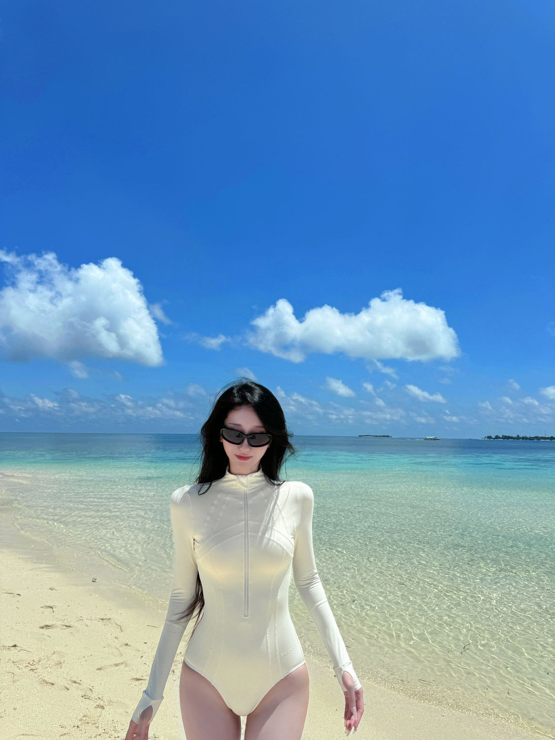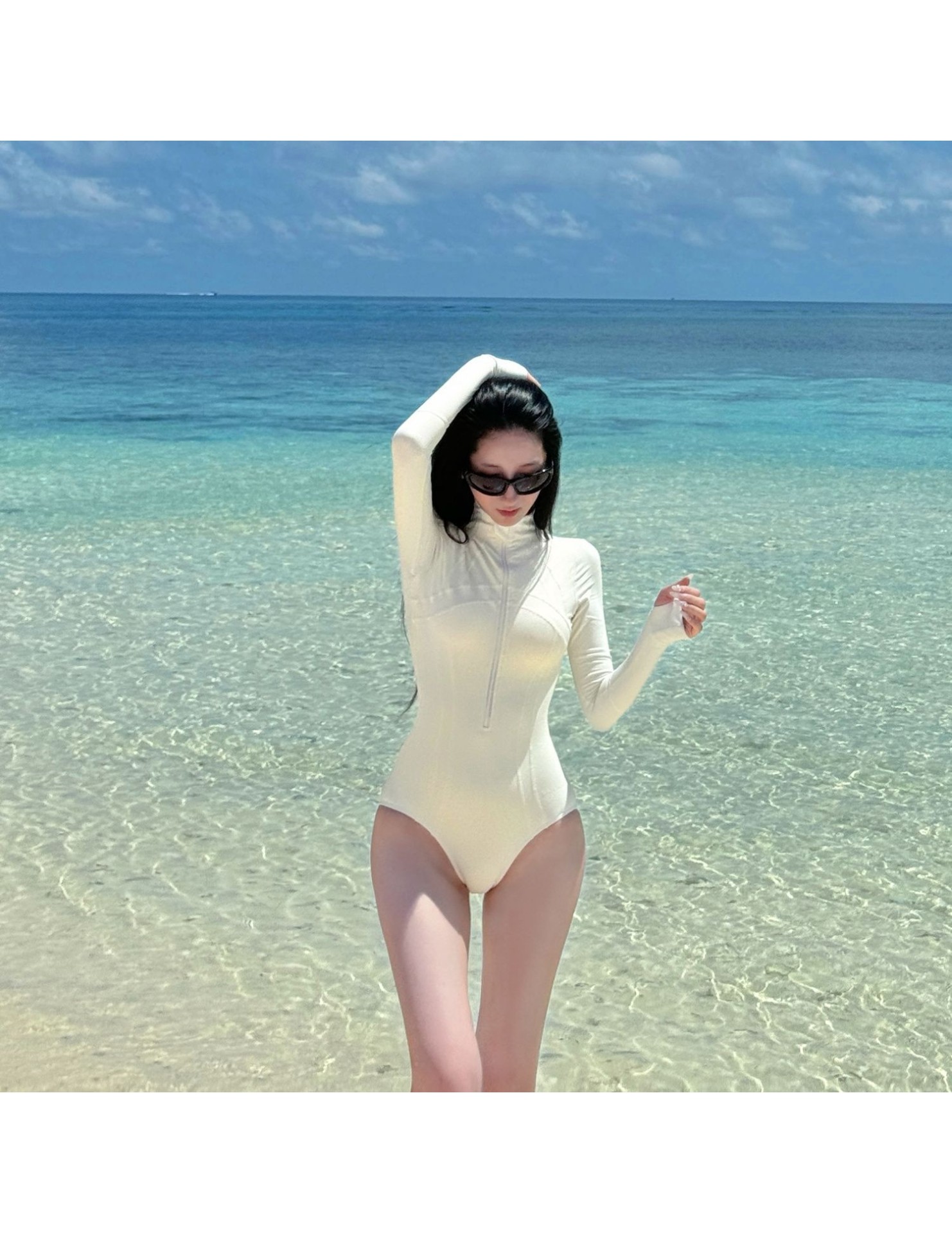 HSPN6328100002 韓系黑白極簡長袖防嗮泳衣度假出海顯瘦性感遮肉