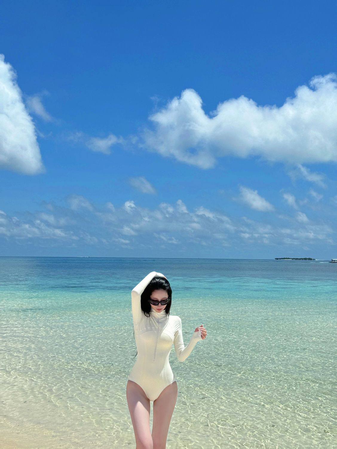 米白色泳衣
