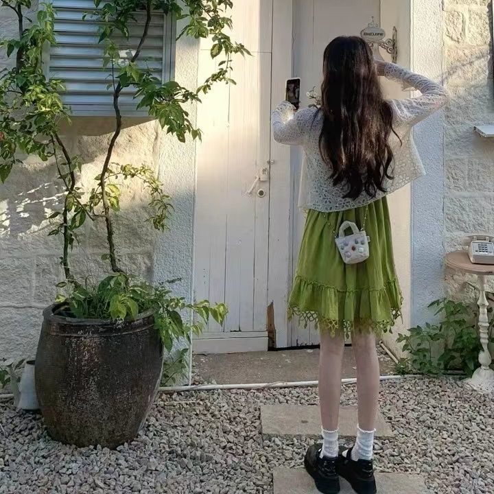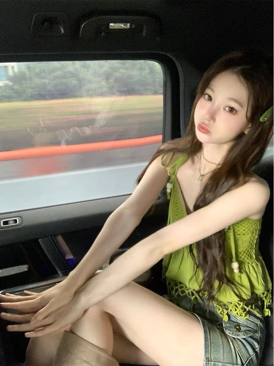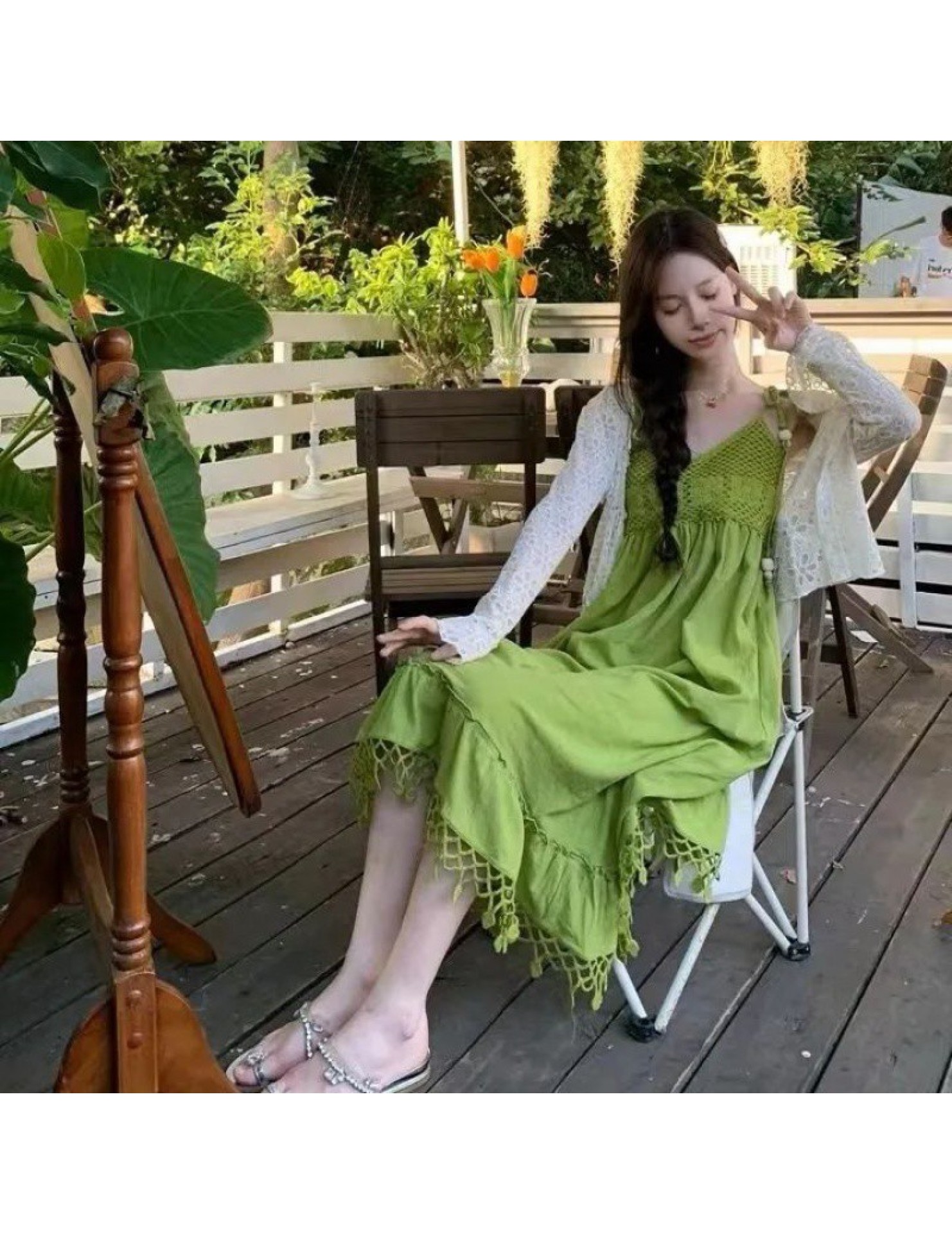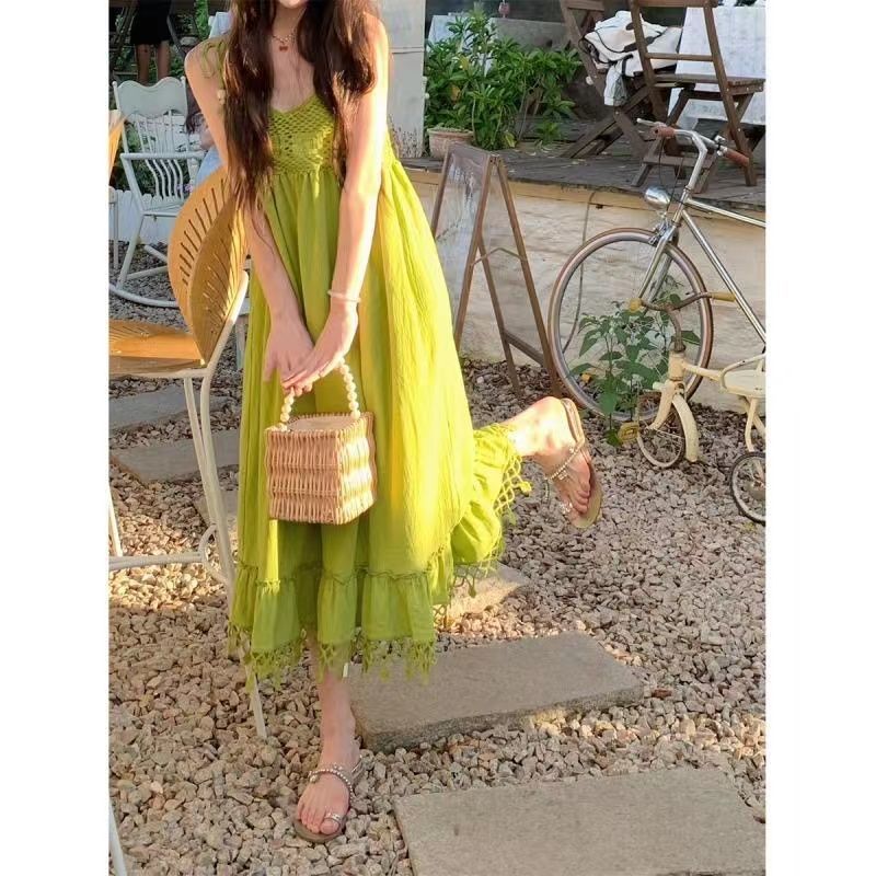 LWBC6326100025 綠色吊帶連衣裙女夏新款多巴胺穿搭設計感小眾度假風仙女裙子