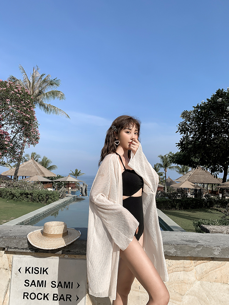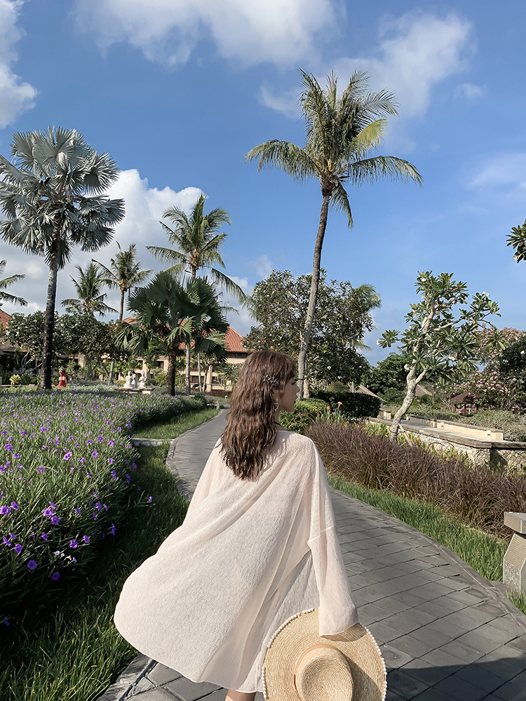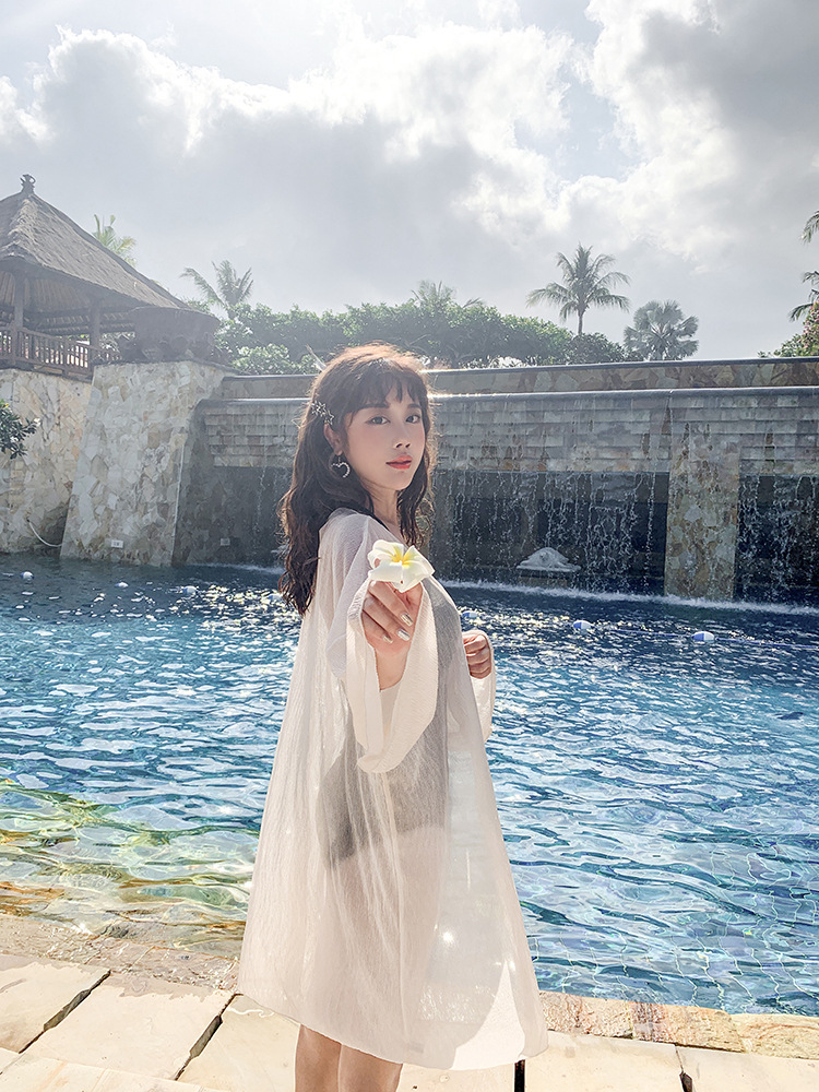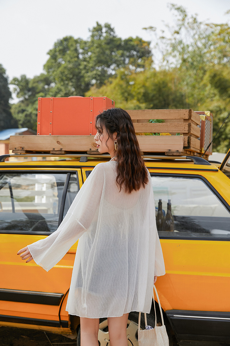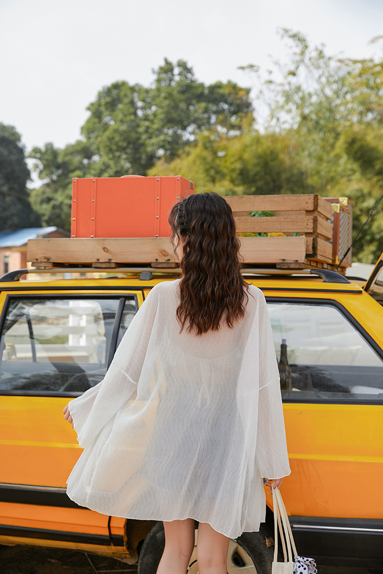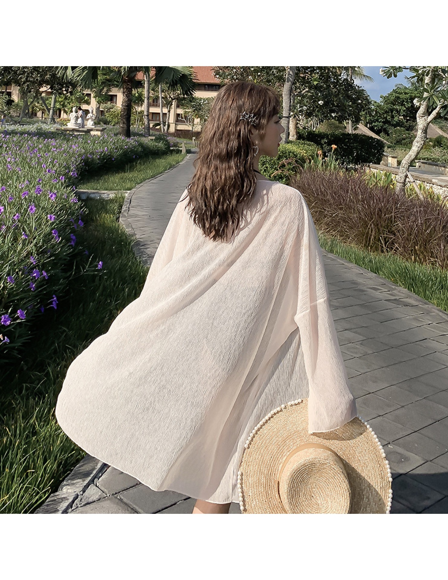 LWBC6326100012 馬爾代夫海邊度假風輕薄壓褶雪紡開衫中長薄款寬松大碼防曬衣
