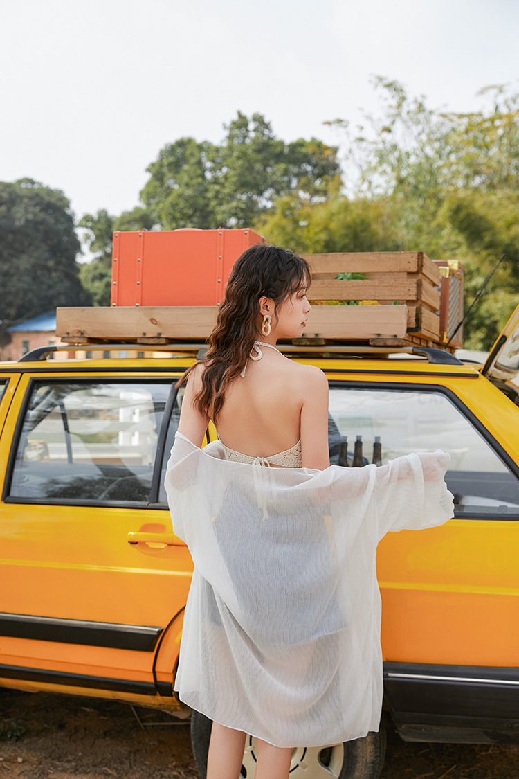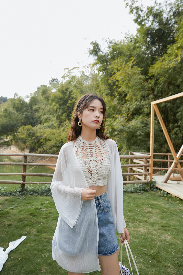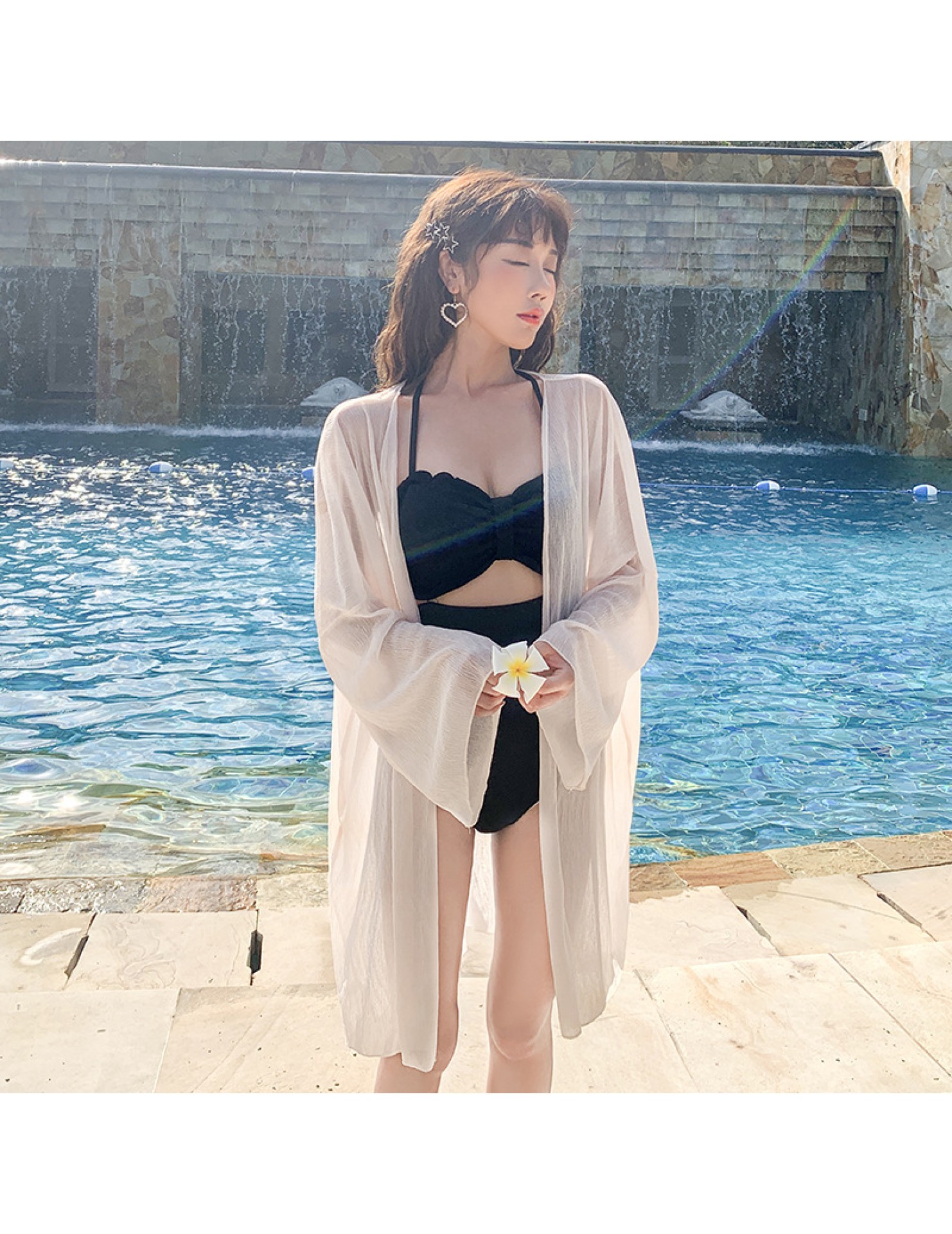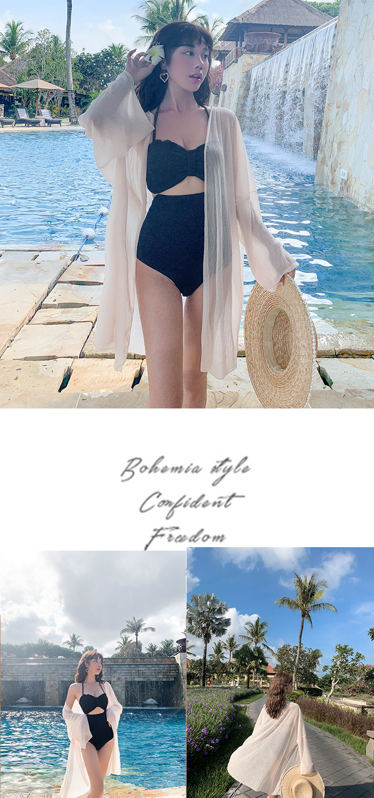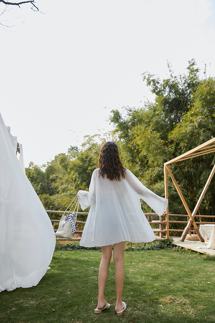 LWBC6326100012 馬爾代夫海邊度假風輕薄壓褶雪紡開衫中長薄款寬松大碼防曬衣