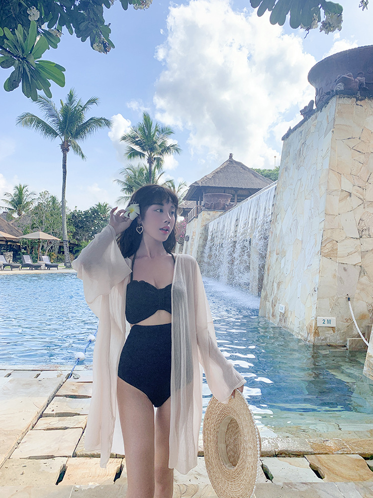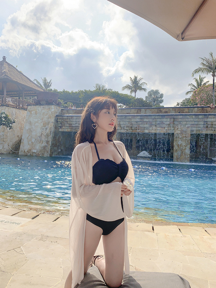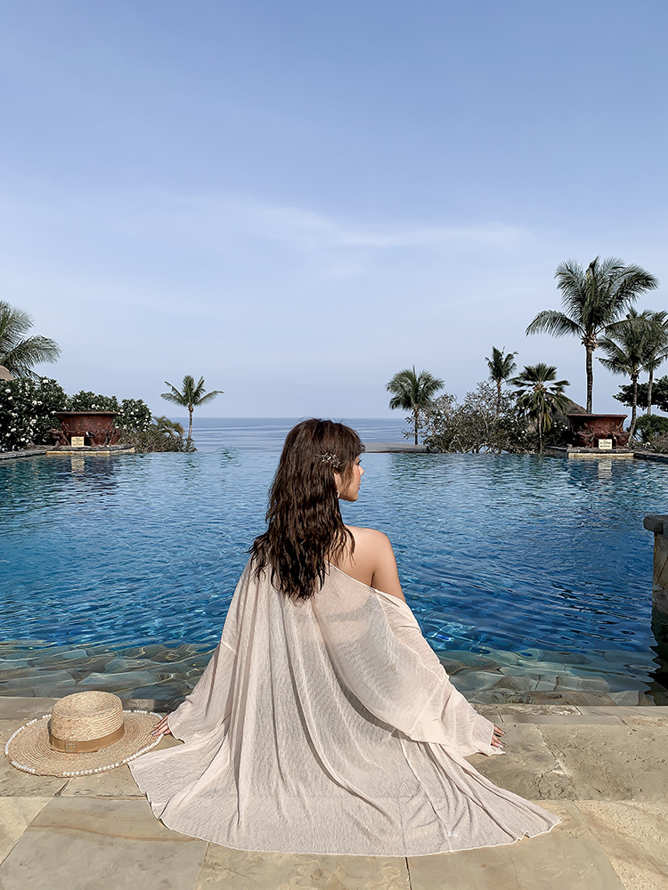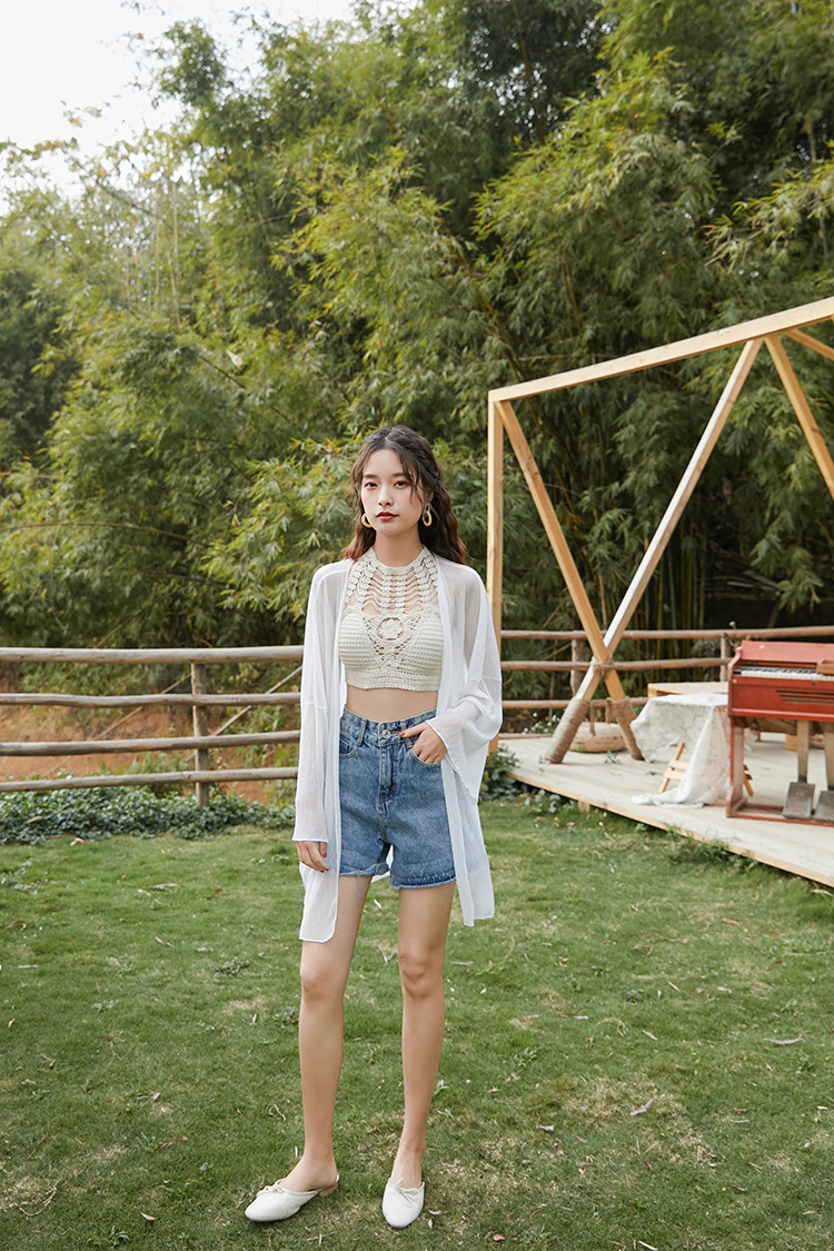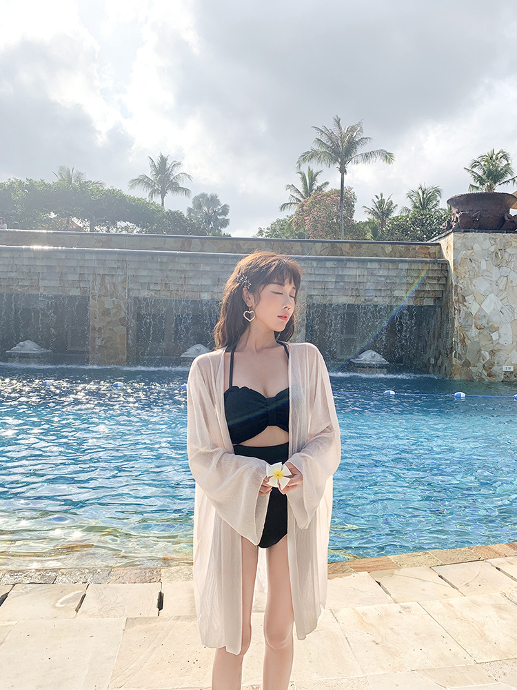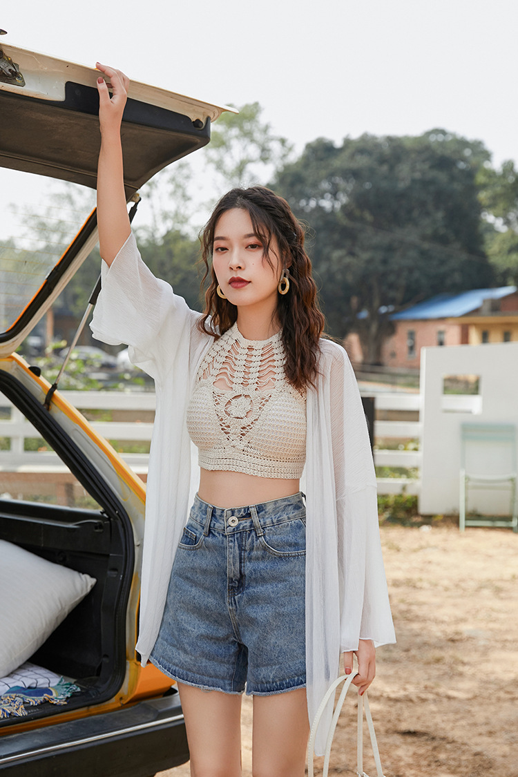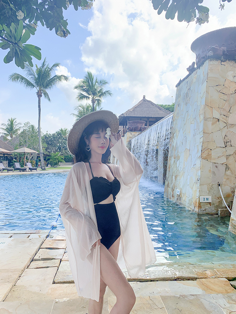 LWBC6326100012 馬爾代夫海邊度假風輕薄壓褶雪紡開衫中長薄款寬松大碼防曬衣
