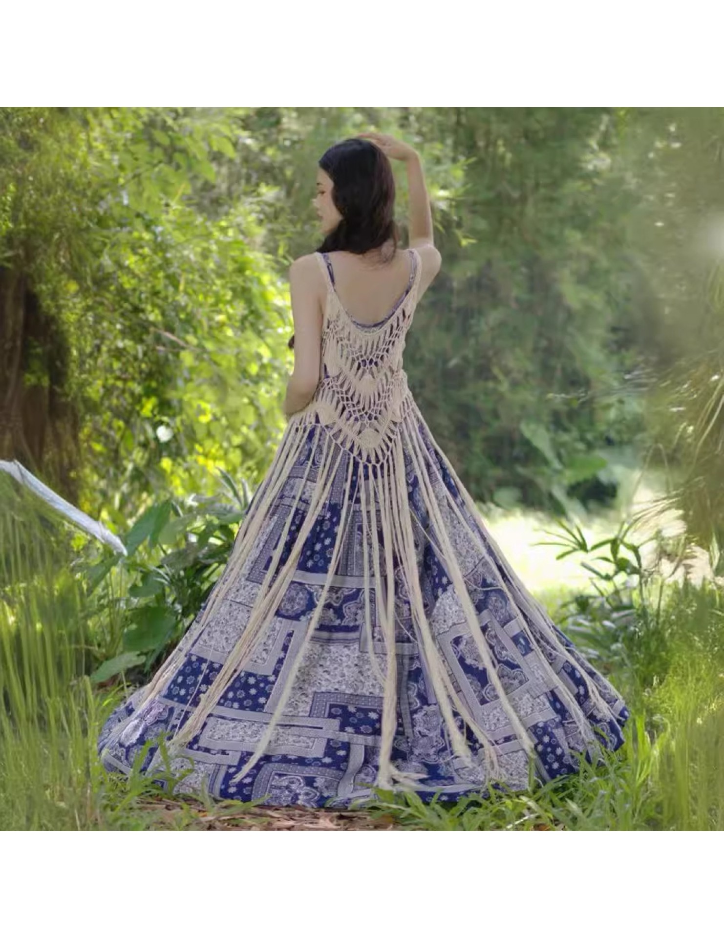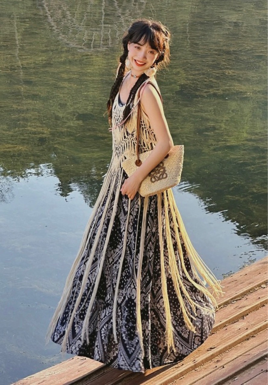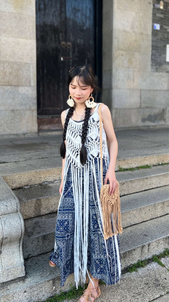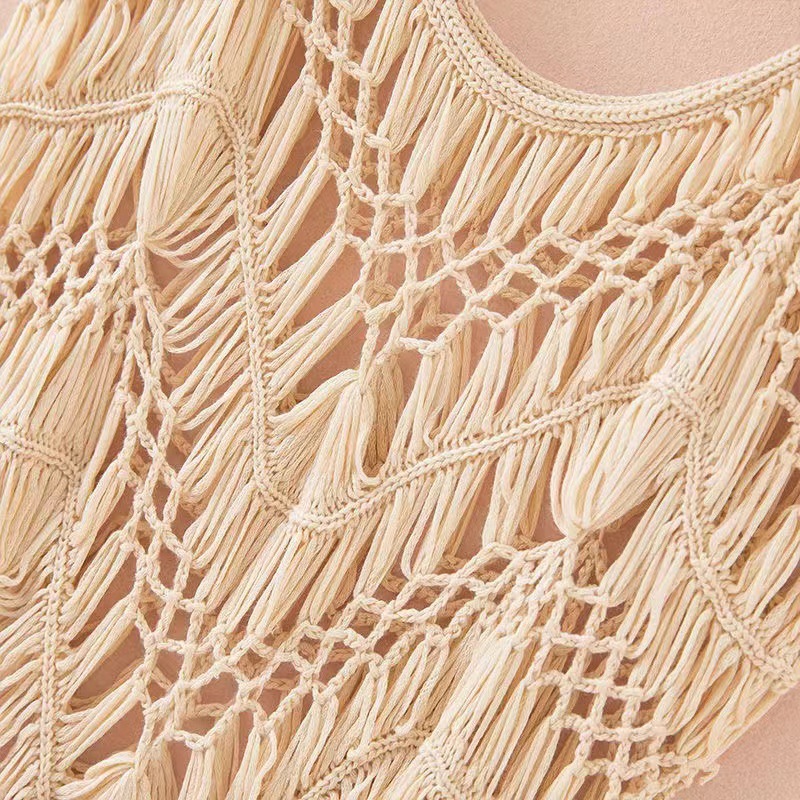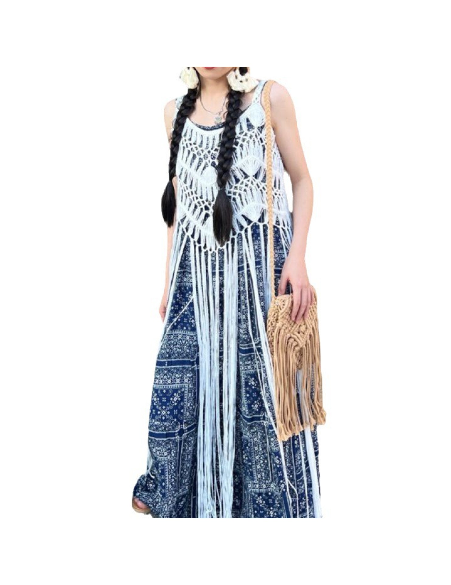 LWBC6326100020 復古民族風針織長流蘇罩衫吊帶外穿鏤空美背心夏季