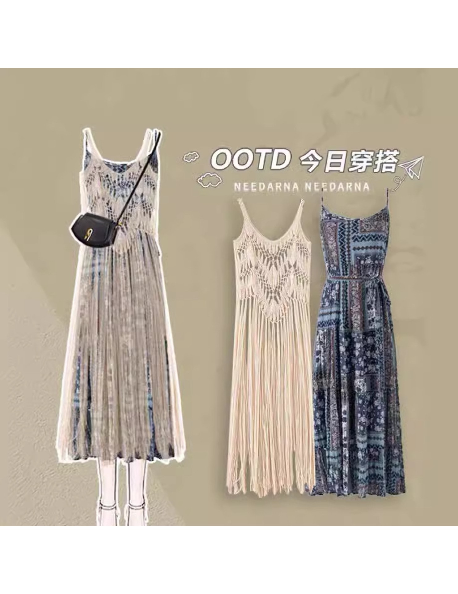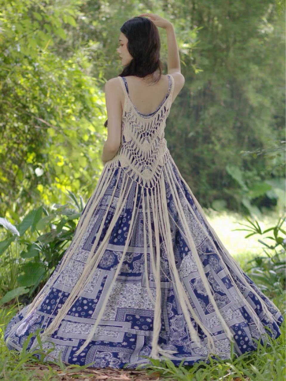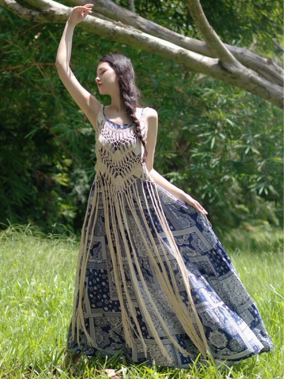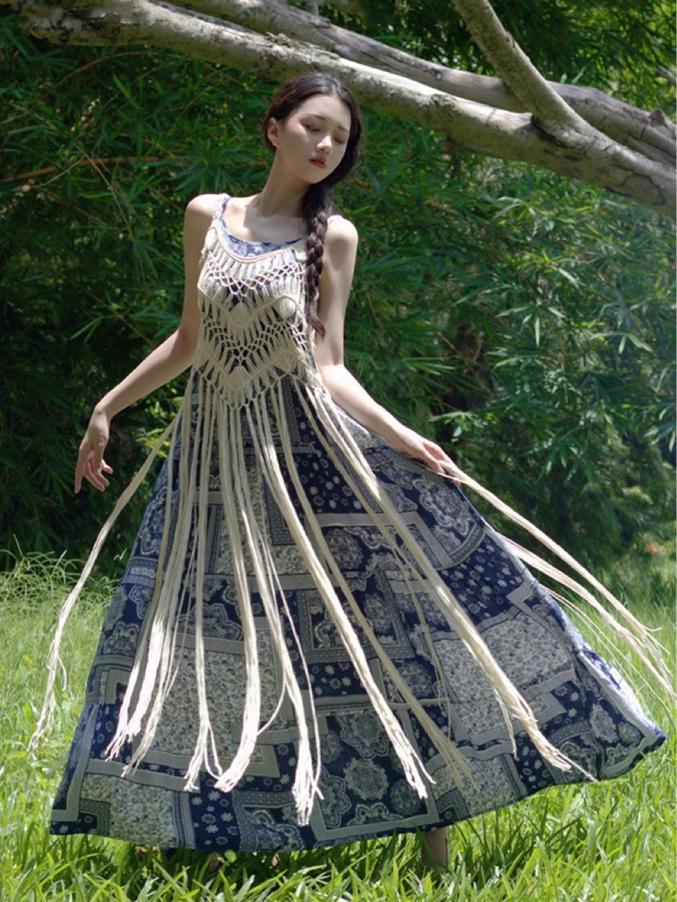 LWBC6326100020 復古民族風針織長流蘇罩衫吊帶外穿鏤空美背心夏季