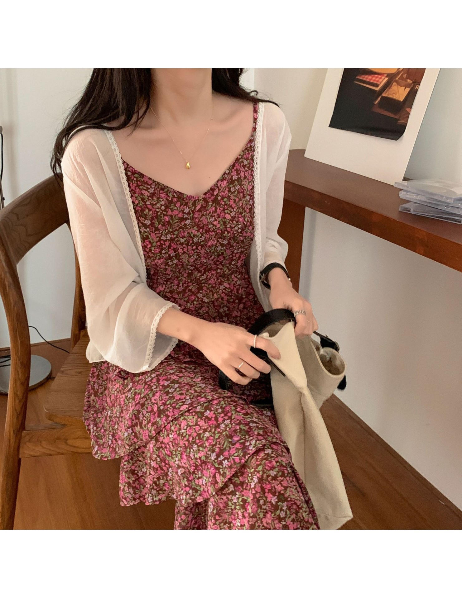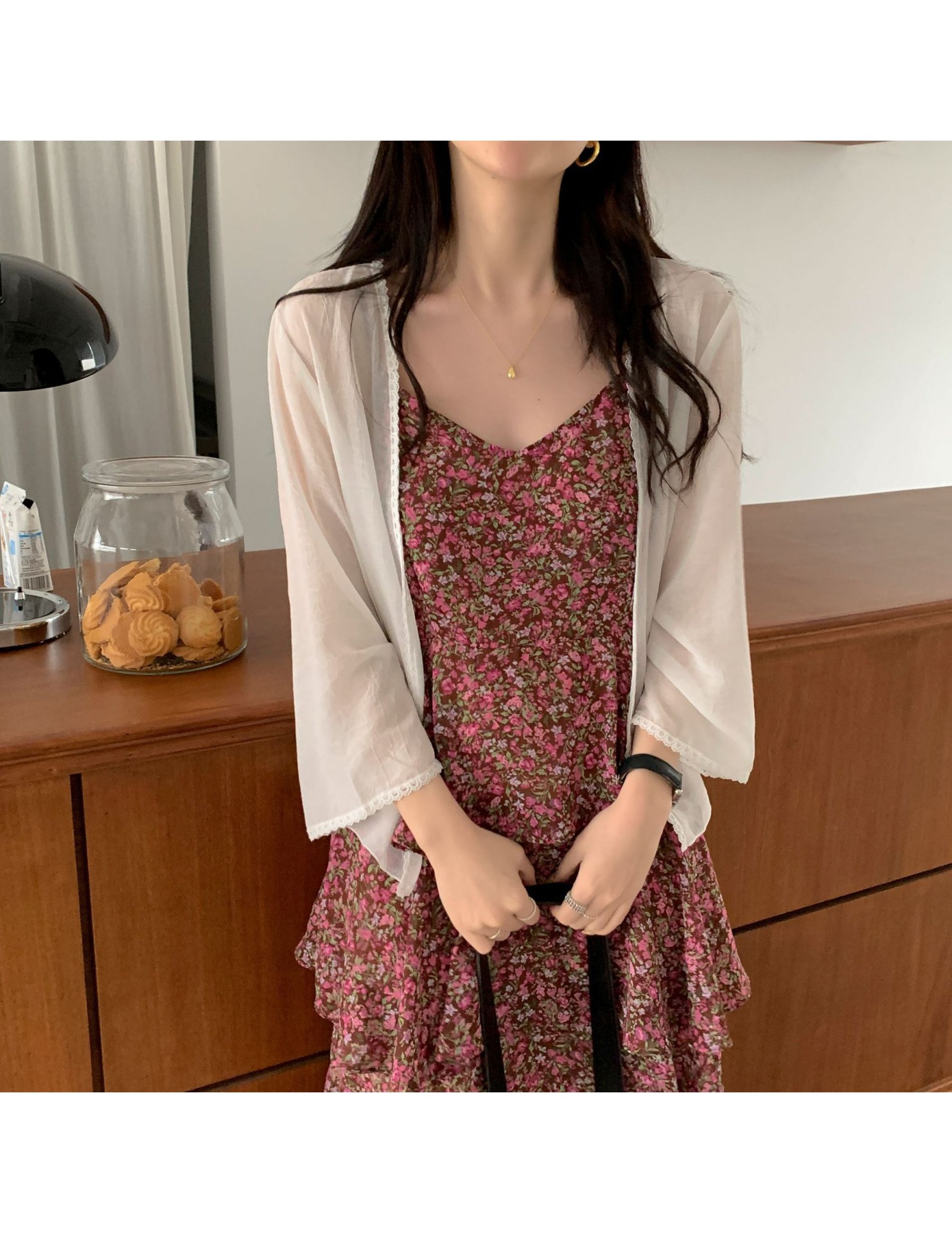 LWBC6326100029 新款防曬衣女小披肩配裙子薄款長袖外搭雪紡開衫上衣外套