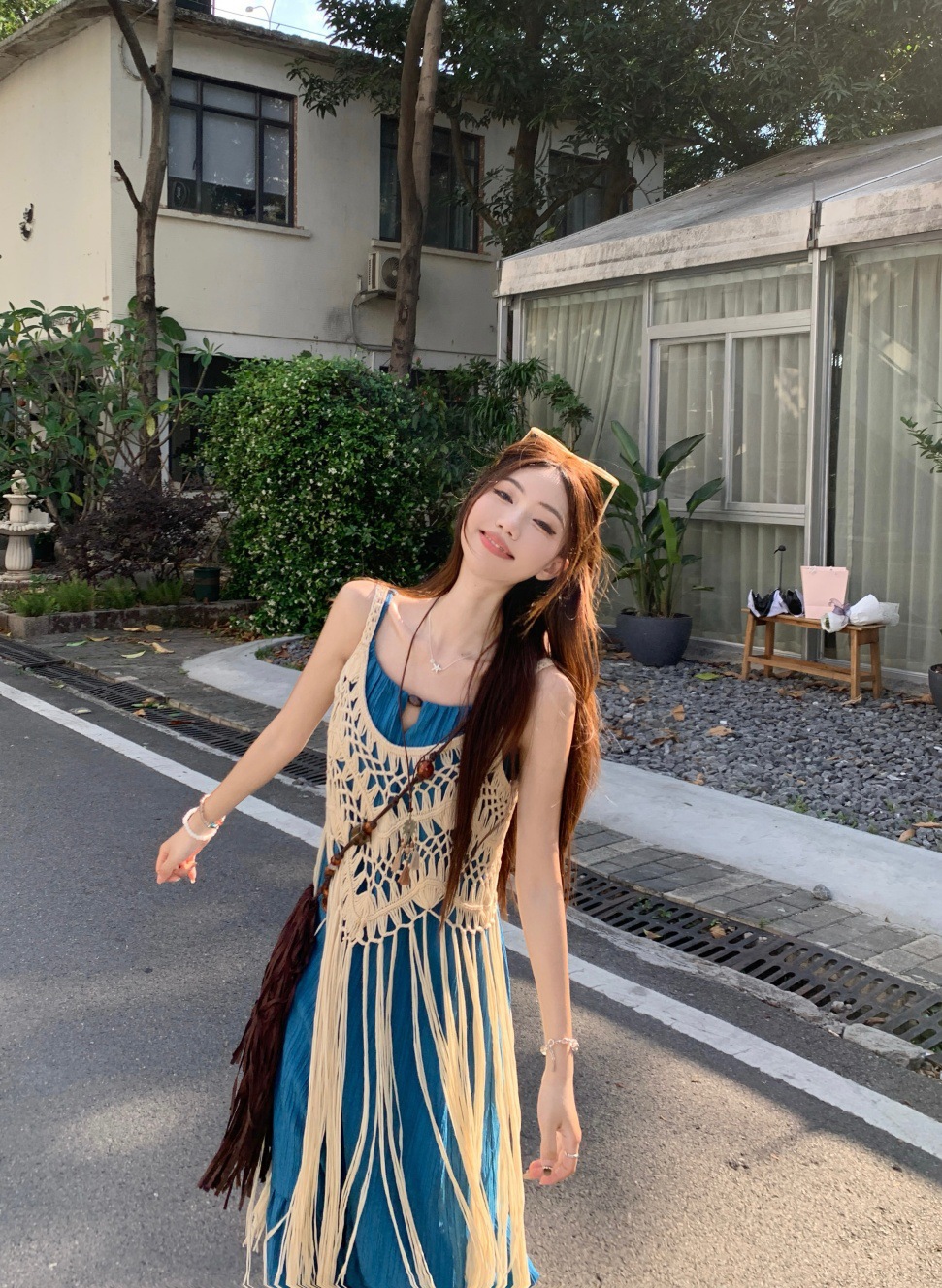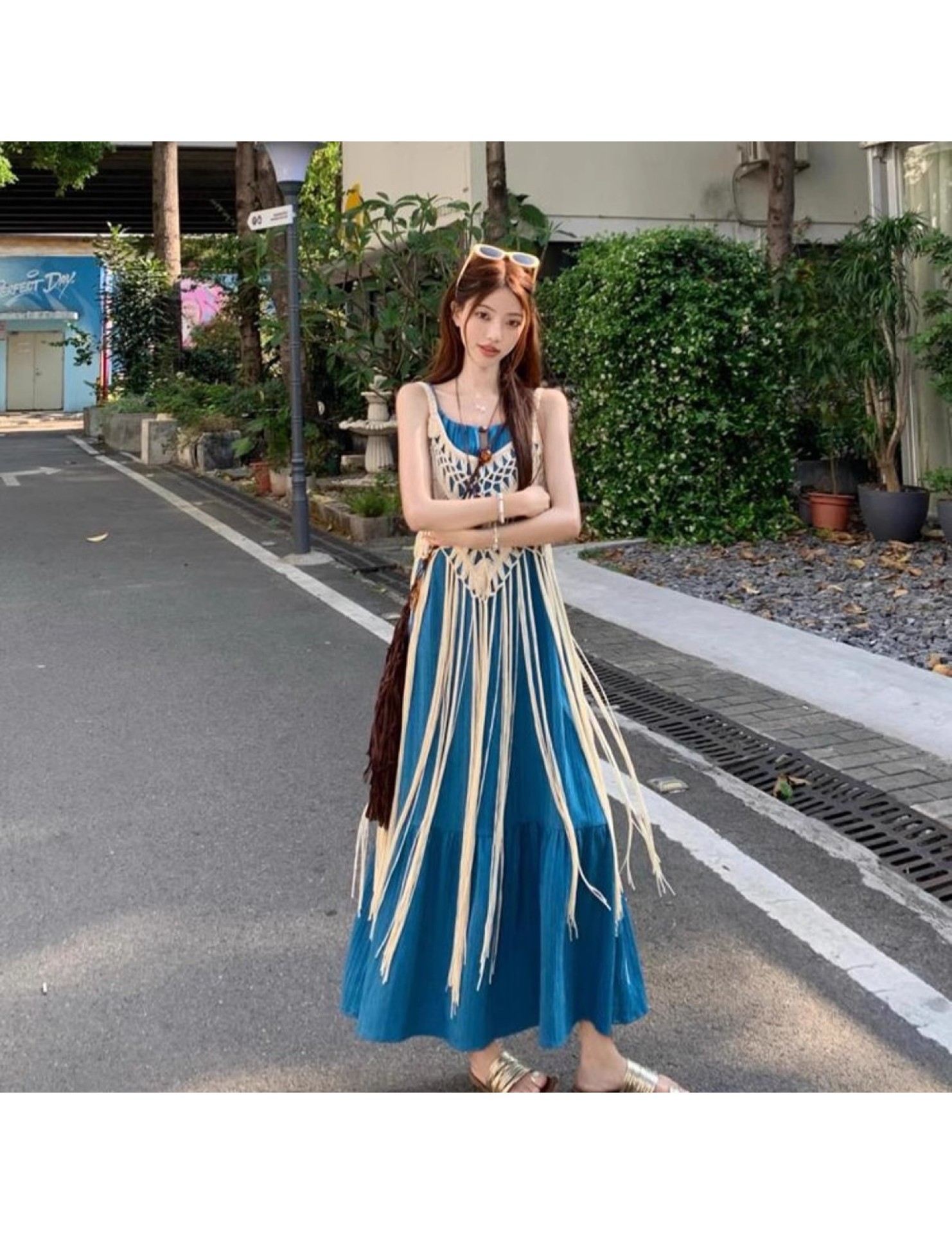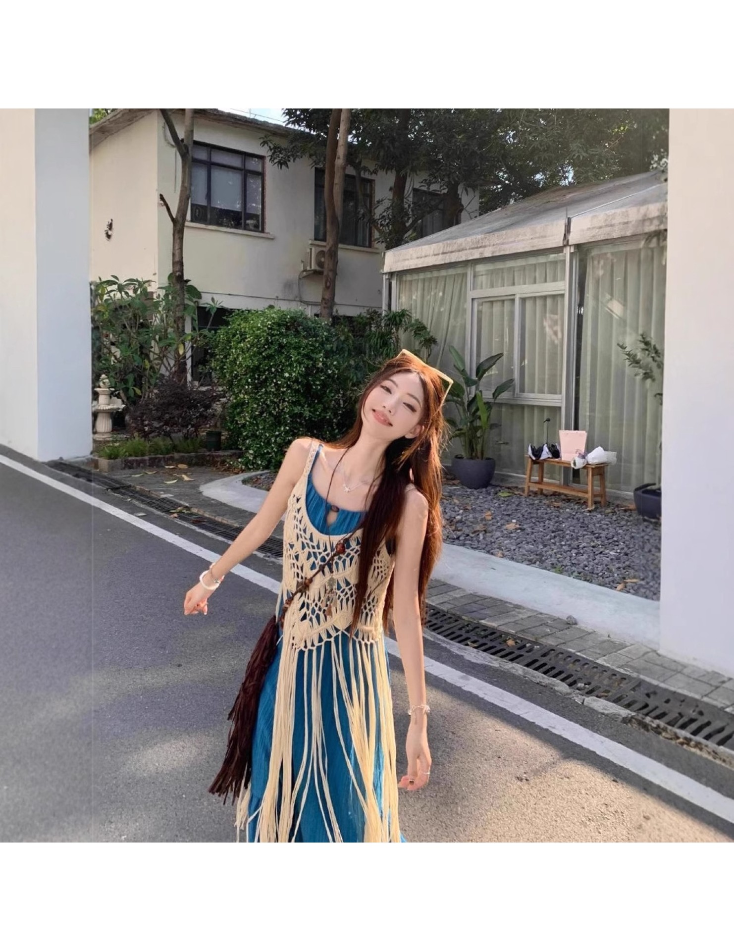 LWBC6326100035 度假風流蘇設計感疊穿鏤空罩衫女