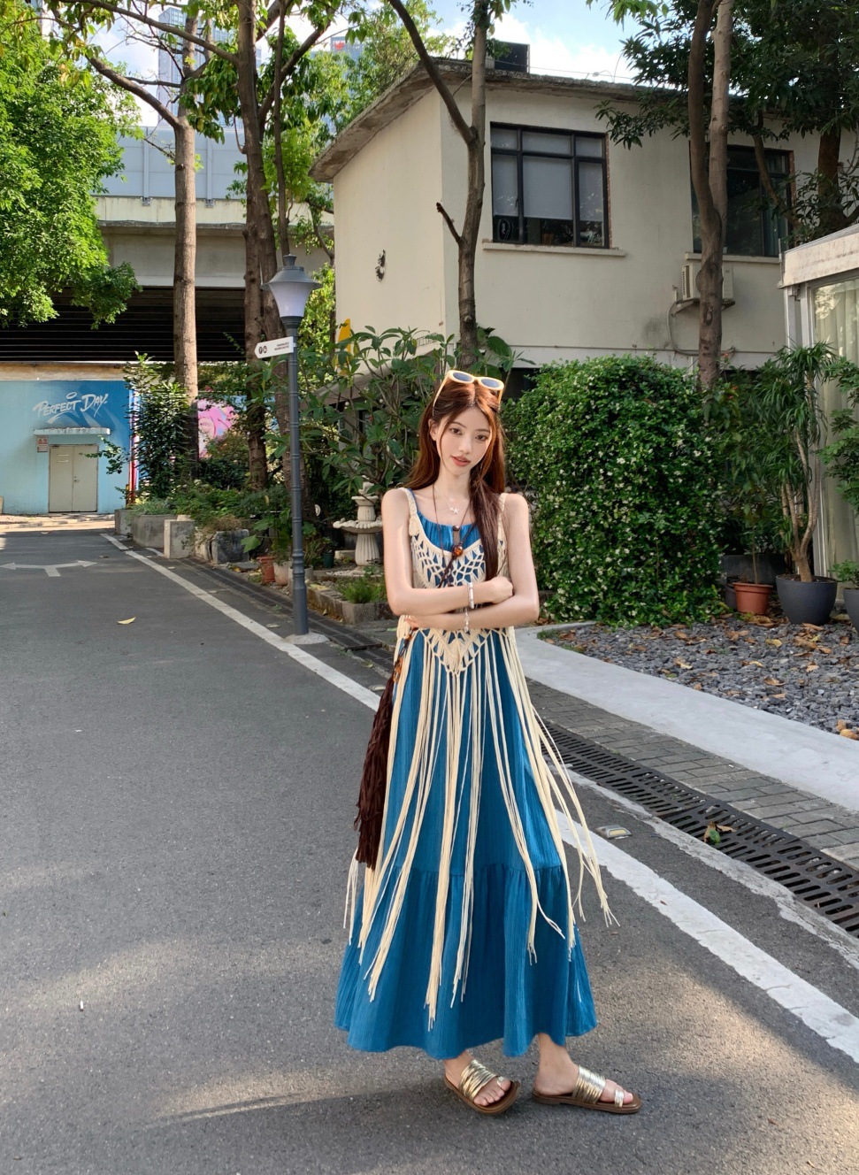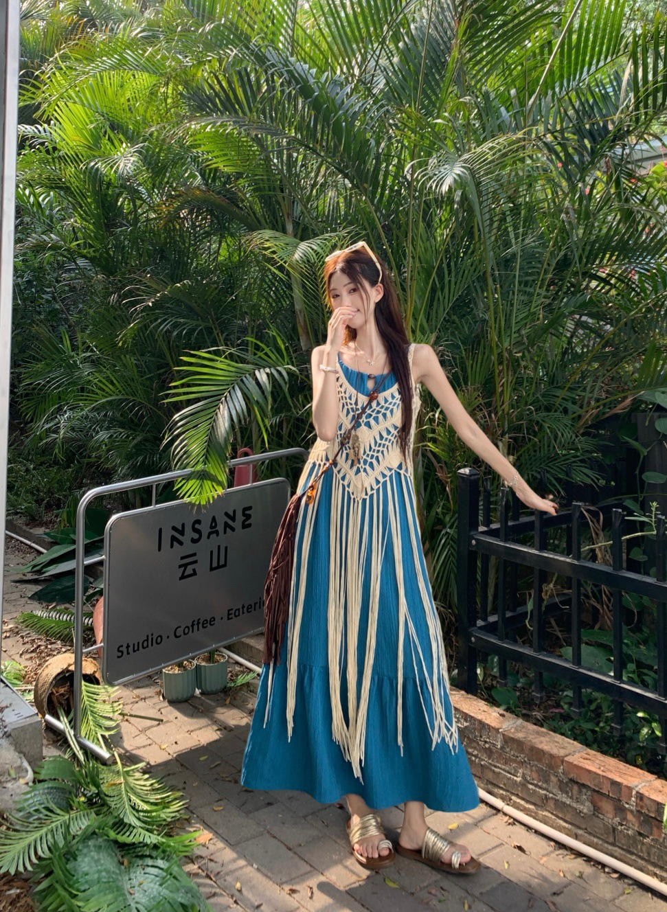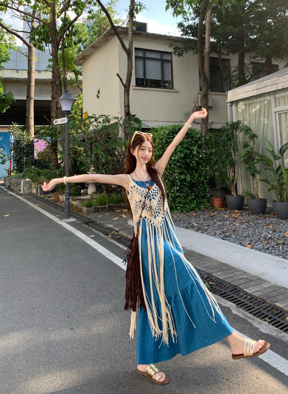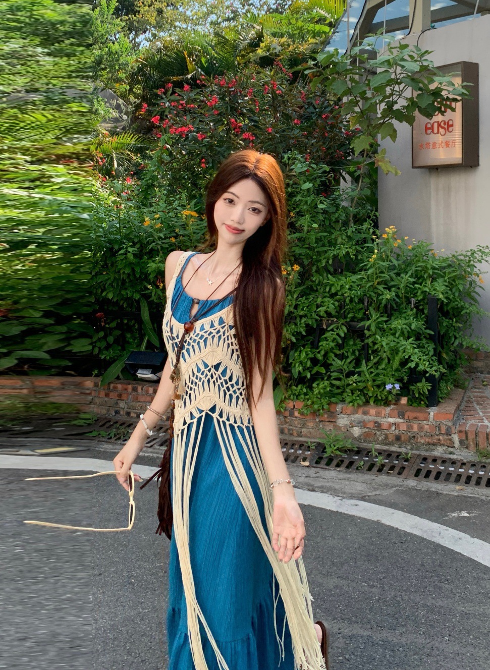 LWBC6326100035 度假風流蘇設計感疊穿鏤空罩衫女