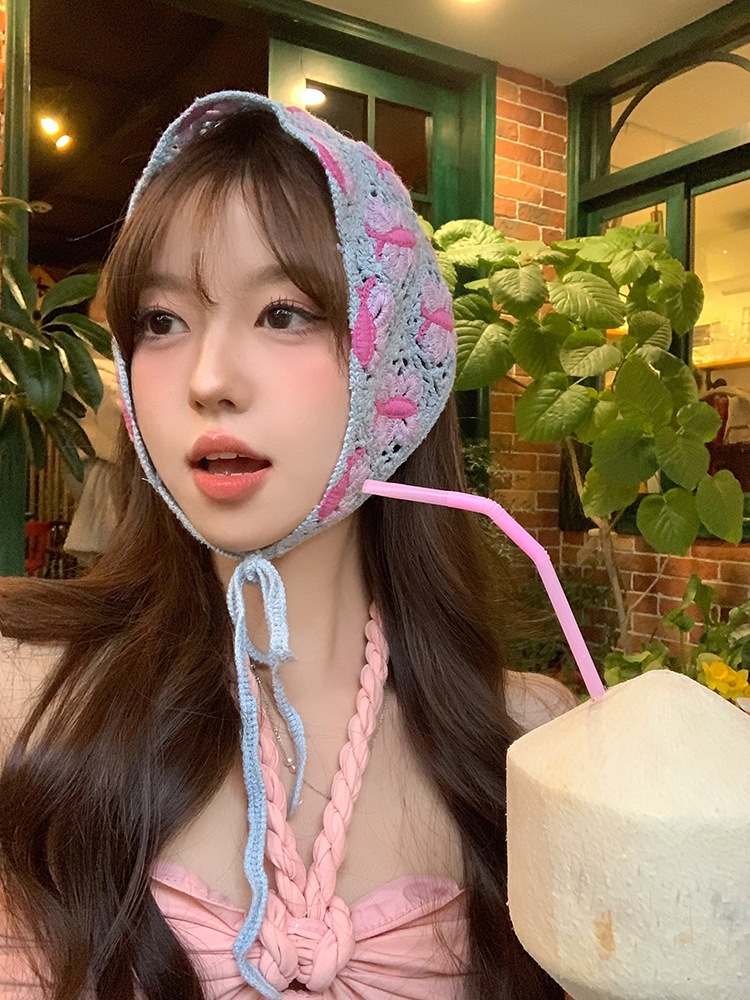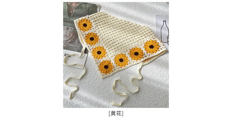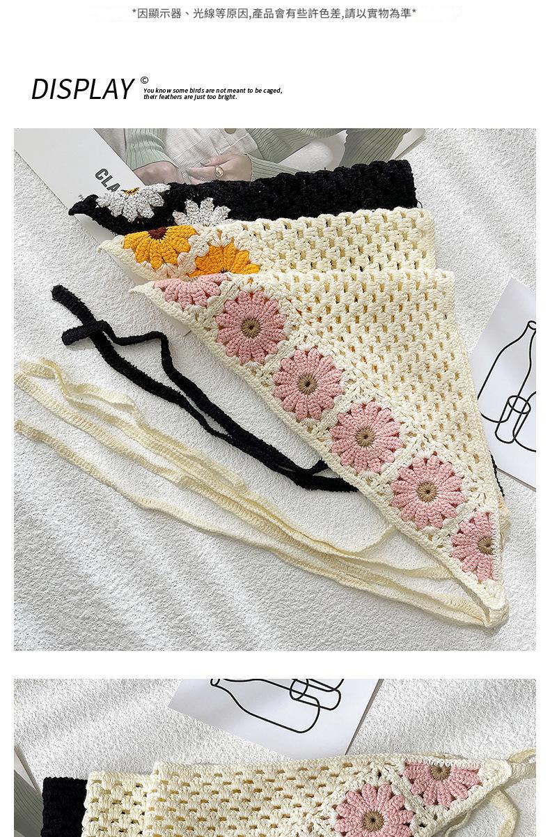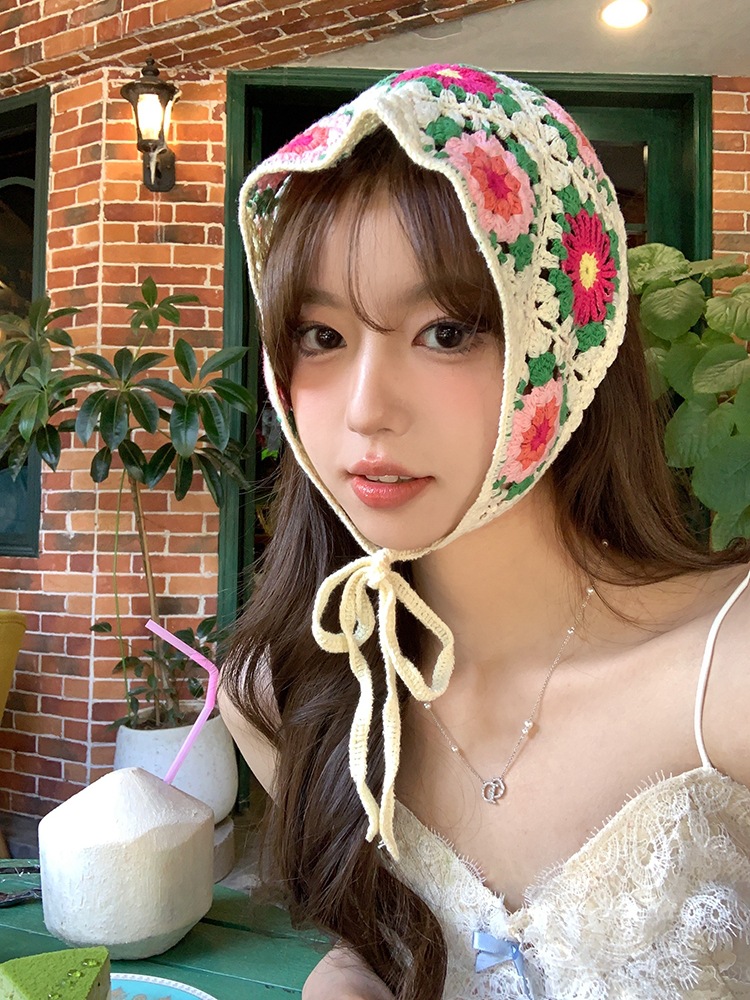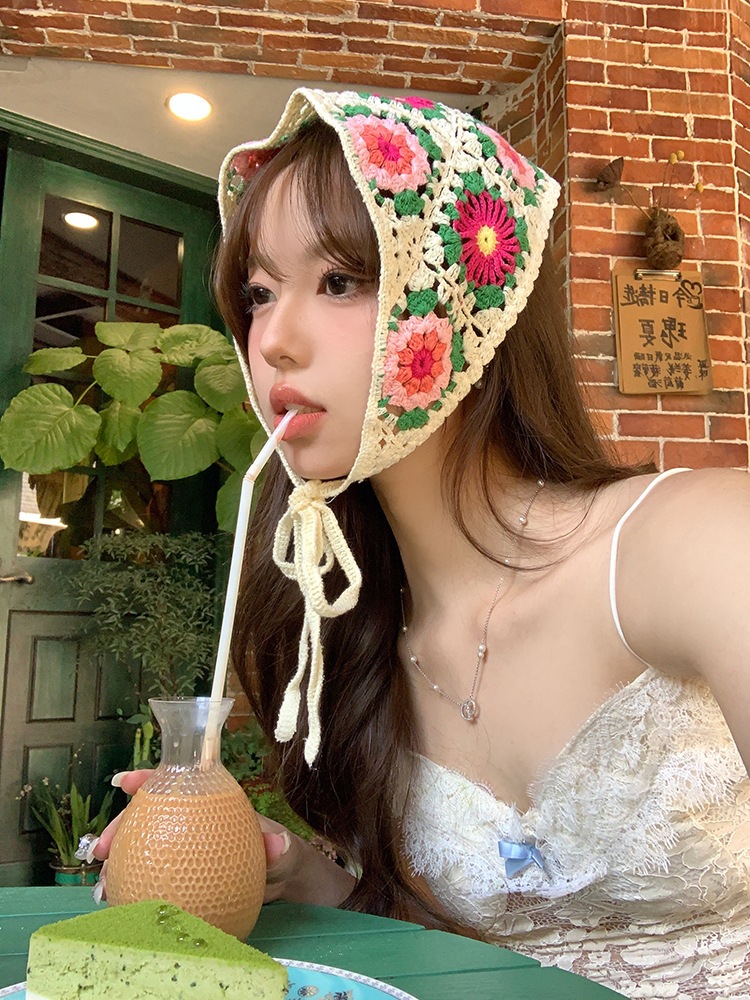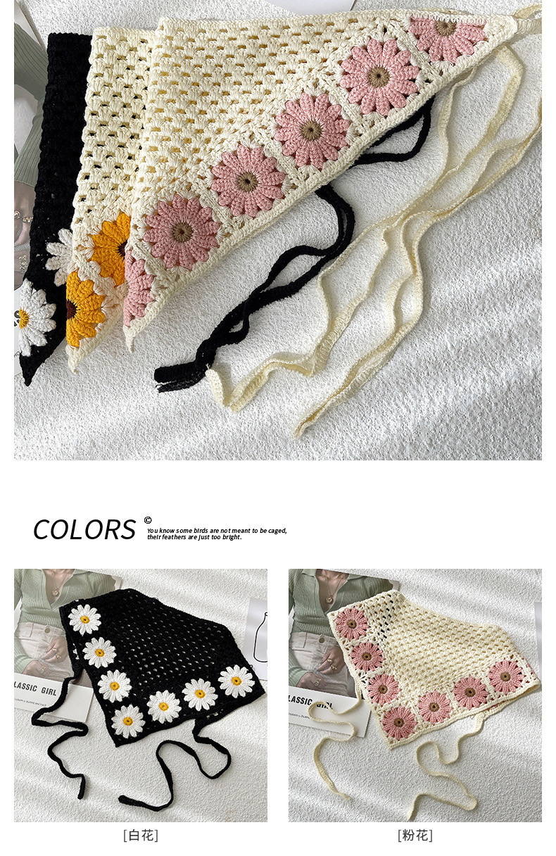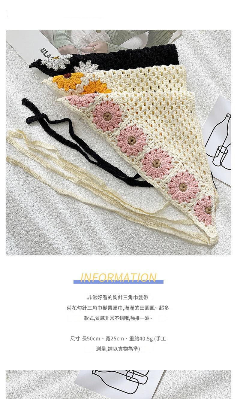 LWBC6326100081 春游花朵三角巾ins復古法式針織方巾包頭巾手工勾花甜美發帶頭帶