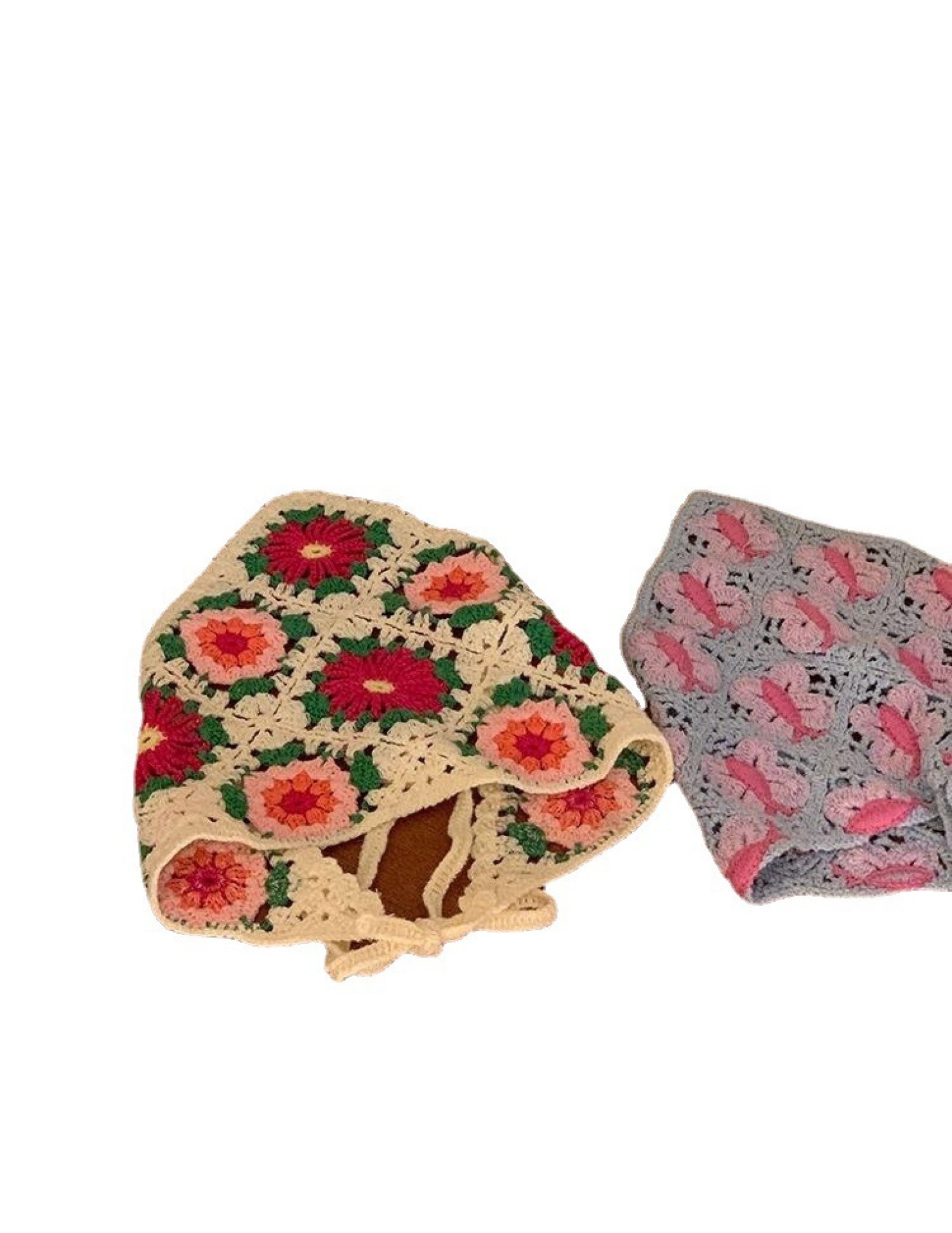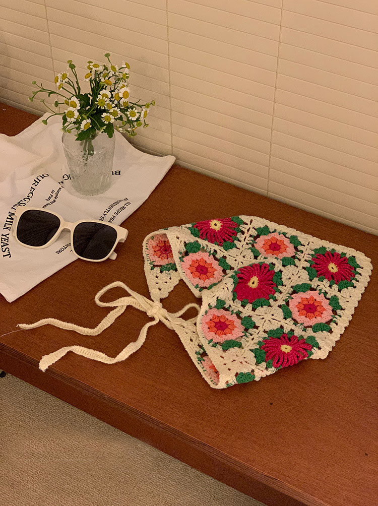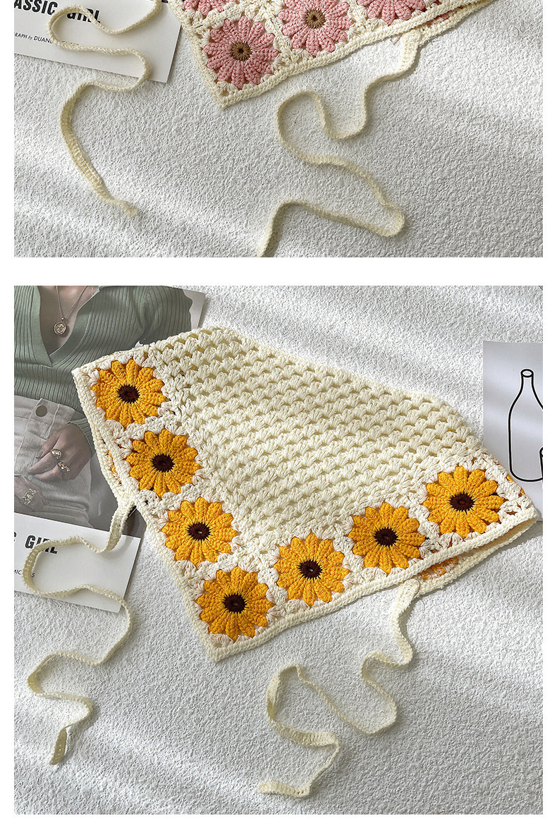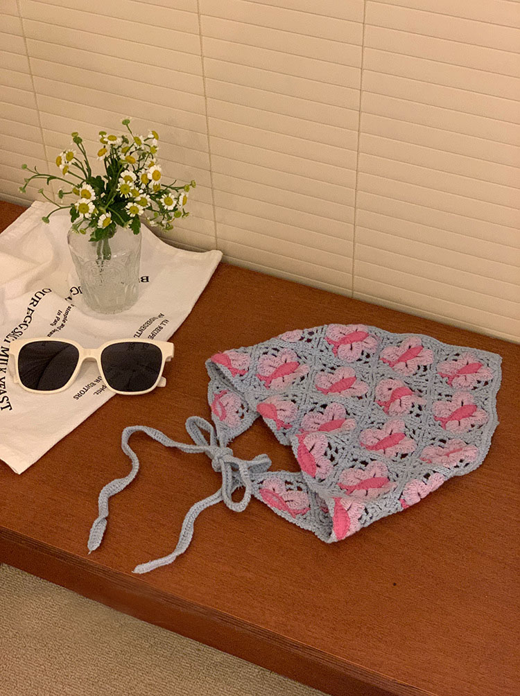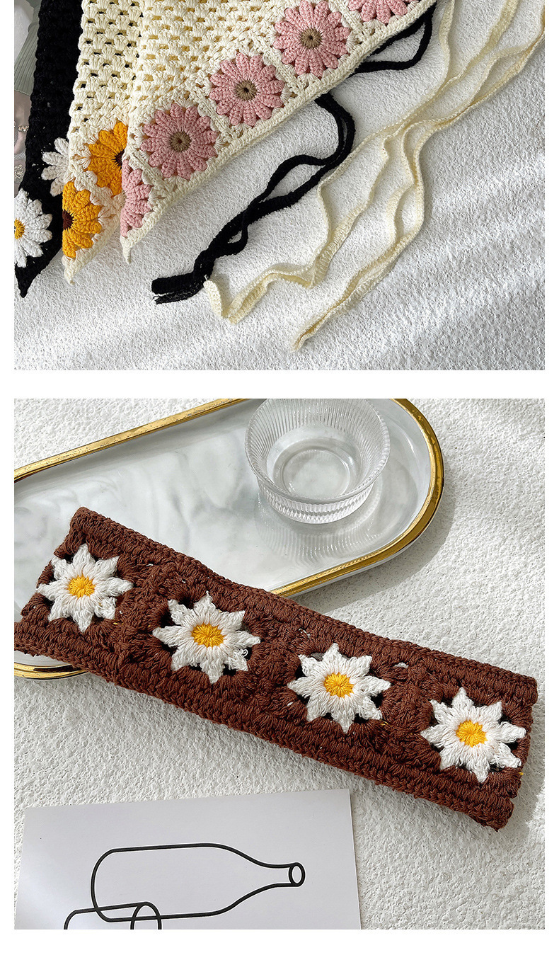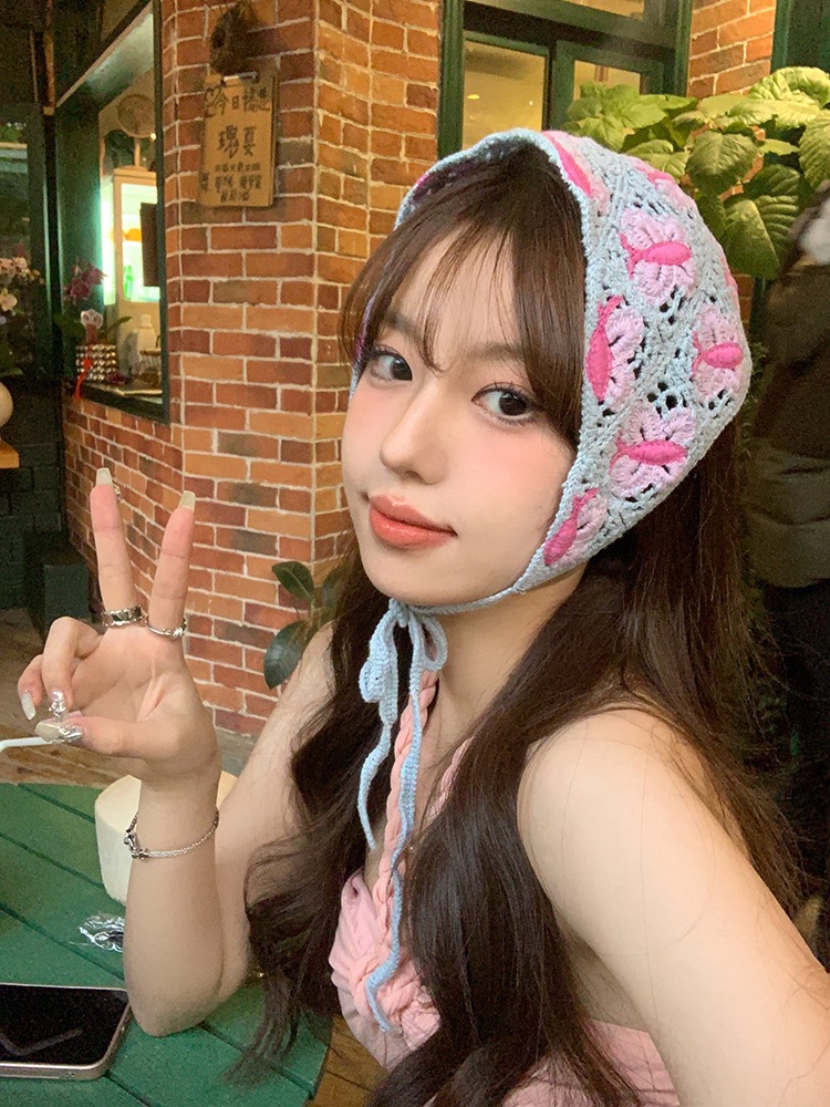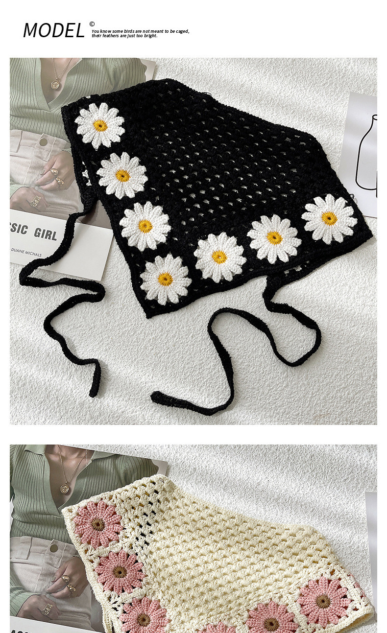 LWBC6326100081 春游花朵三角巾ins復古法式針織方巾包頭巾手工勾花甜美發帶頭帶
