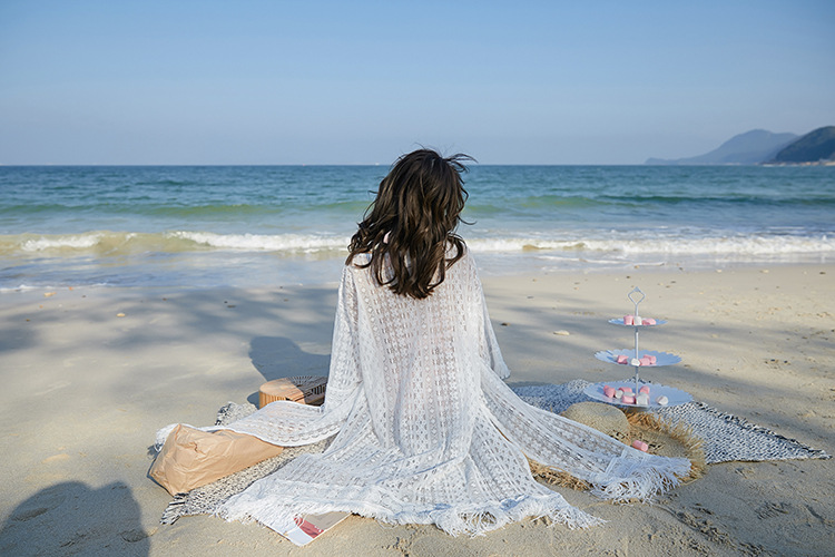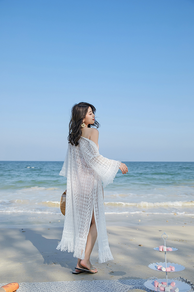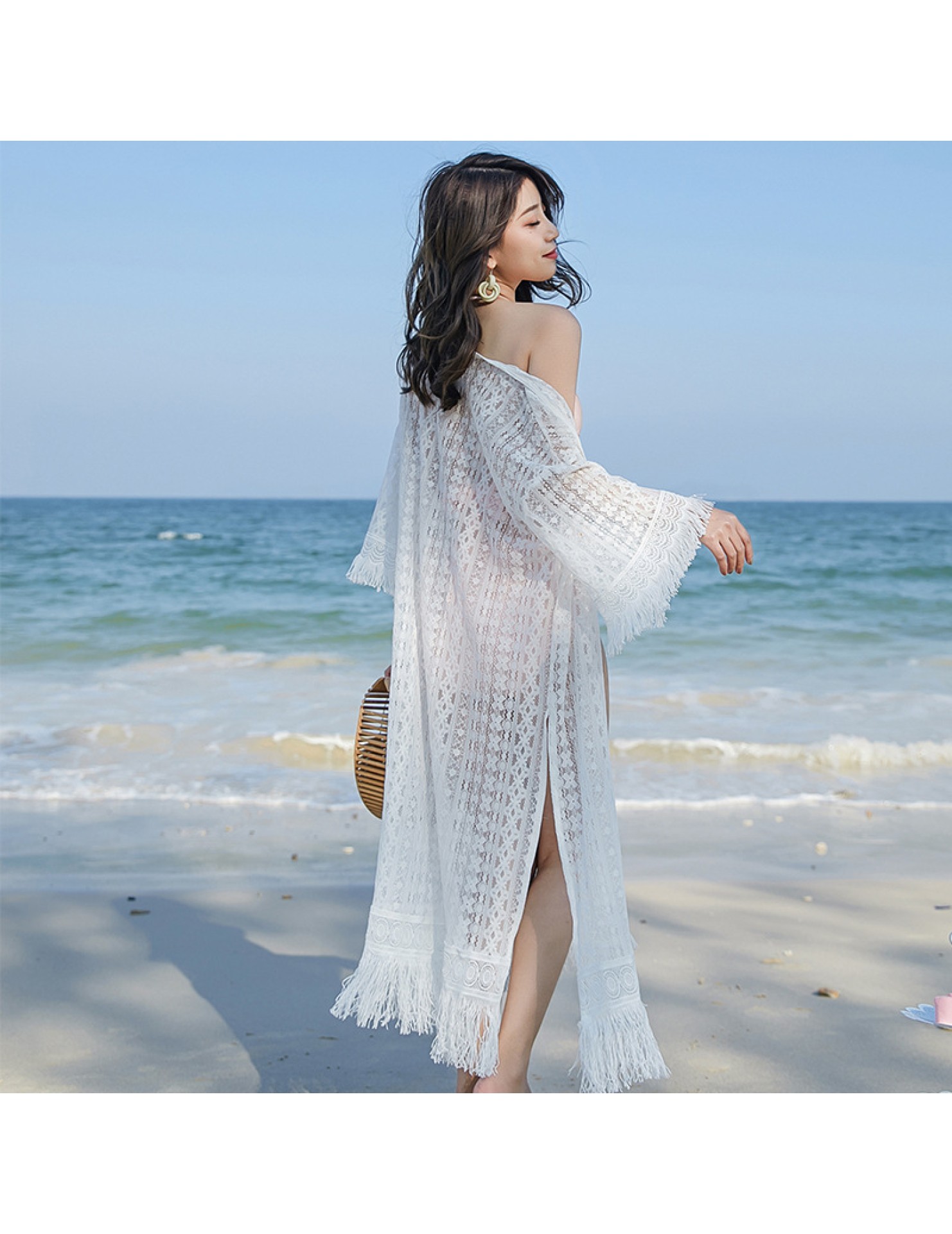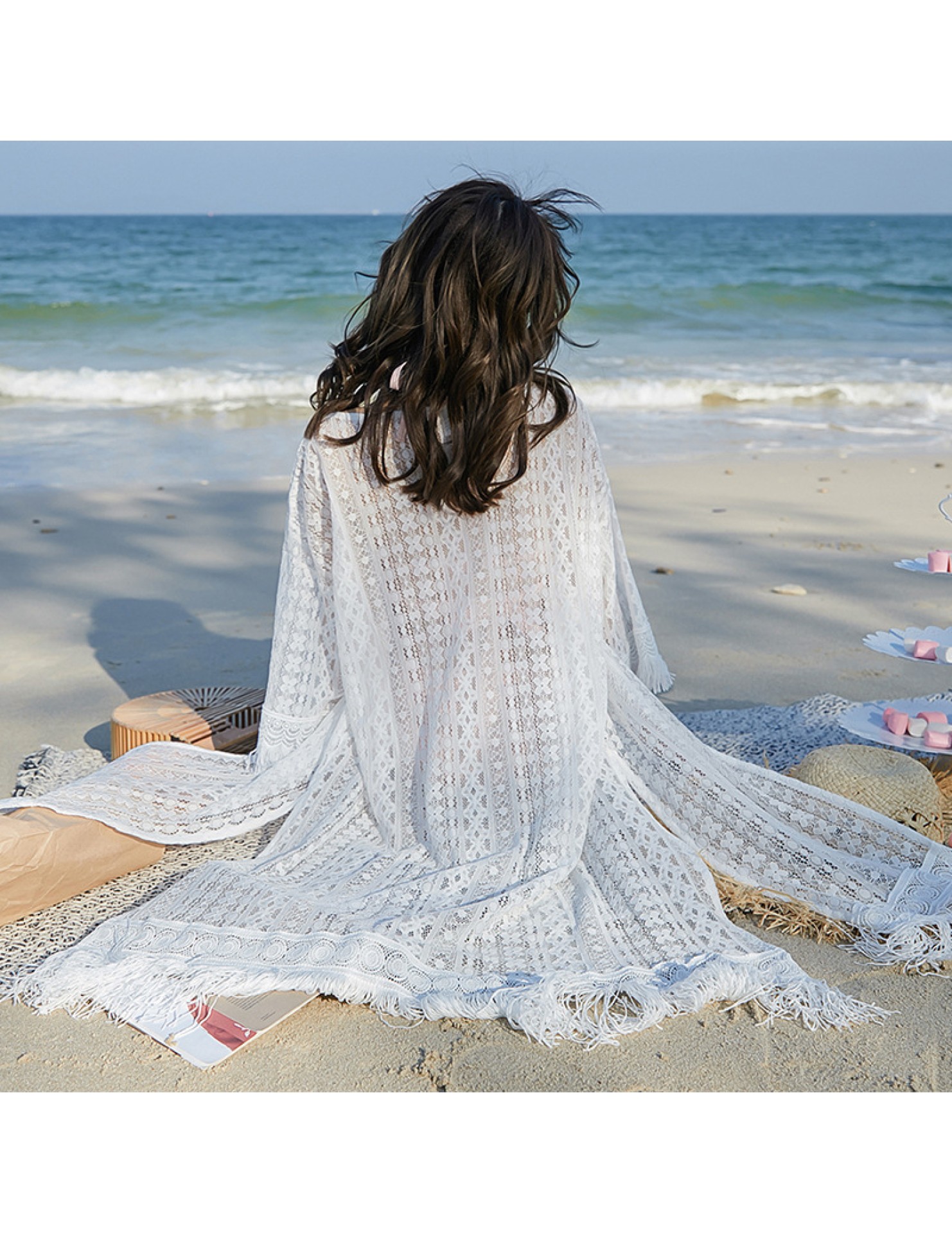 LWBC6326100044 鏤空蕾絲流蘇開衫女中長款披肩外搭夏裝薄外套海邊度假沙灘防曬衣