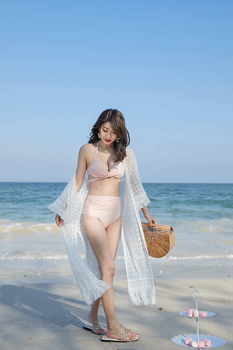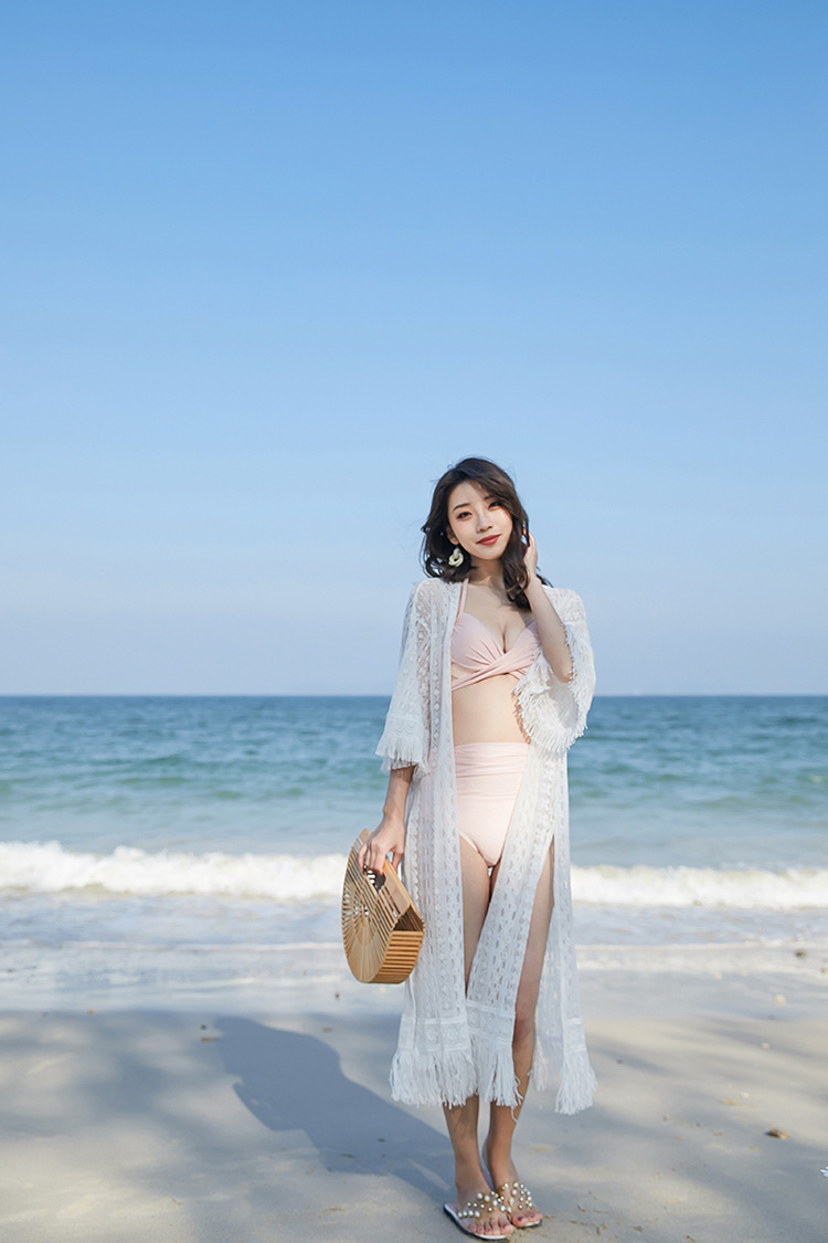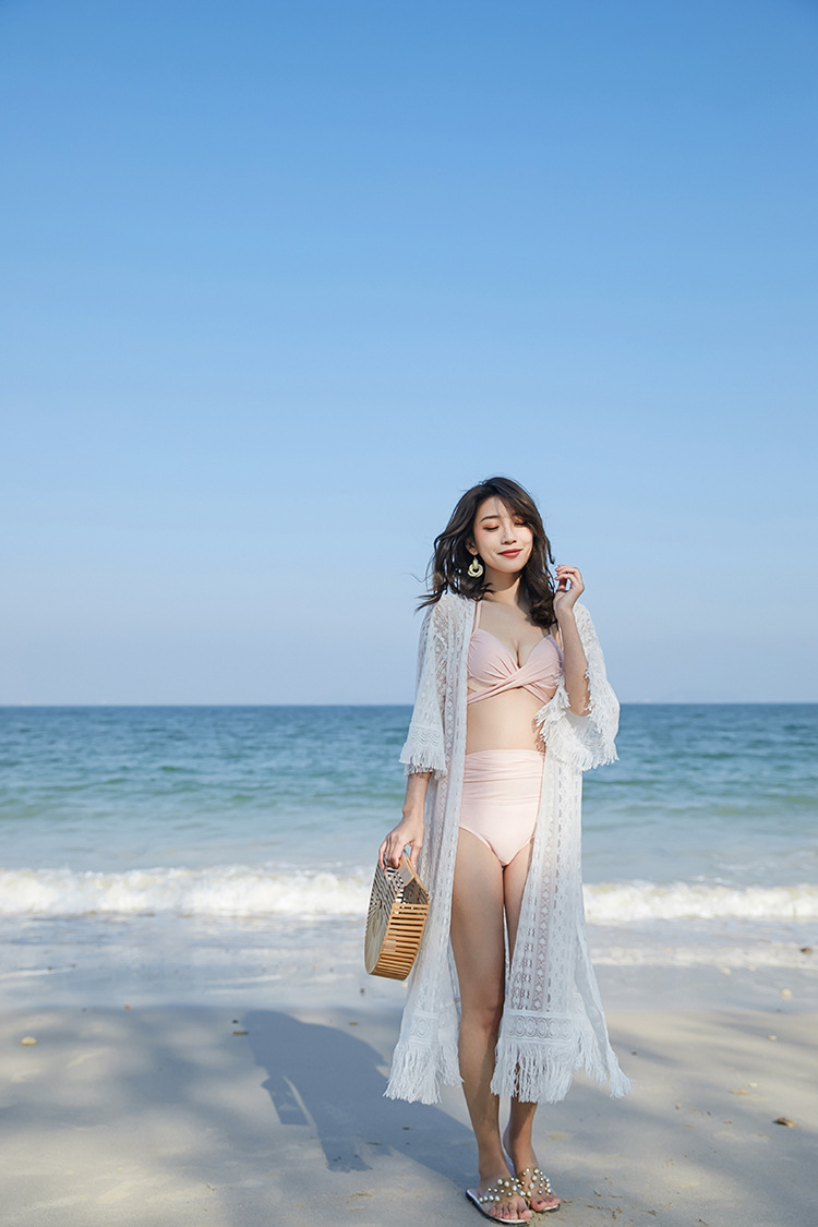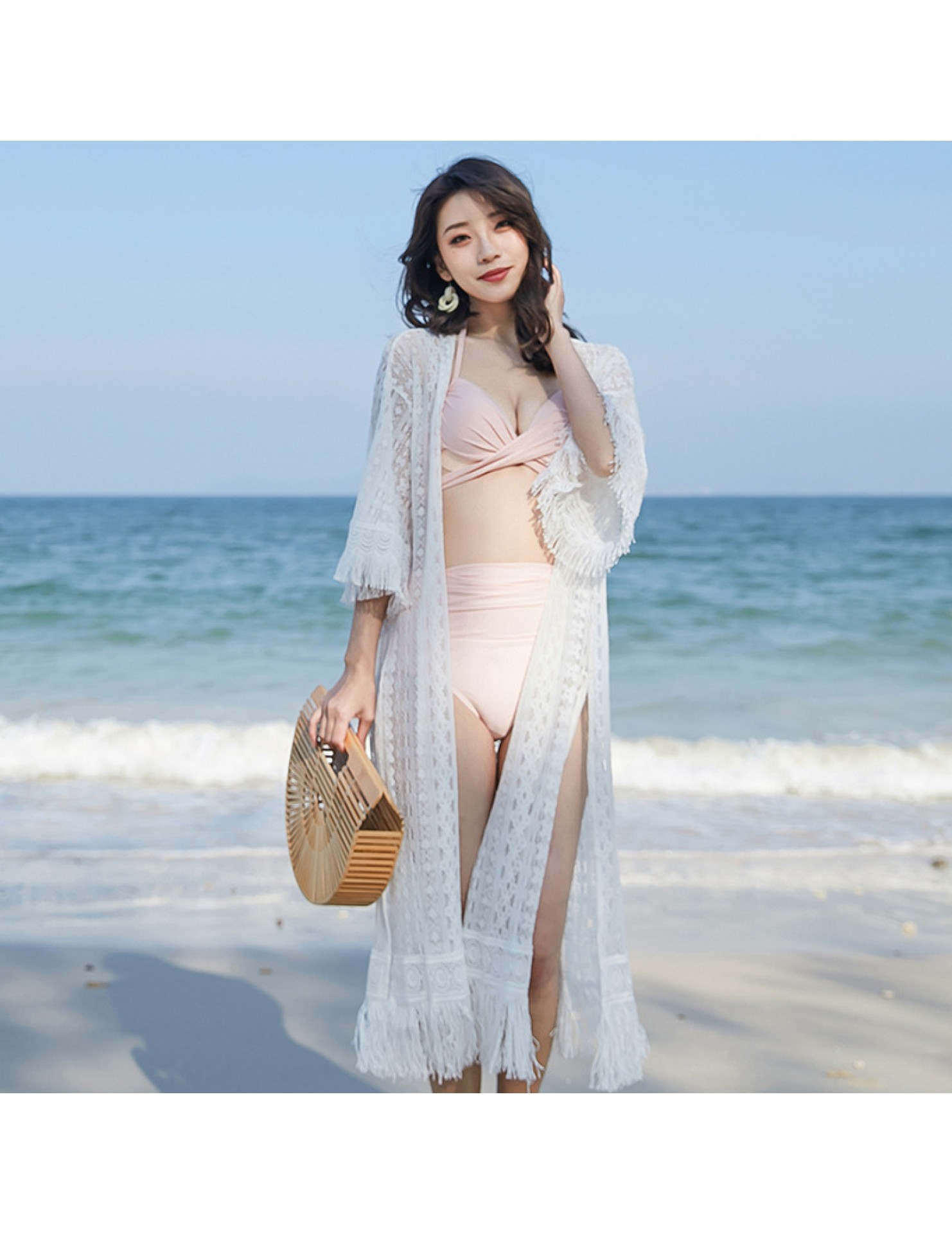 LWBC6326100044 鏤空蕾絲流蘇開衫女中長款披肩外搭夏裝薄外套海邊度假沙灘防曬衣