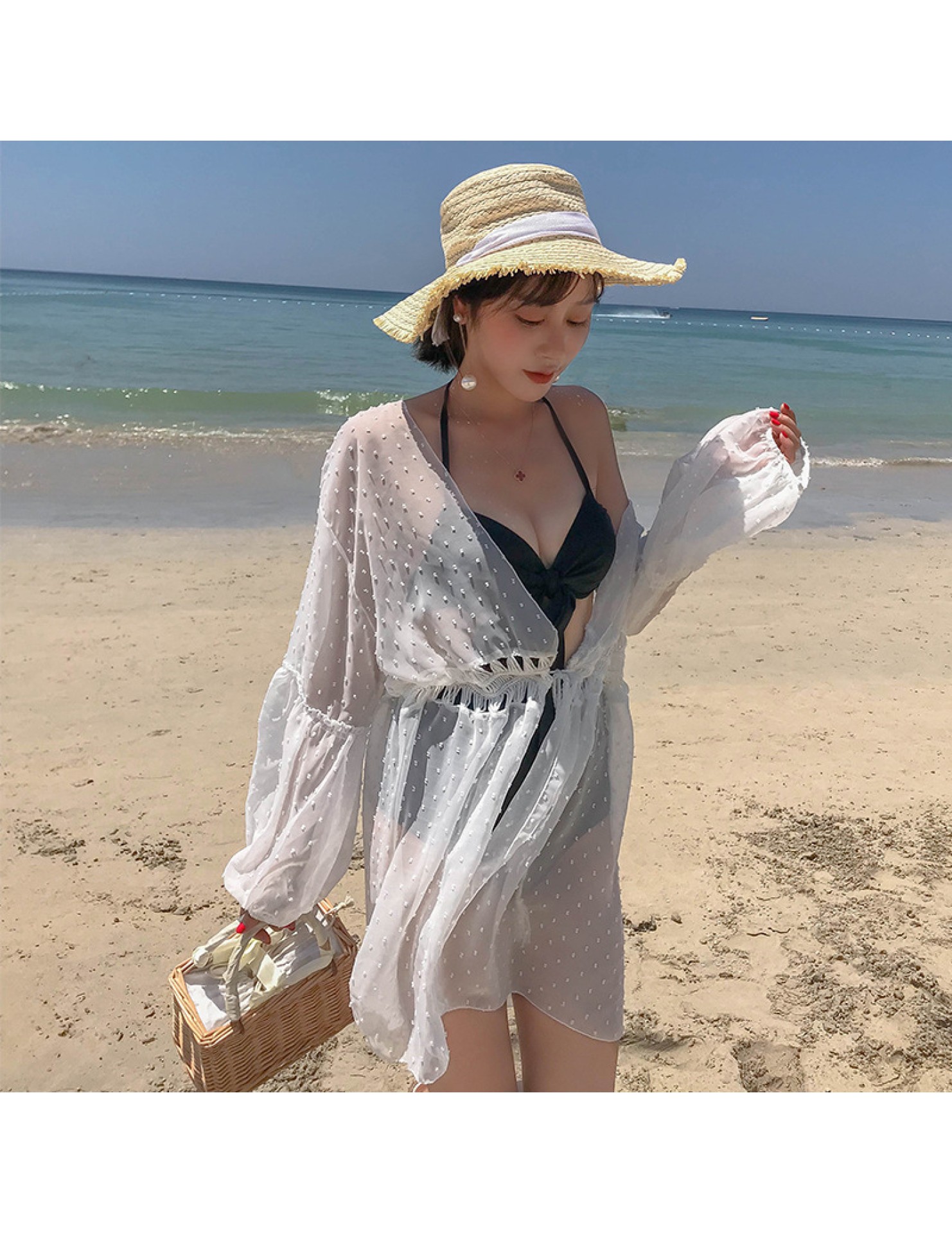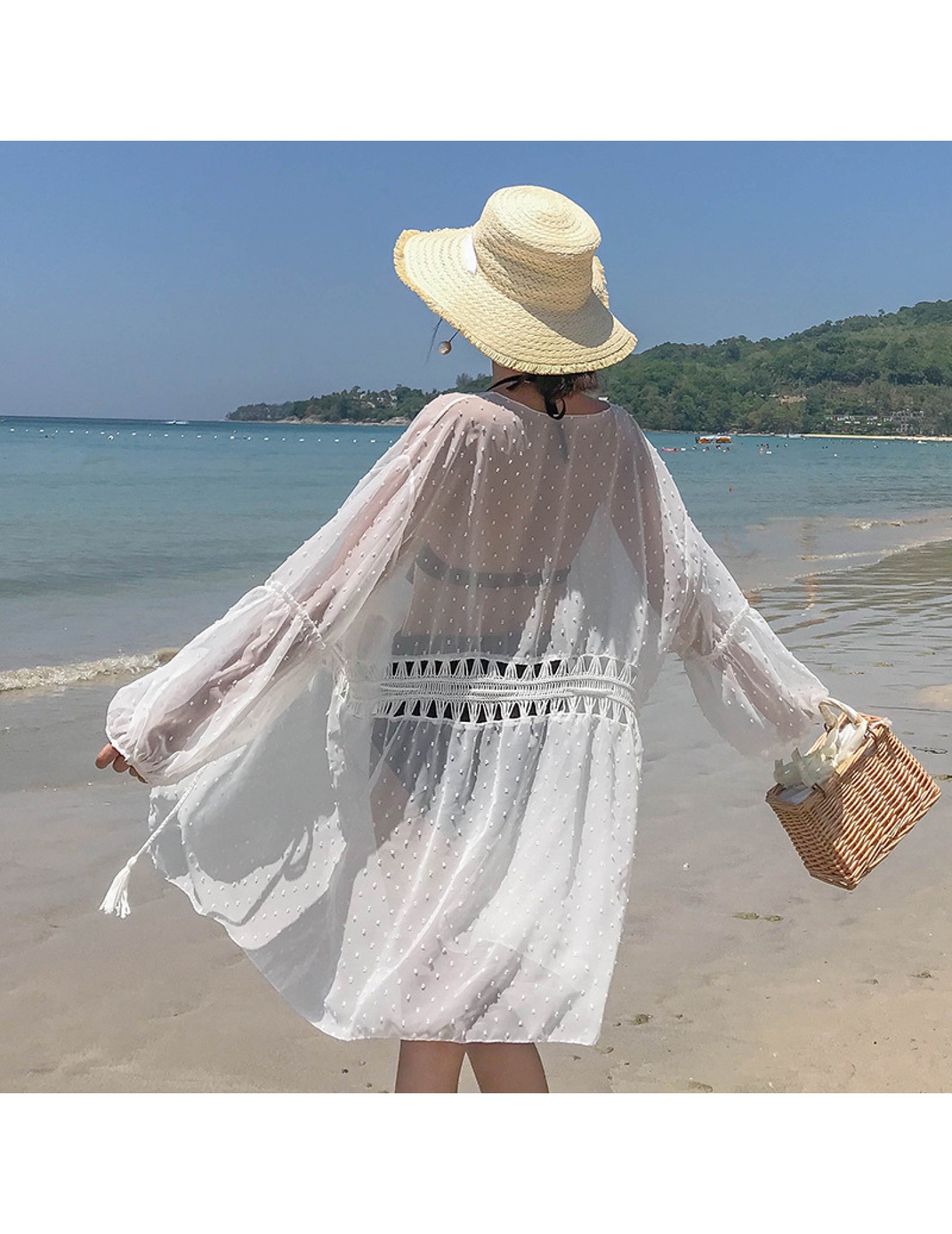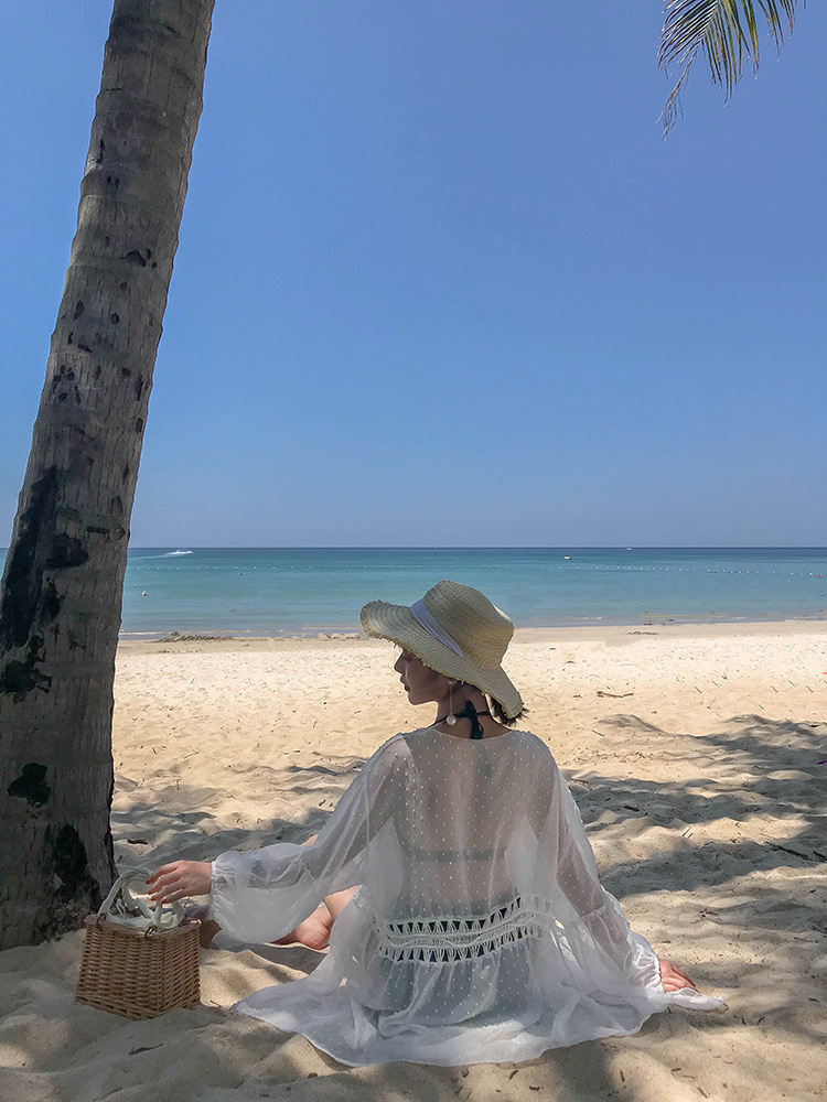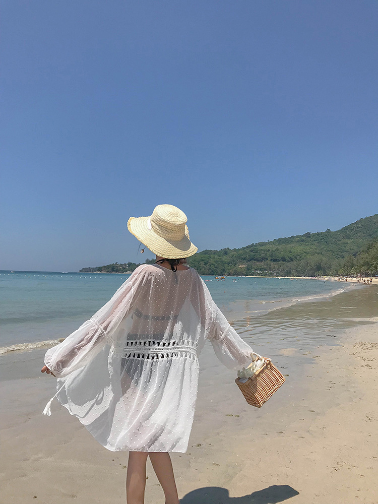 LWBC6326100045 海邊度假雪紡防曬衫女中長款開衫超仙外搭罩衫沙灘仙女防曬衣外套