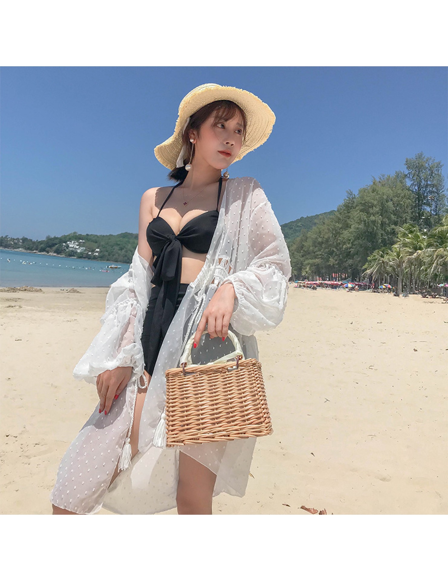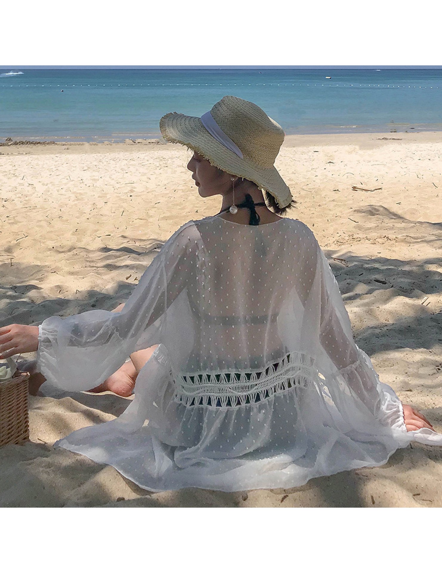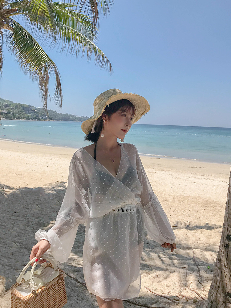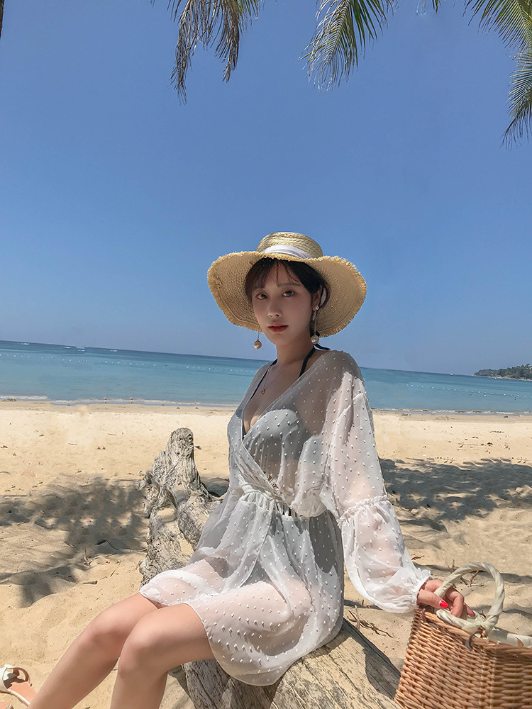LWBC6326100045 海邊度假雪紡防曬衫女中長款開衫超仙外搭罩衫沙灘仙女防曬衣外套