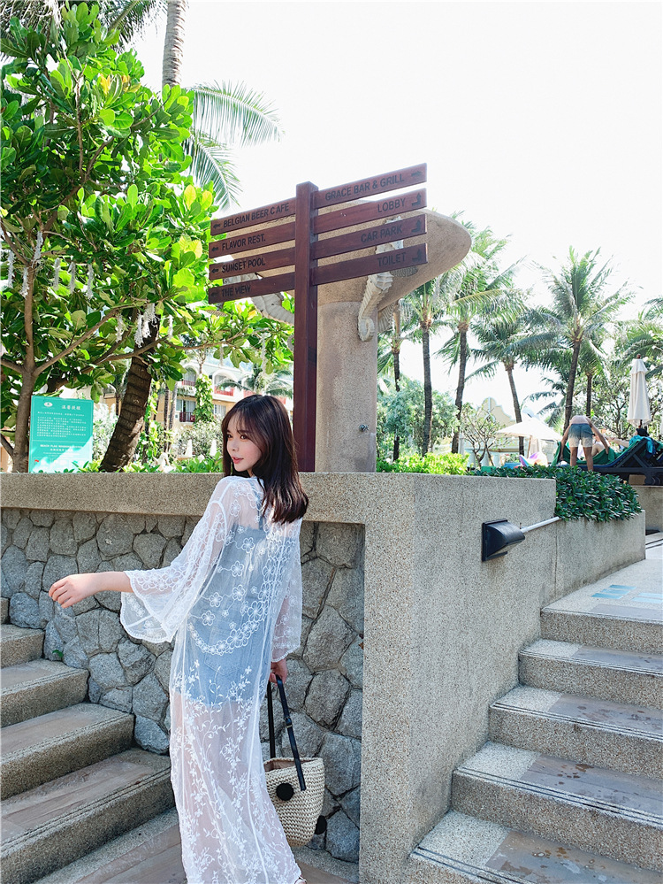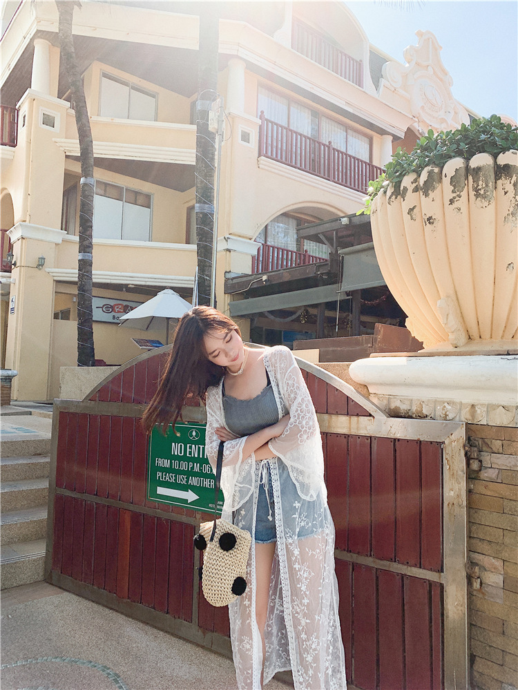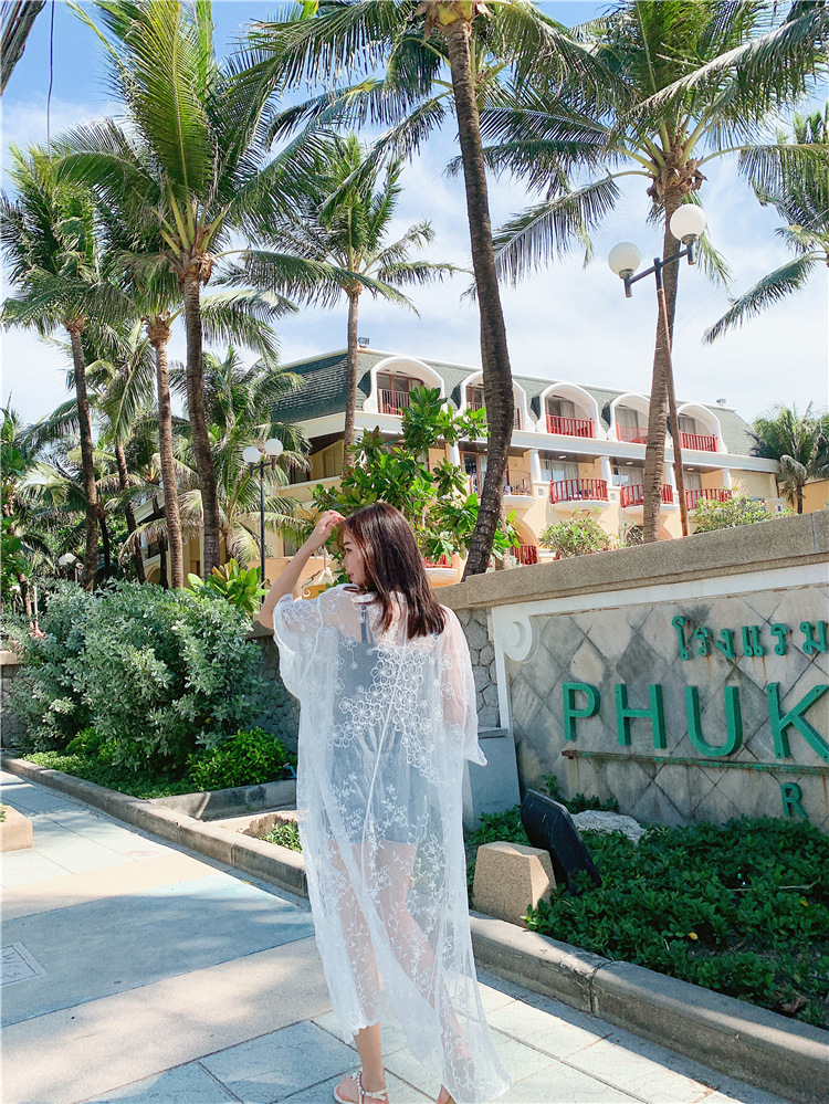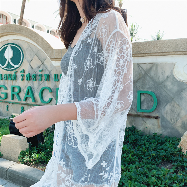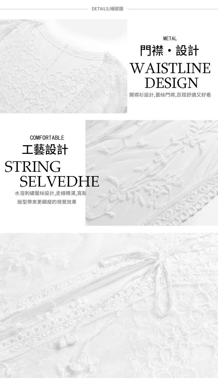 LWBC6326100057 蕾絲網紗刺繡透視輕盈長款闊袖防曬衣蕾絲衫開衫