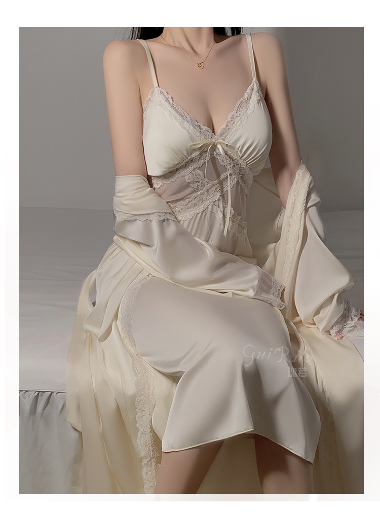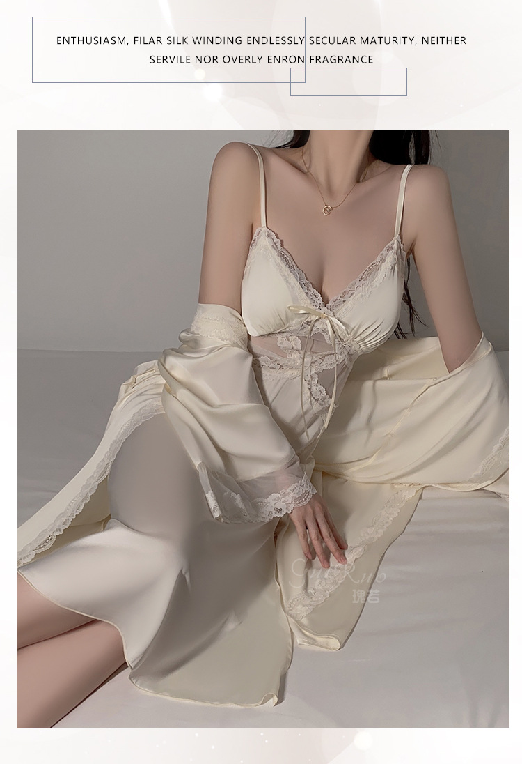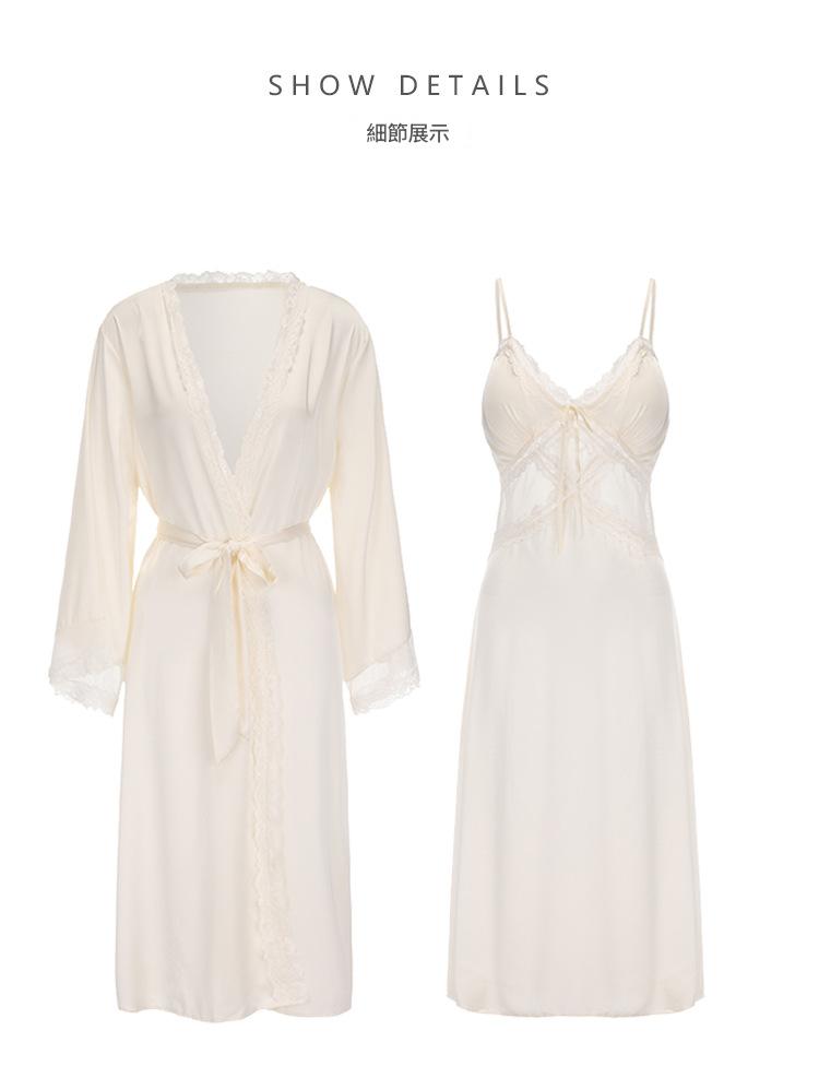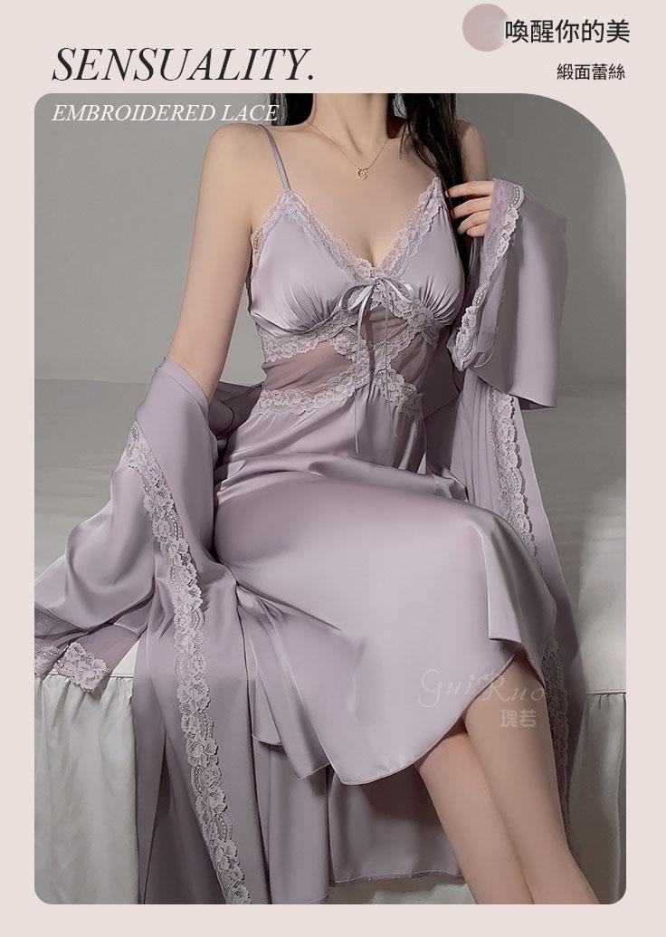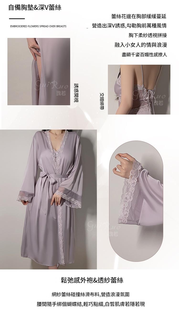 LPLT6319100113 網紗睡衣深V加胸墊吊帶睡裙絲滑外袍家居服套裝