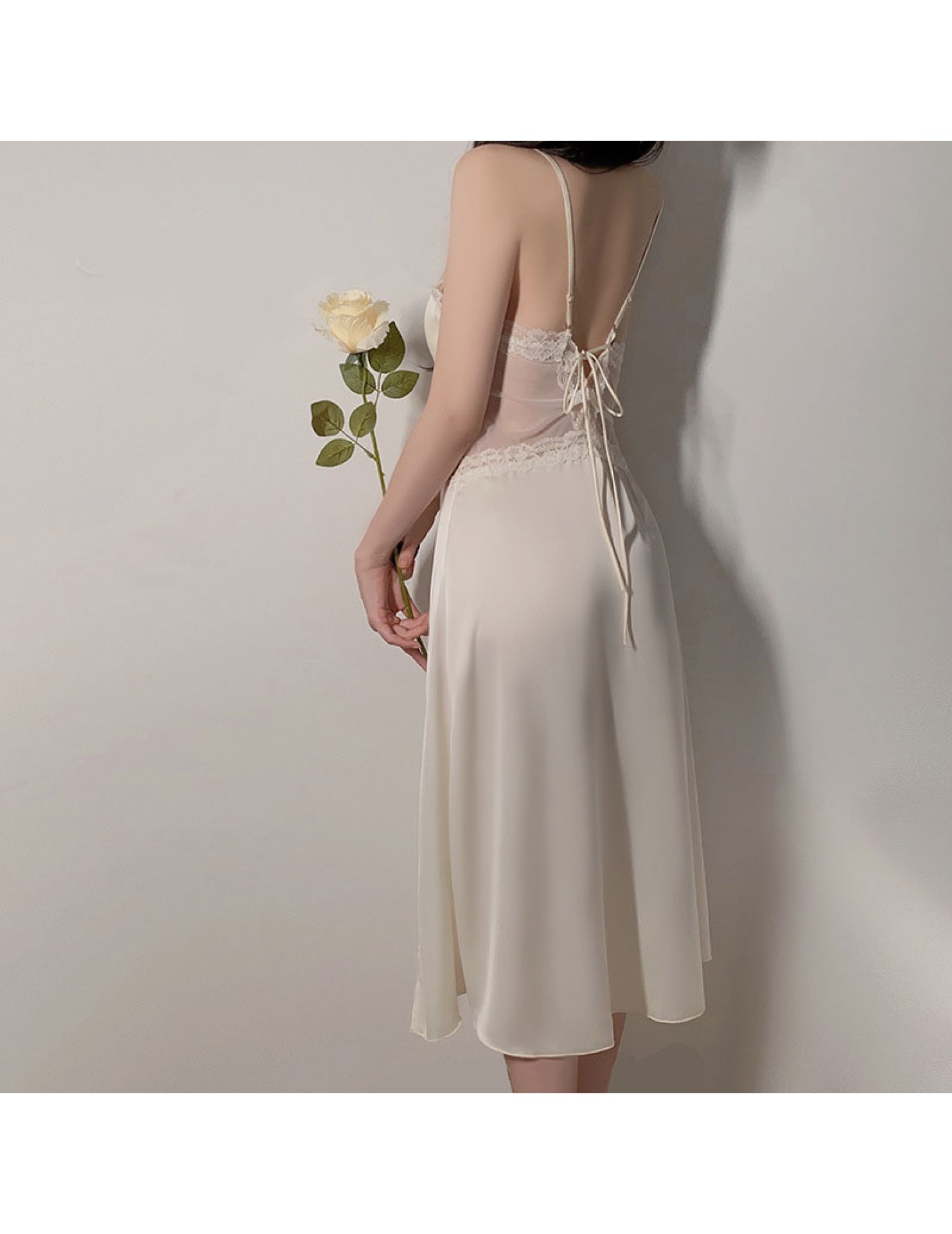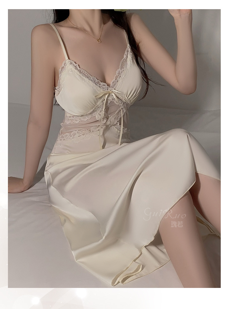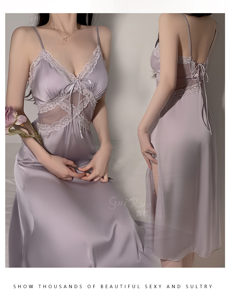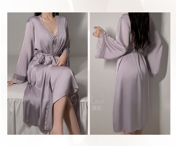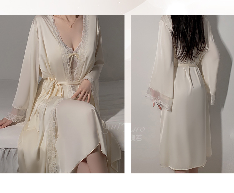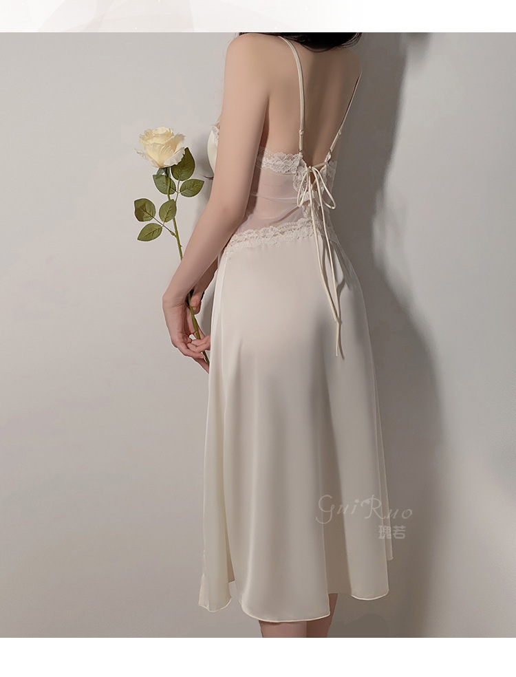LPLT6319100113 網紗睡衣深V加胸墊吊帶睡裙絲滑外袍家居服套裝