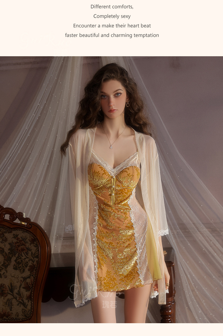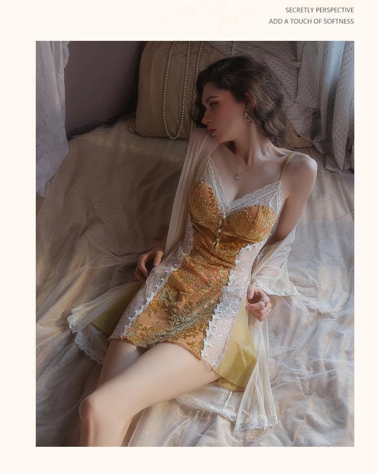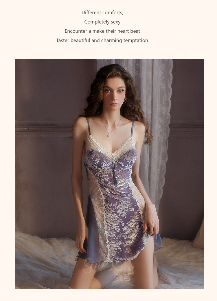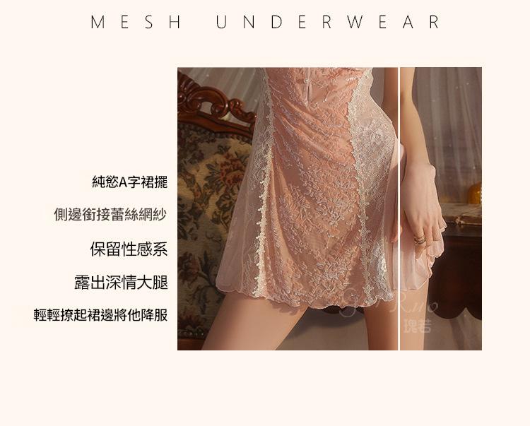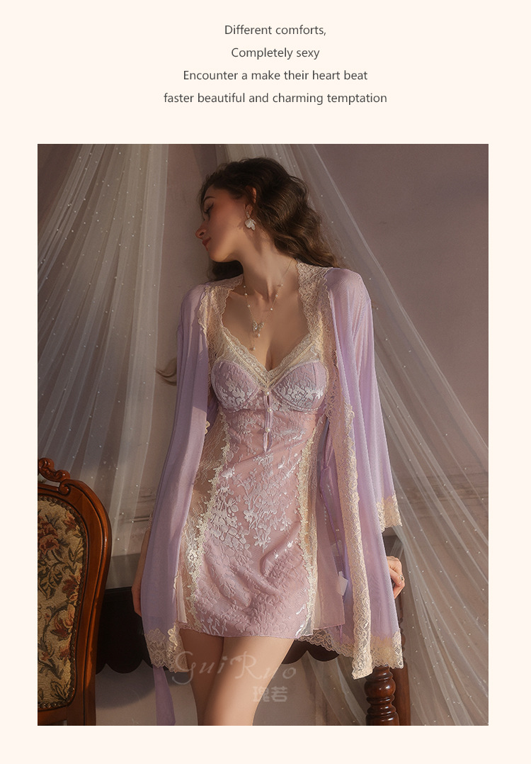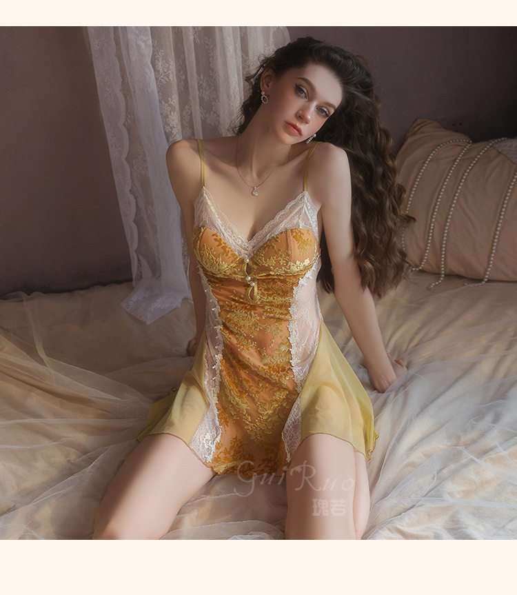 LPLT6319100061 純欲誘惑絲絨睡衣激情深V加胸墊性感睡裙網紗外袍女套裝