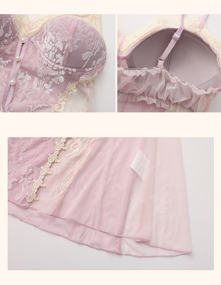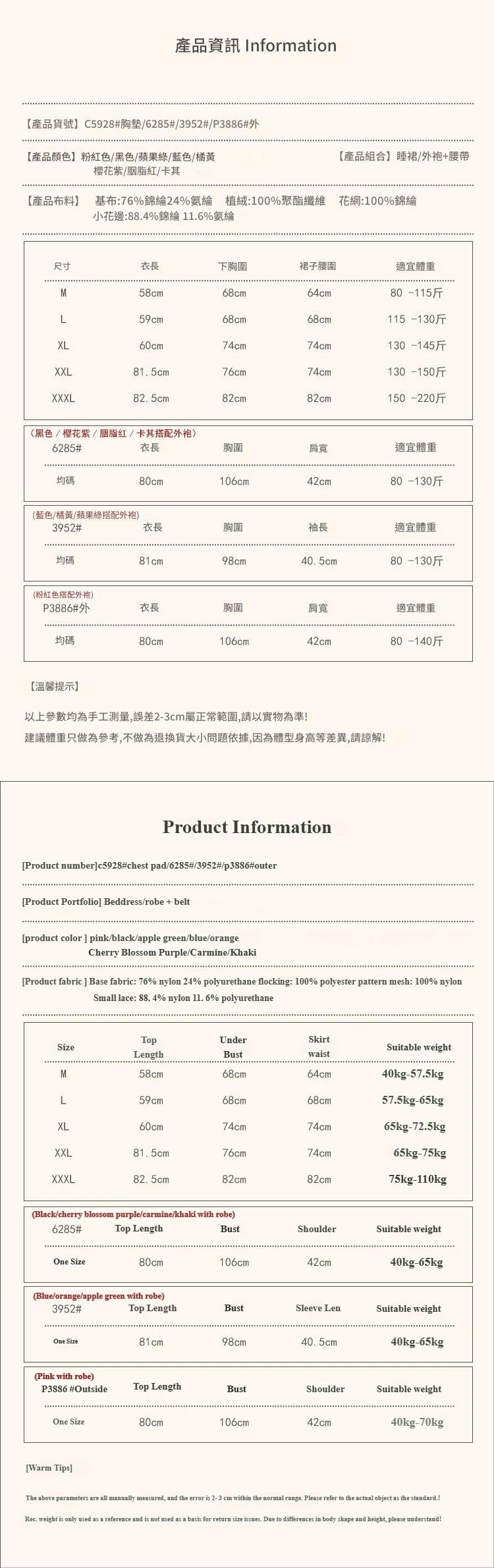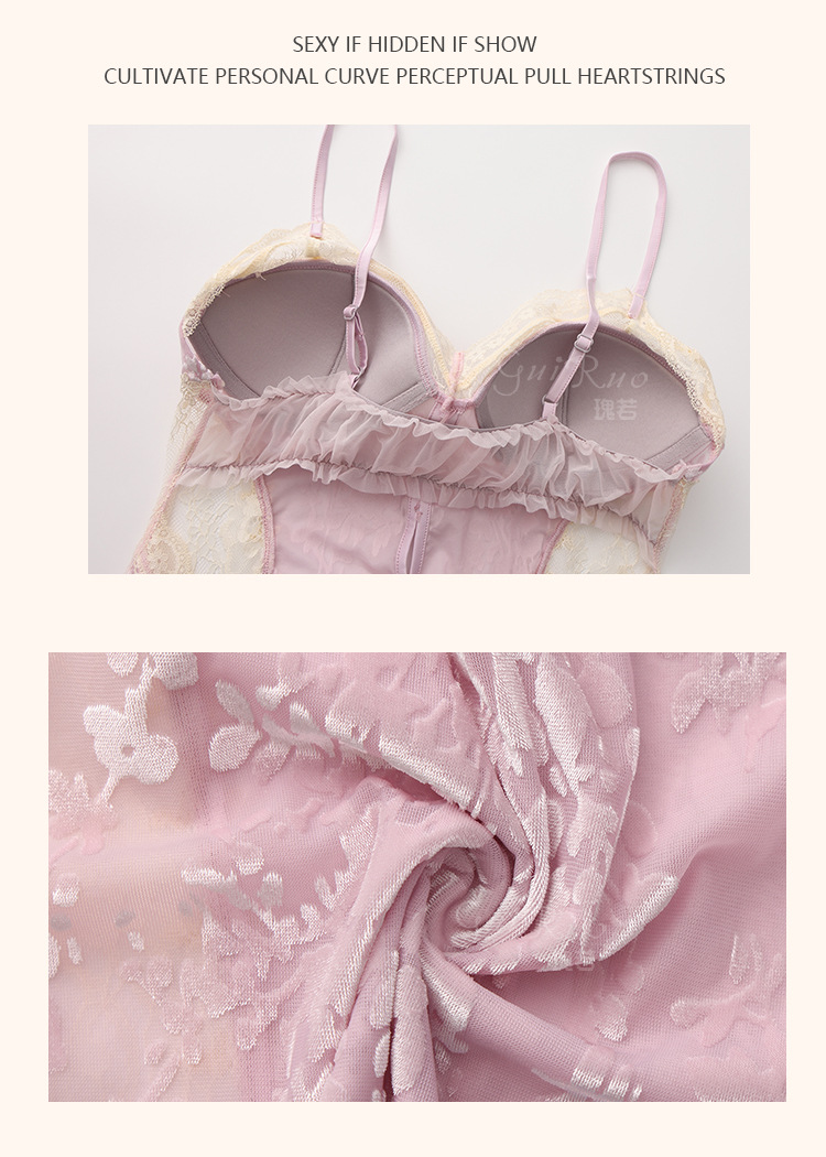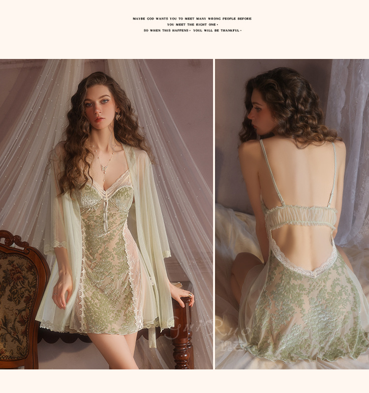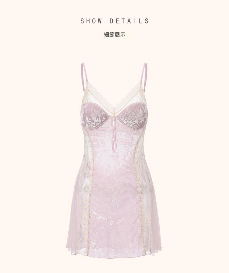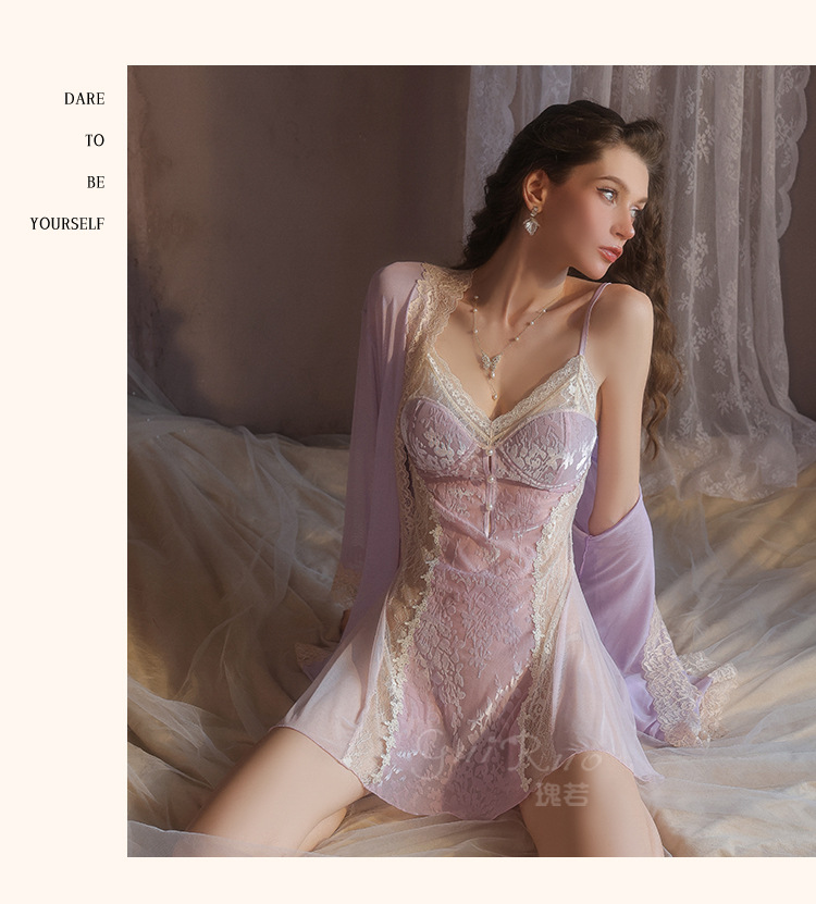 LPLT6319100061 純欲誘惑絲絨睡衣激情深V加胸墊性感睡裙網紗外袍女套裝